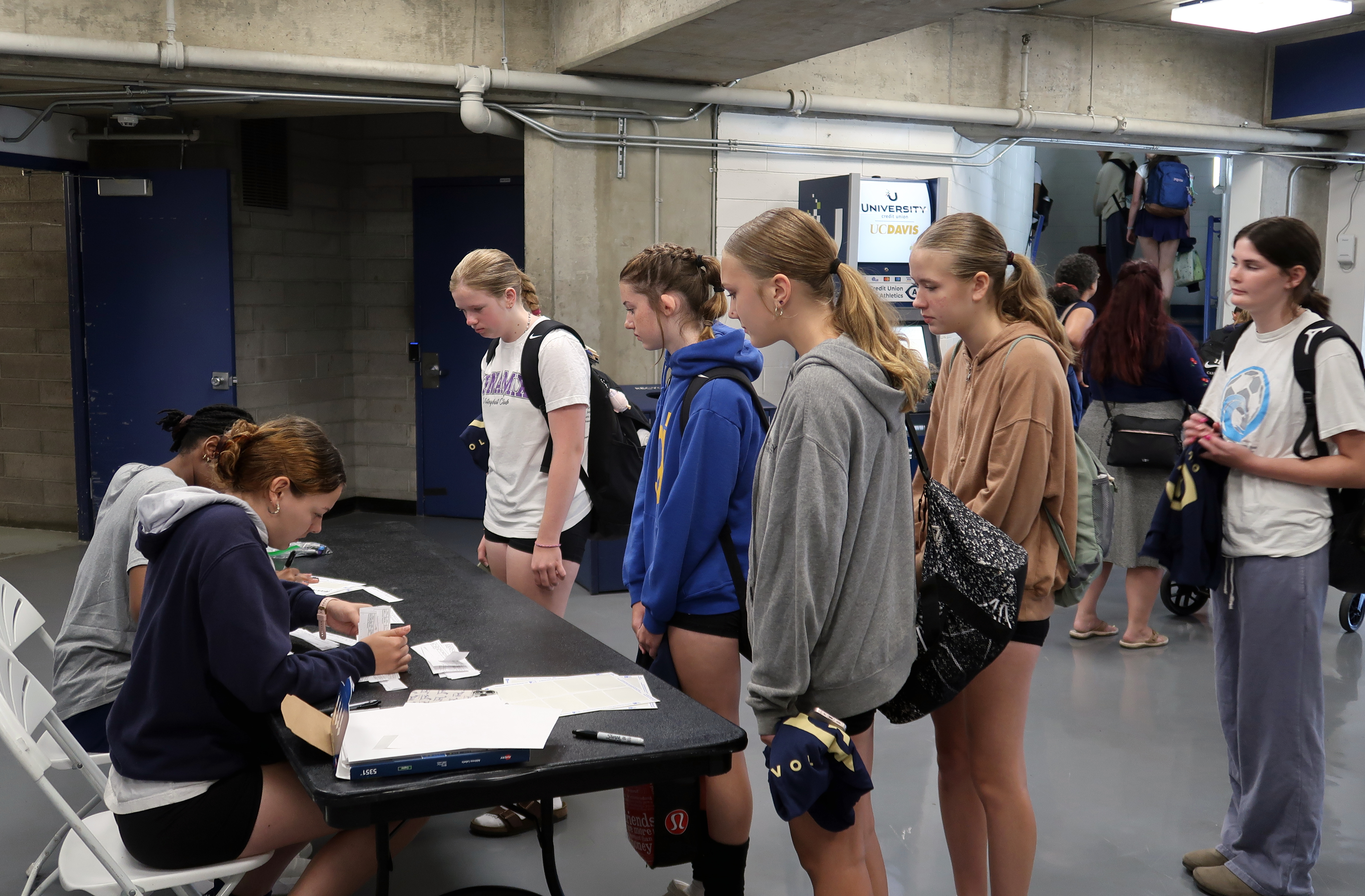 Poppy, Maggie, and Eva at a volleyball event. 2025-07-07