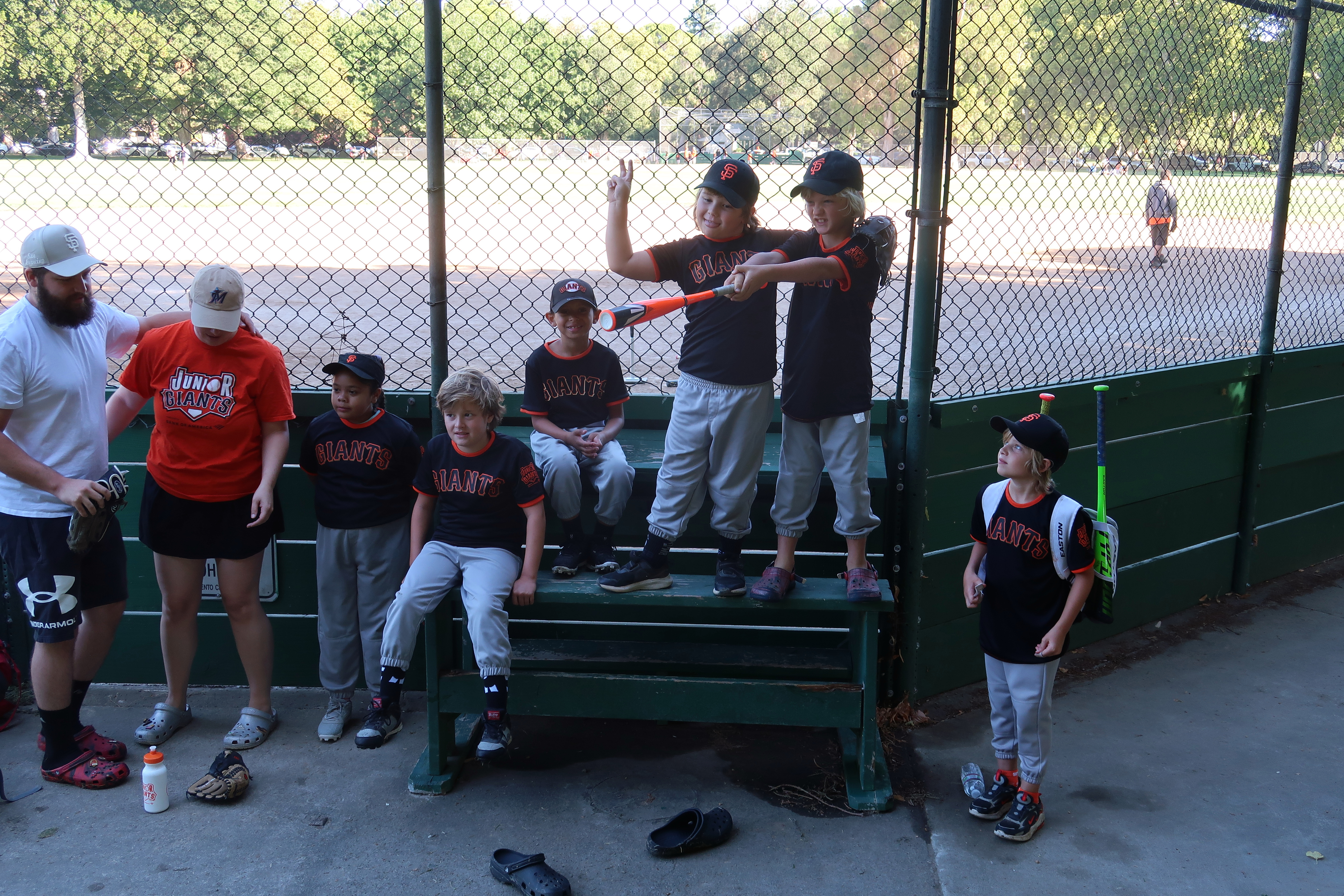 Emily and Lila watching Leo play baseball. 2025-08-02