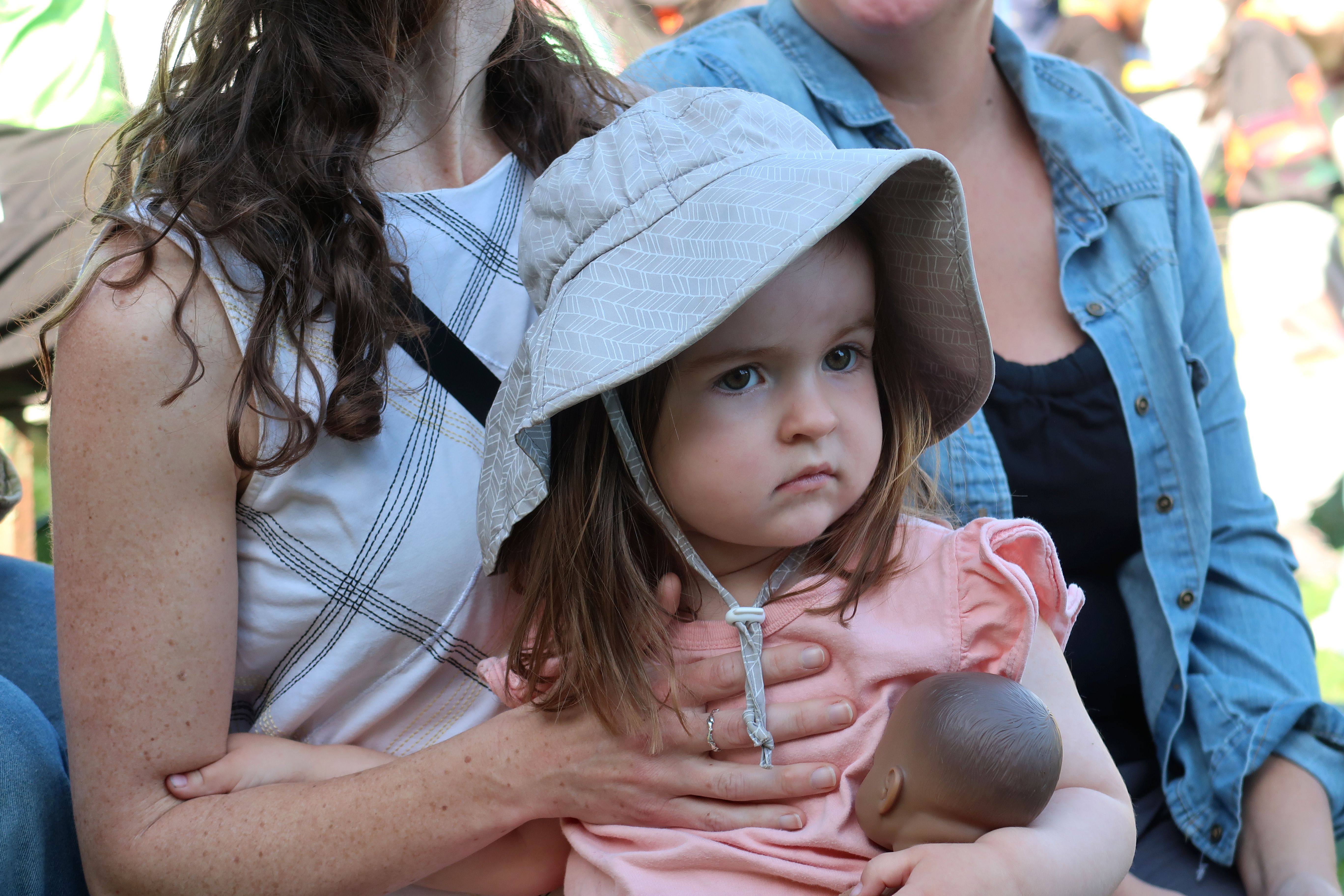 Emily, Lila, and Morgan watching Leo's baseball game. 2025-08-02