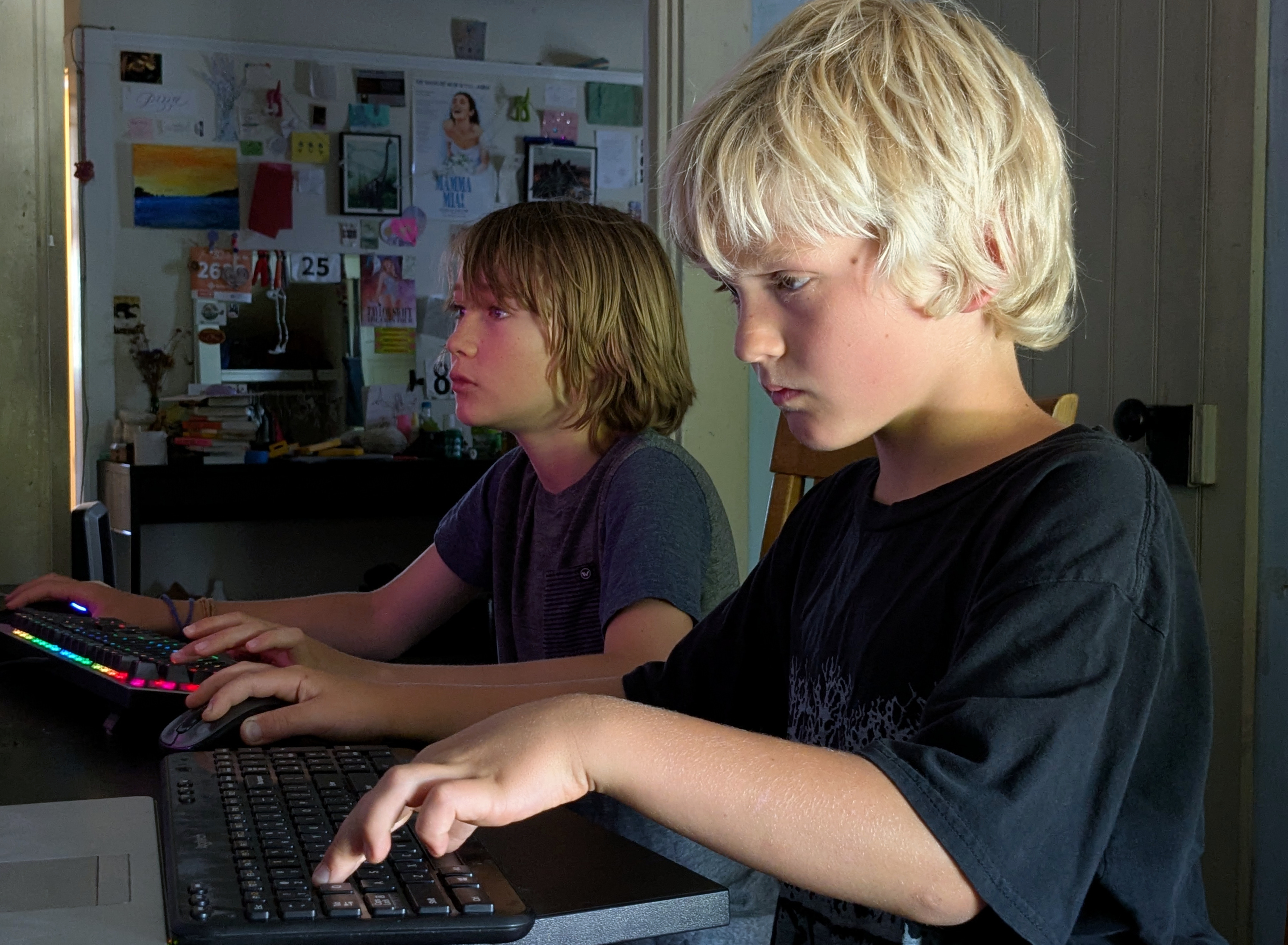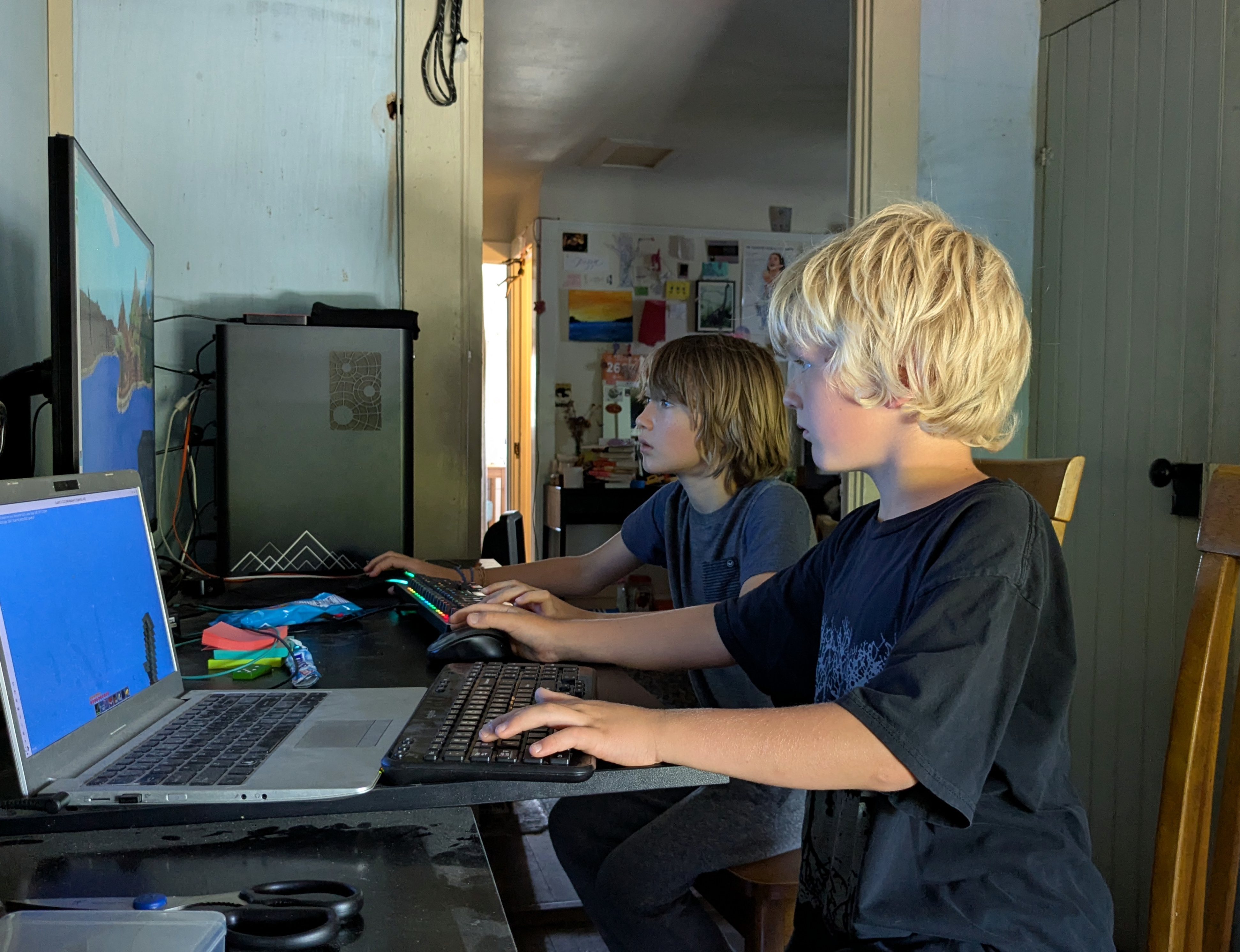 Leo and Elan playing Luanti. 2025-06-19