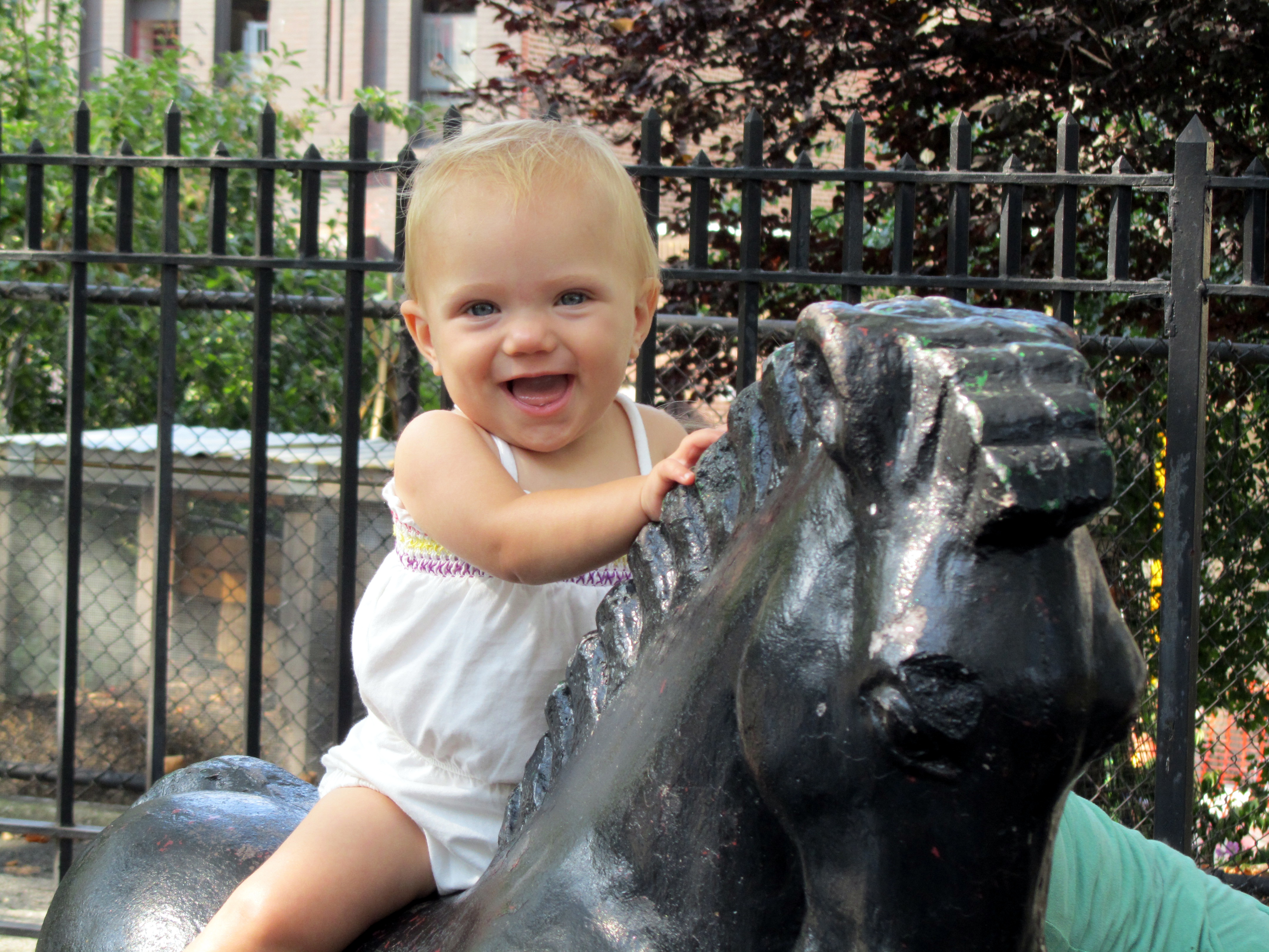 Margo riding a horse in New York. Марго сидит на лошадке в Нью Йорке. 2012-07-16