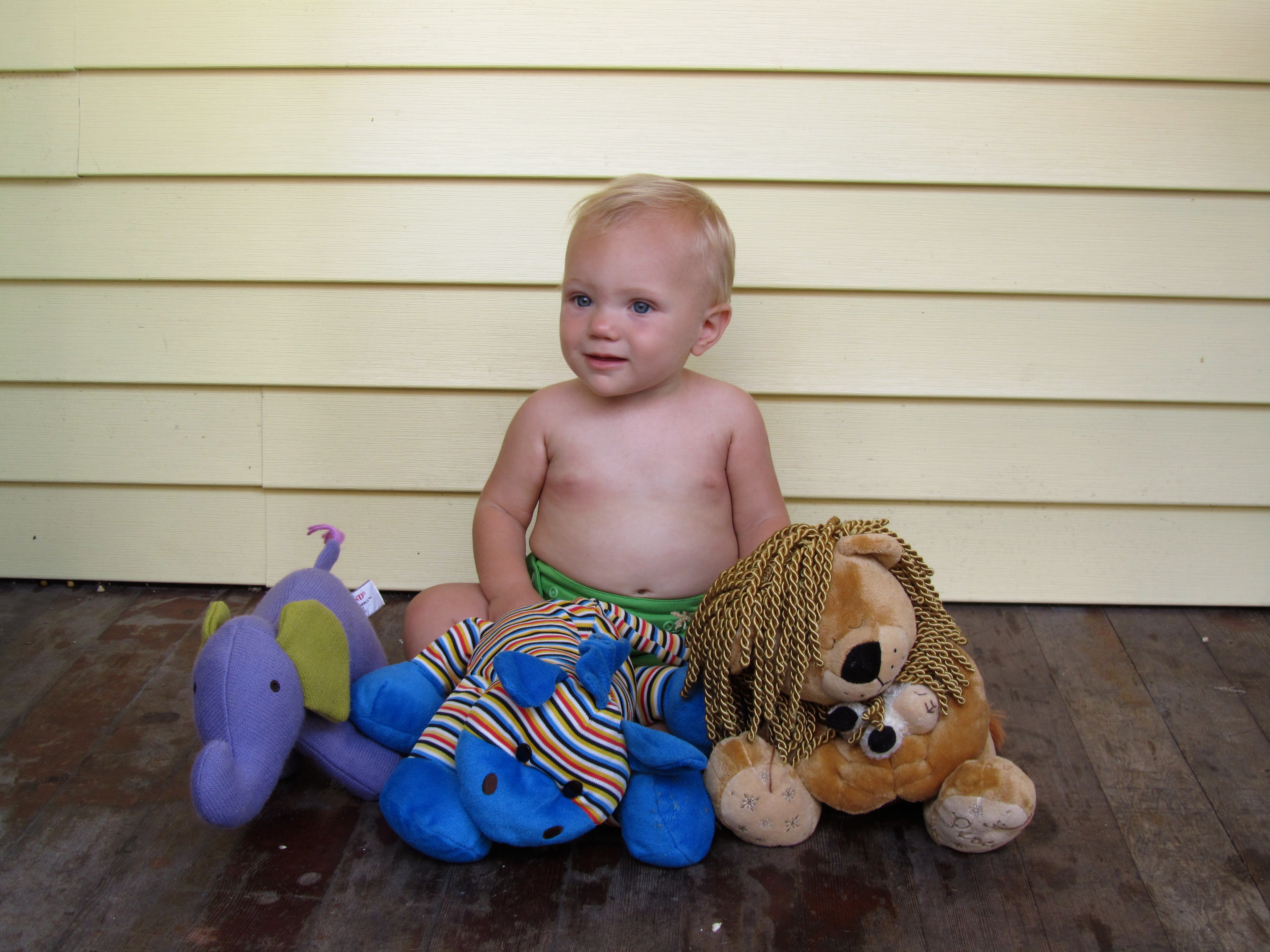 Margo with stuffies. Марго позирует с игрушками для подарочного