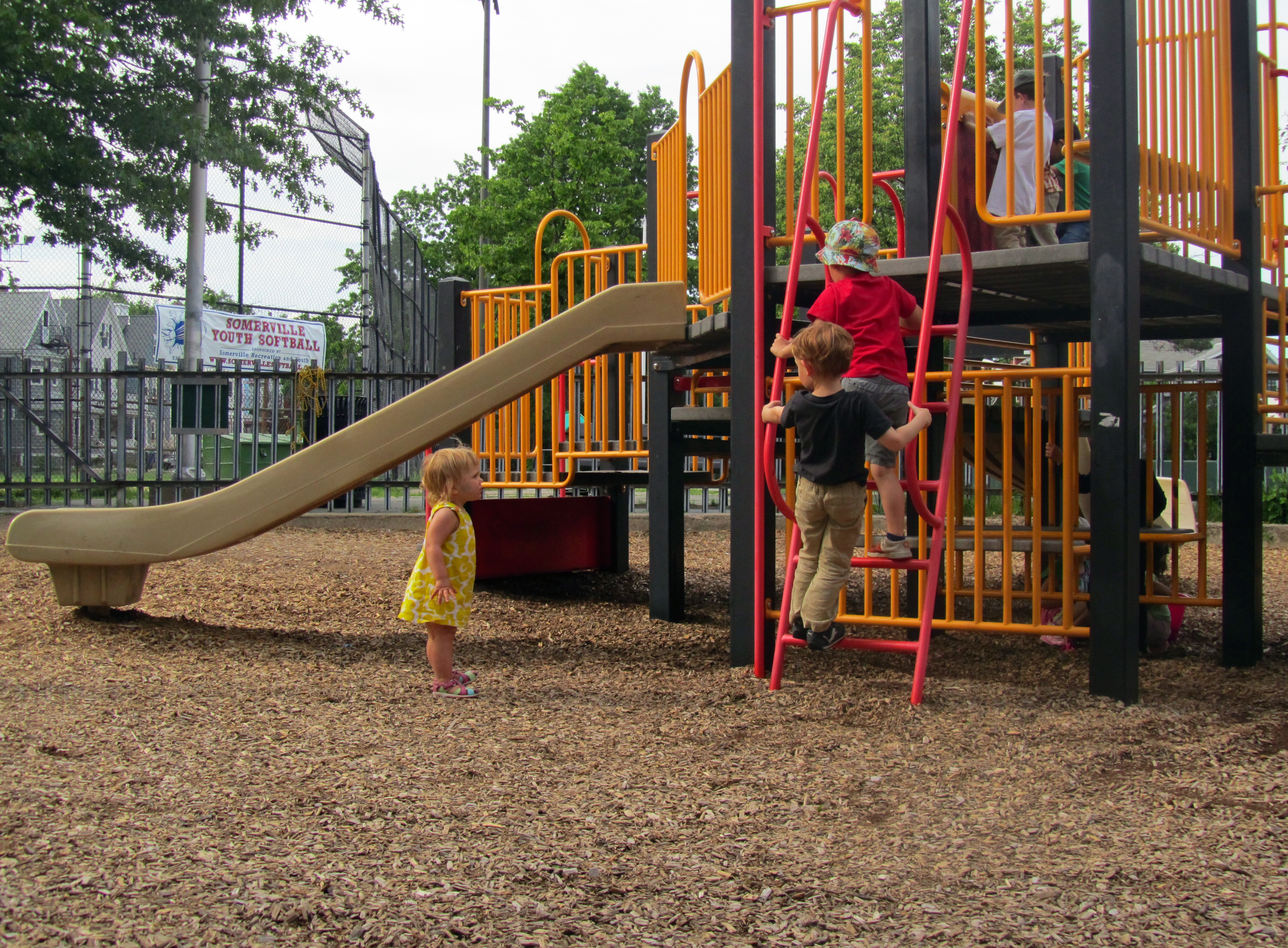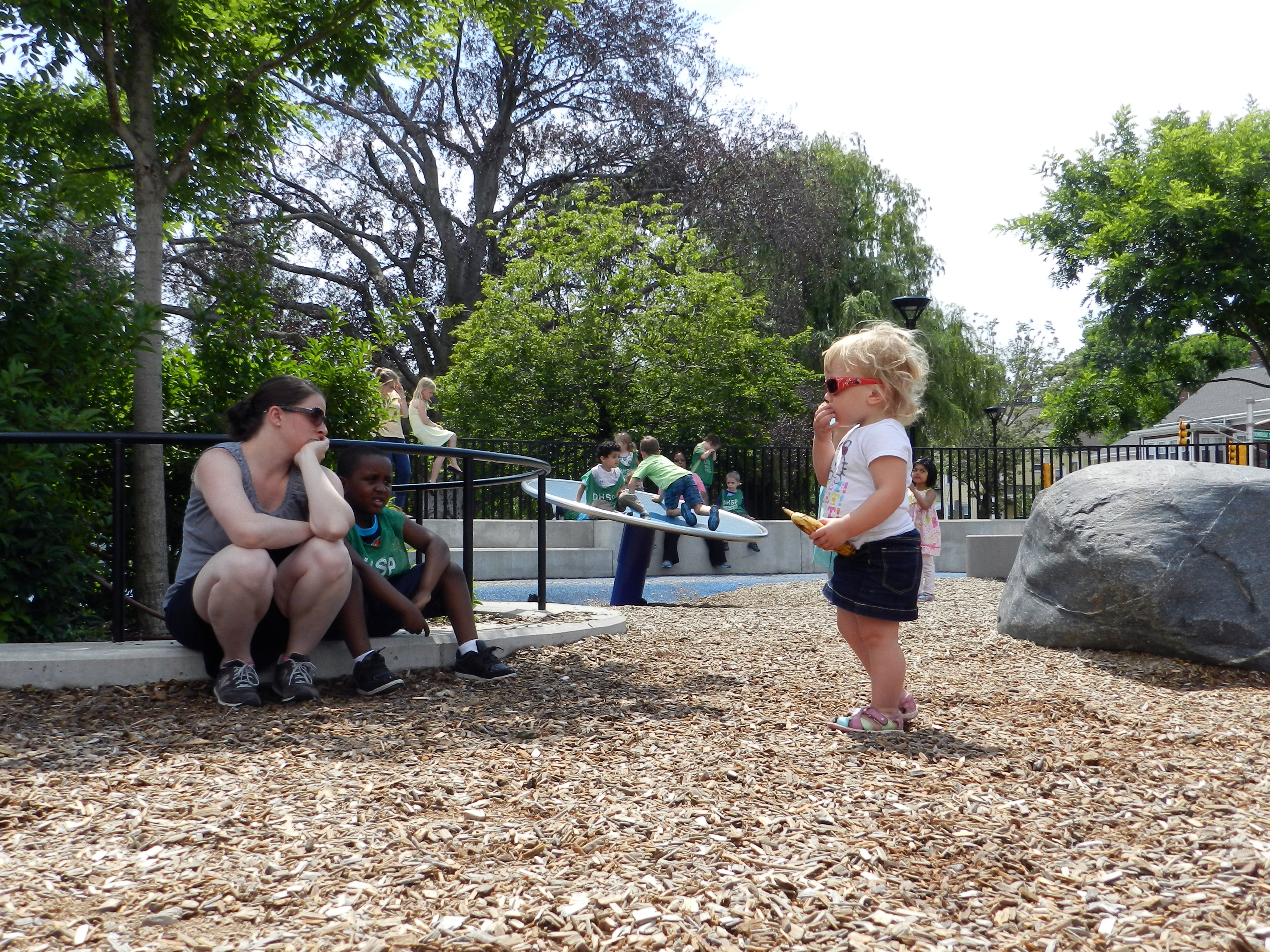 Margo at Lincoln Park with older girls. На площадке с детьми по-старше. 2013-05-01