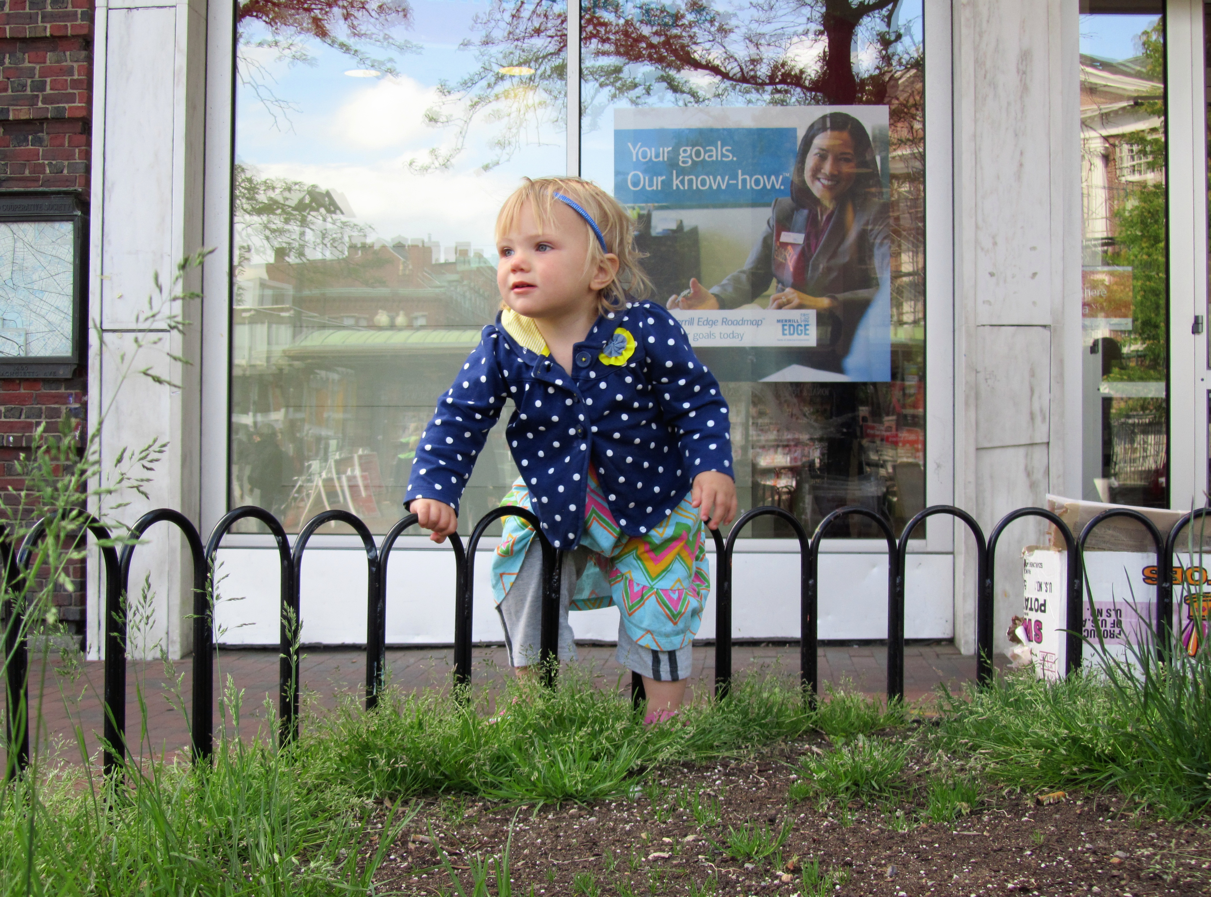 Climbing Margo. Рита штурмует ограду на Центральной Площади. 2013-05-13