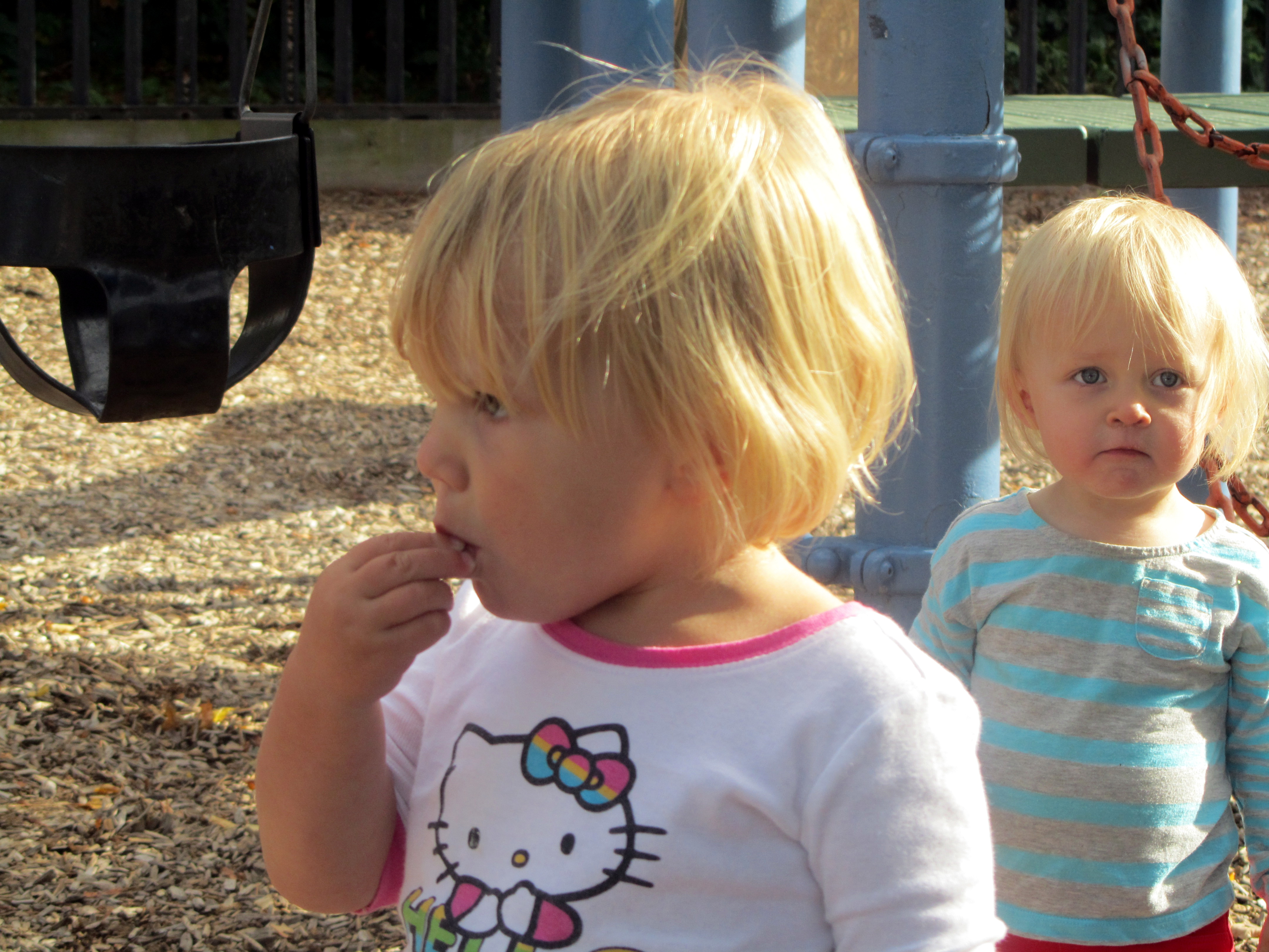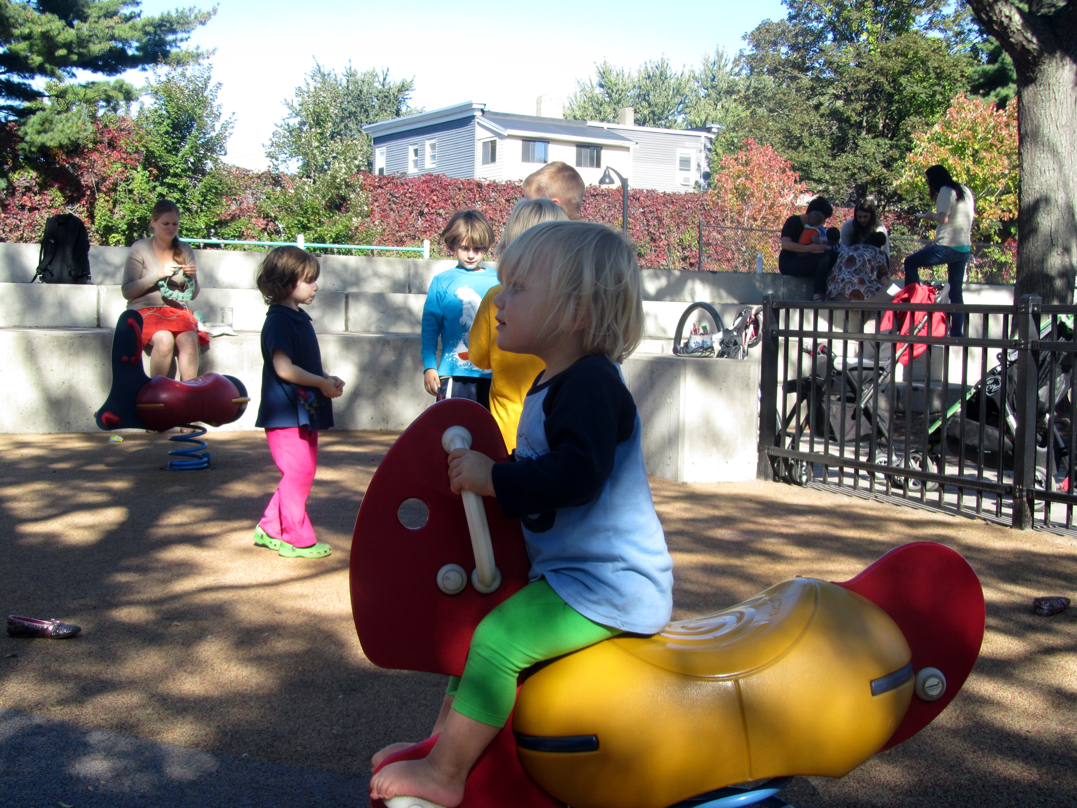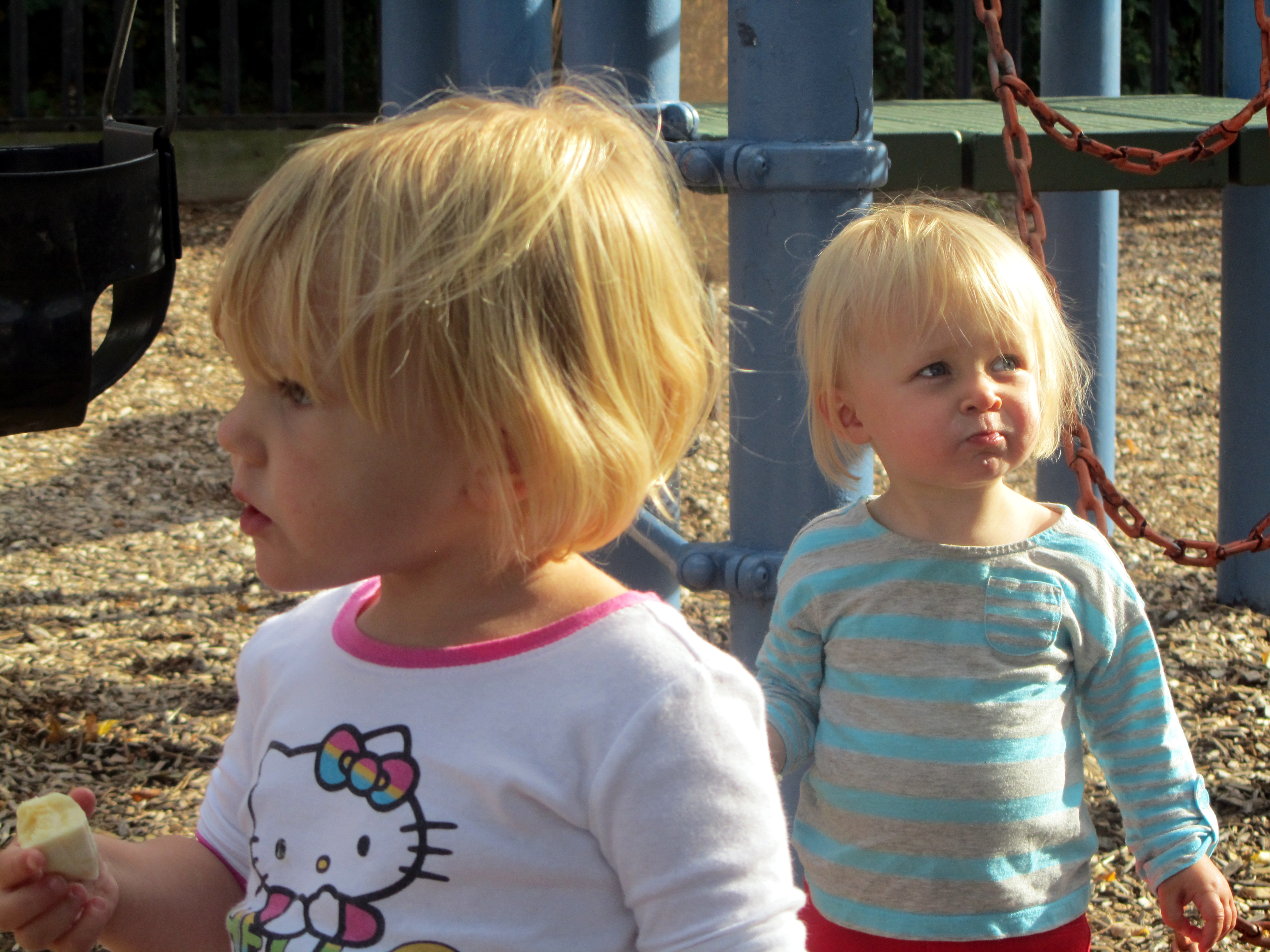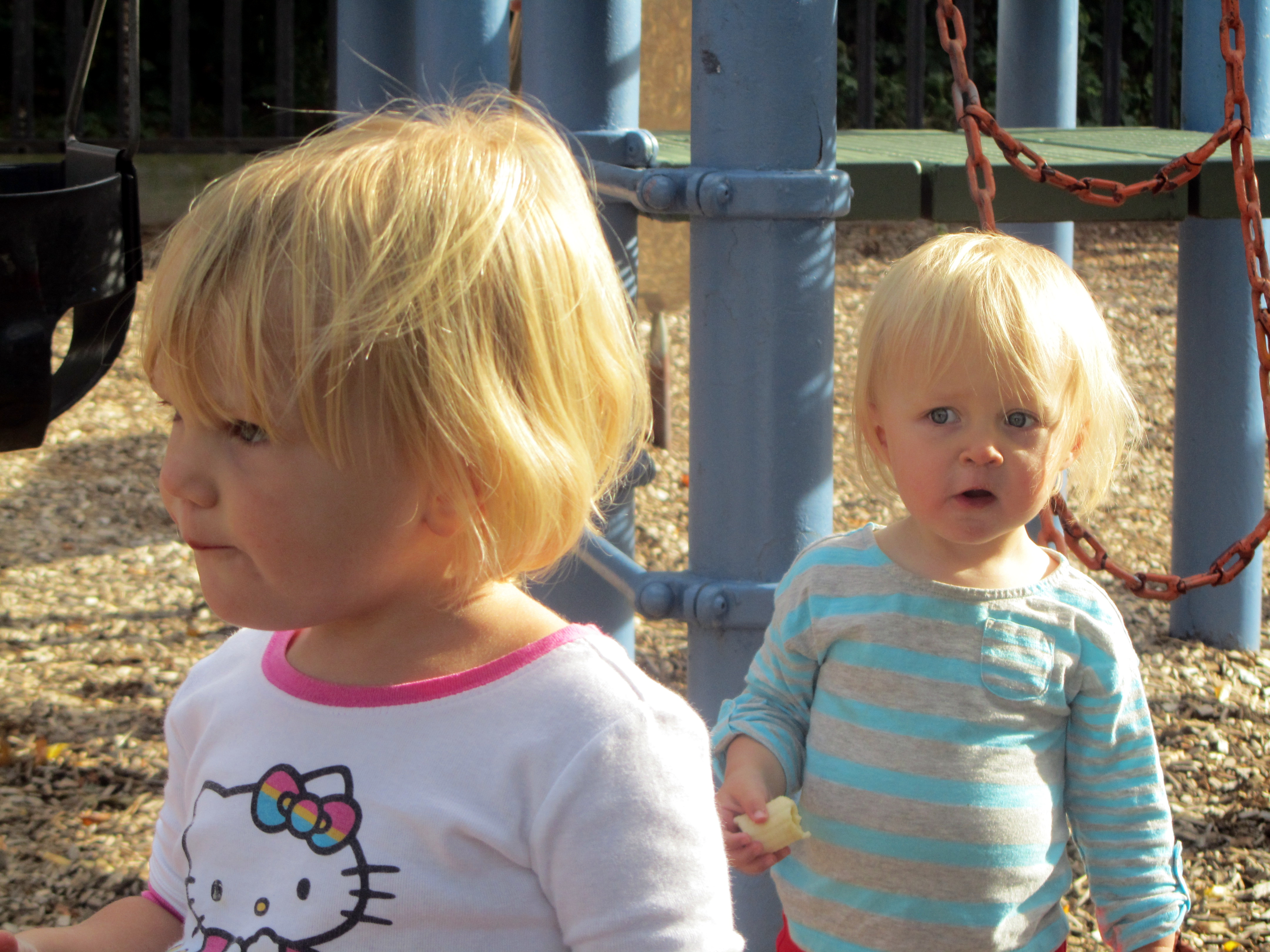Morgan and Margo at a park next to our new house on Warwick Street, Somerville.