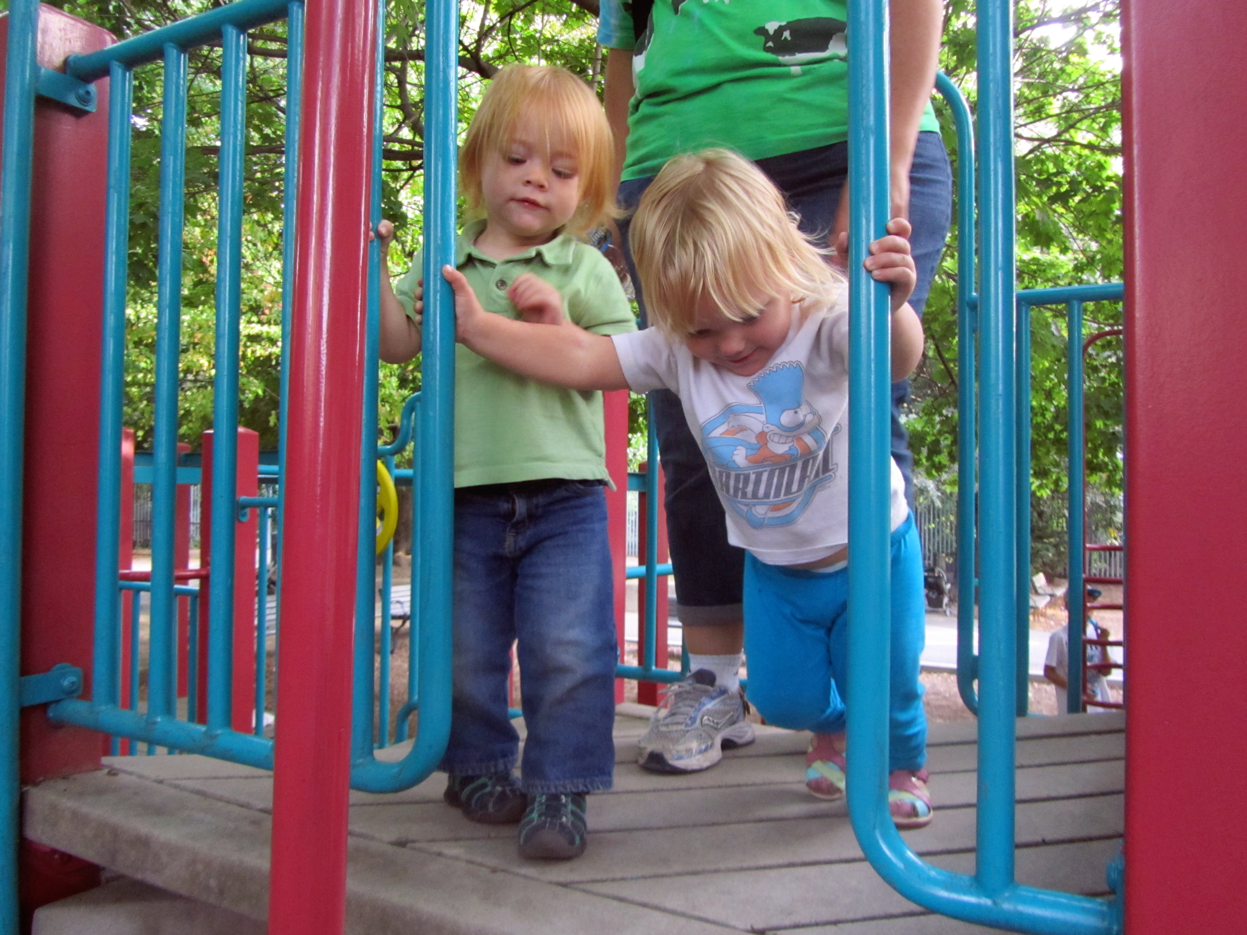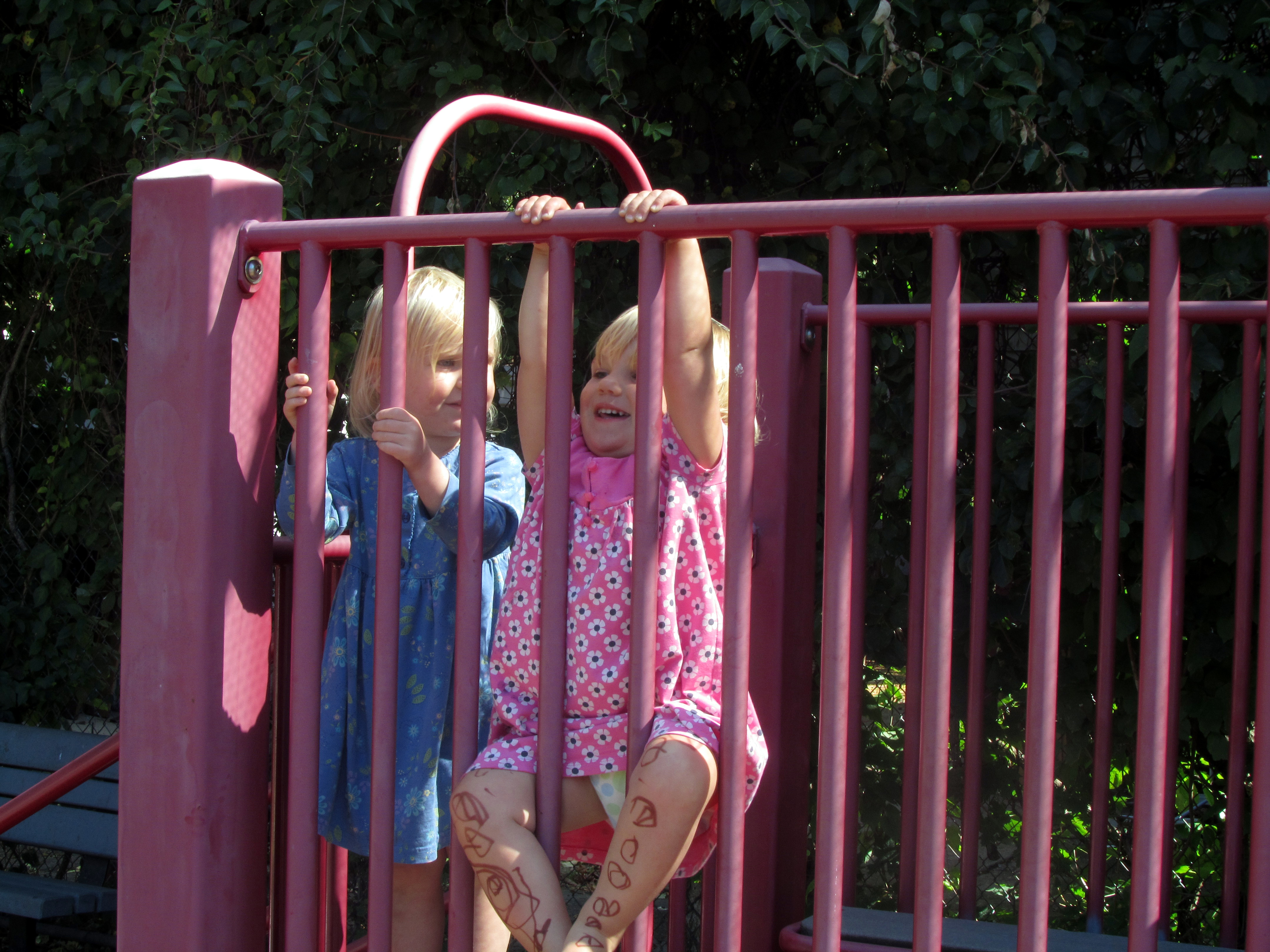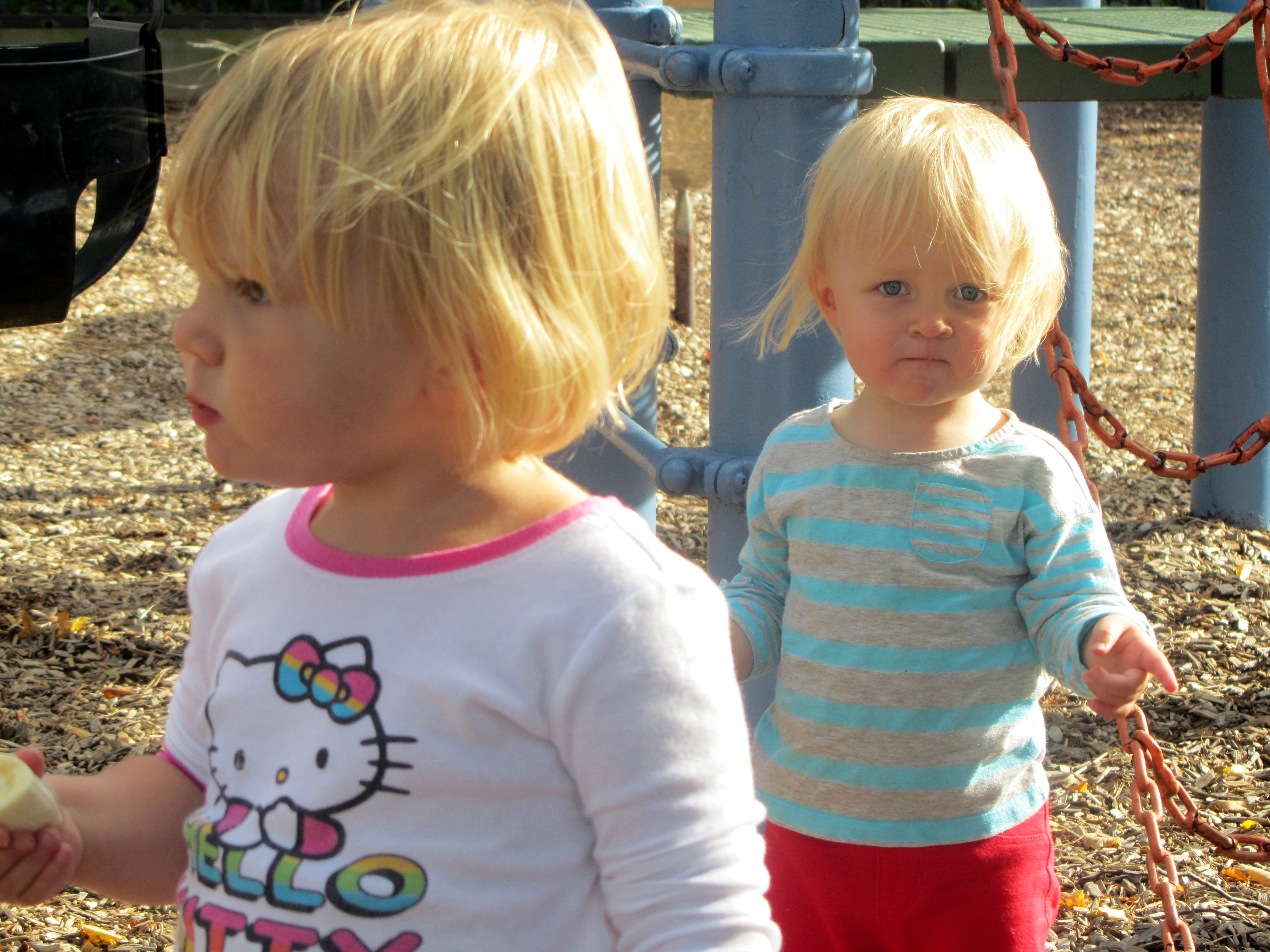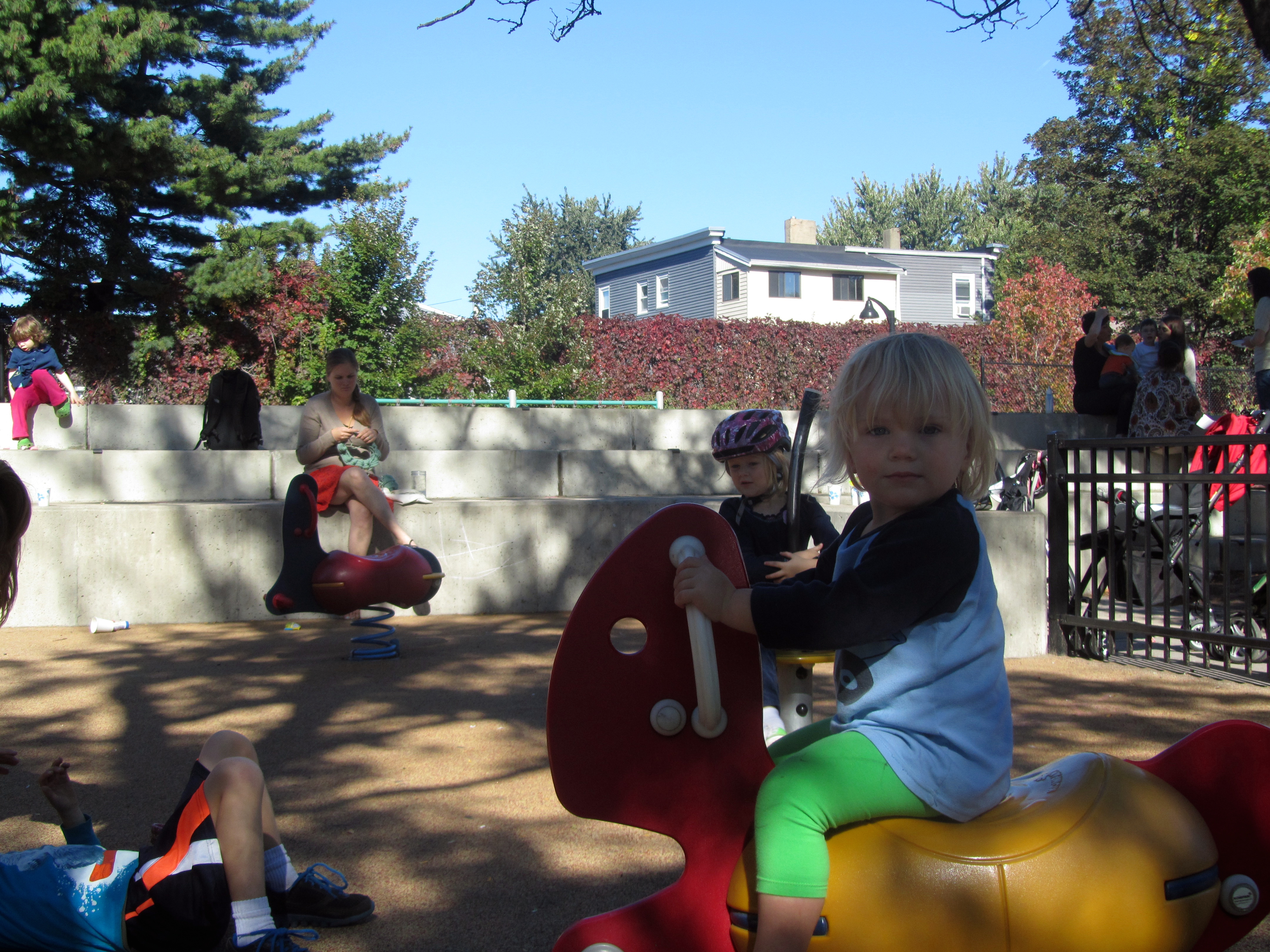 Morgan and Margo at a park next to our new house on Warwick Street, Somerville.