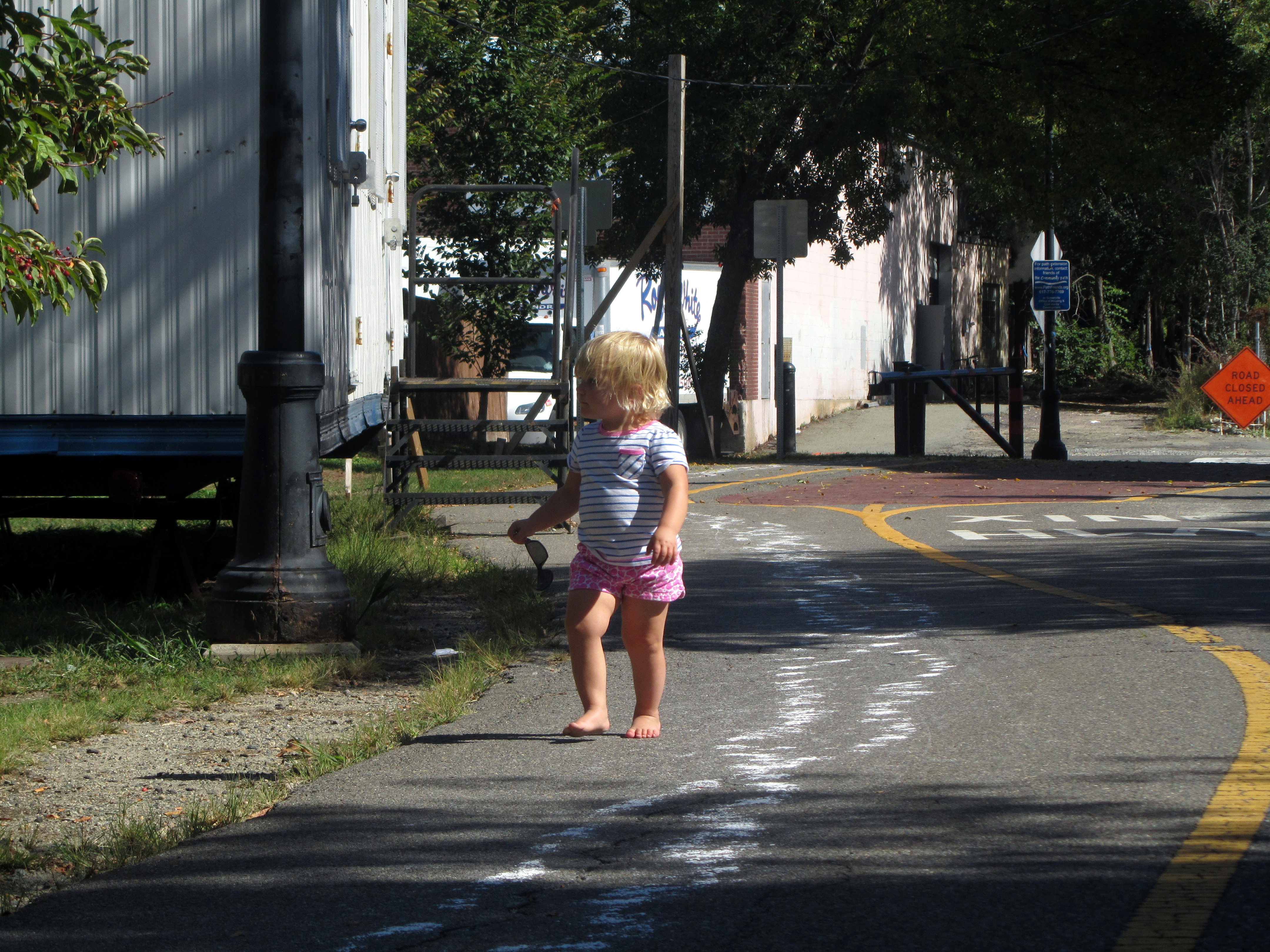 Margo walking on the bike path. Прогуливаемся по велосипедной дорожке.