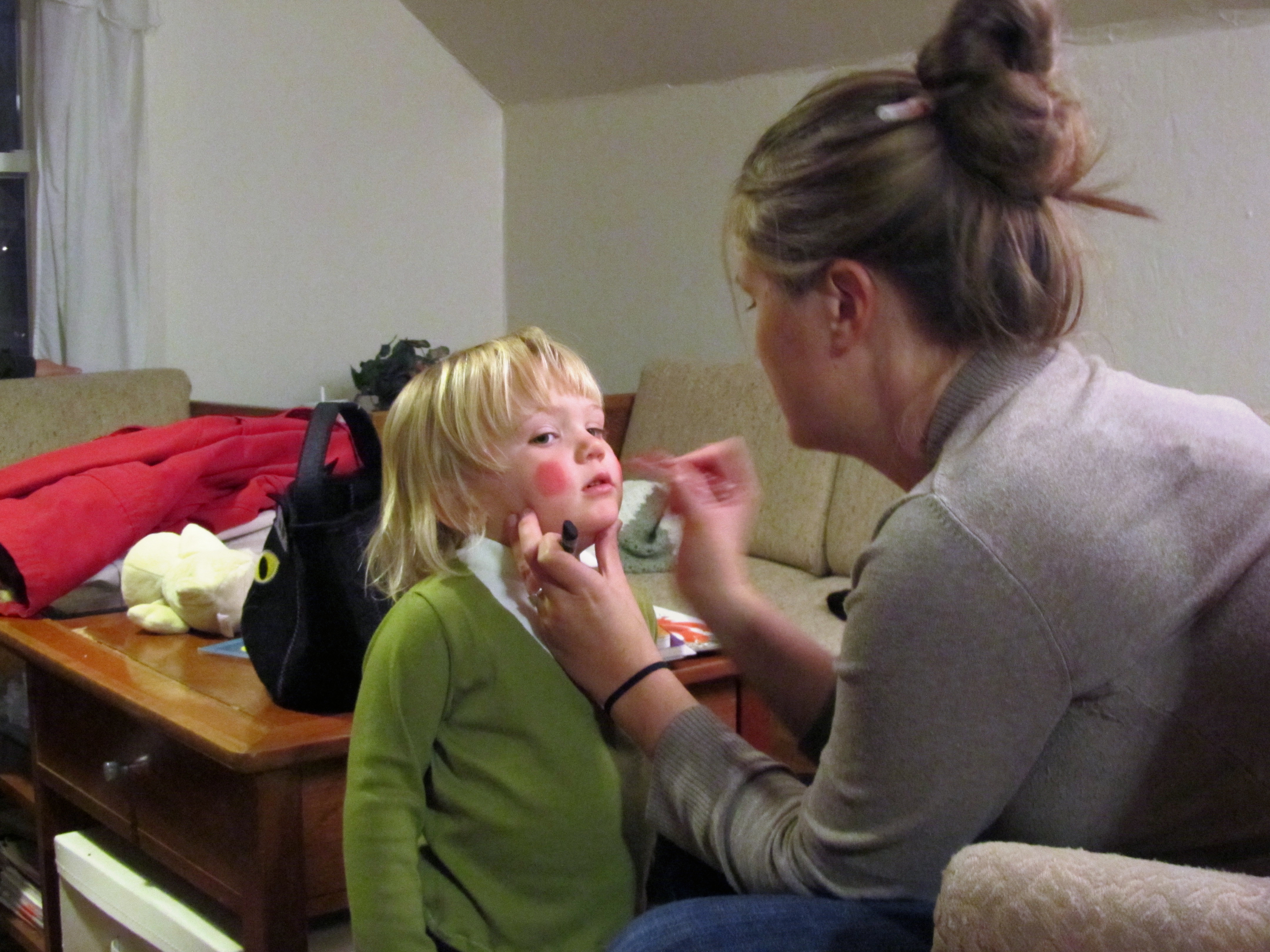 Margo and Morgan are getting ready for trick-or-treating. Идёт подготовка к походу за сластями.