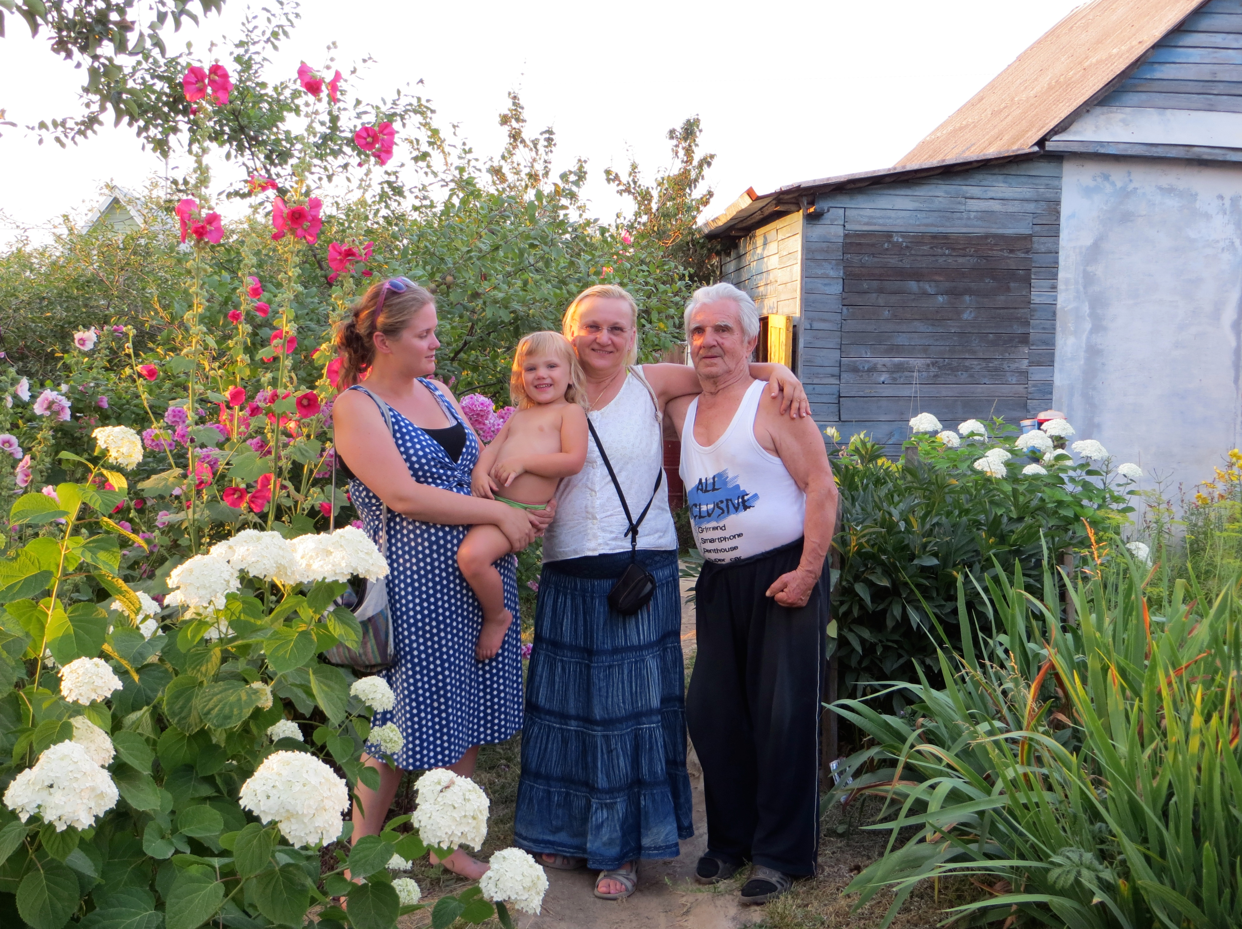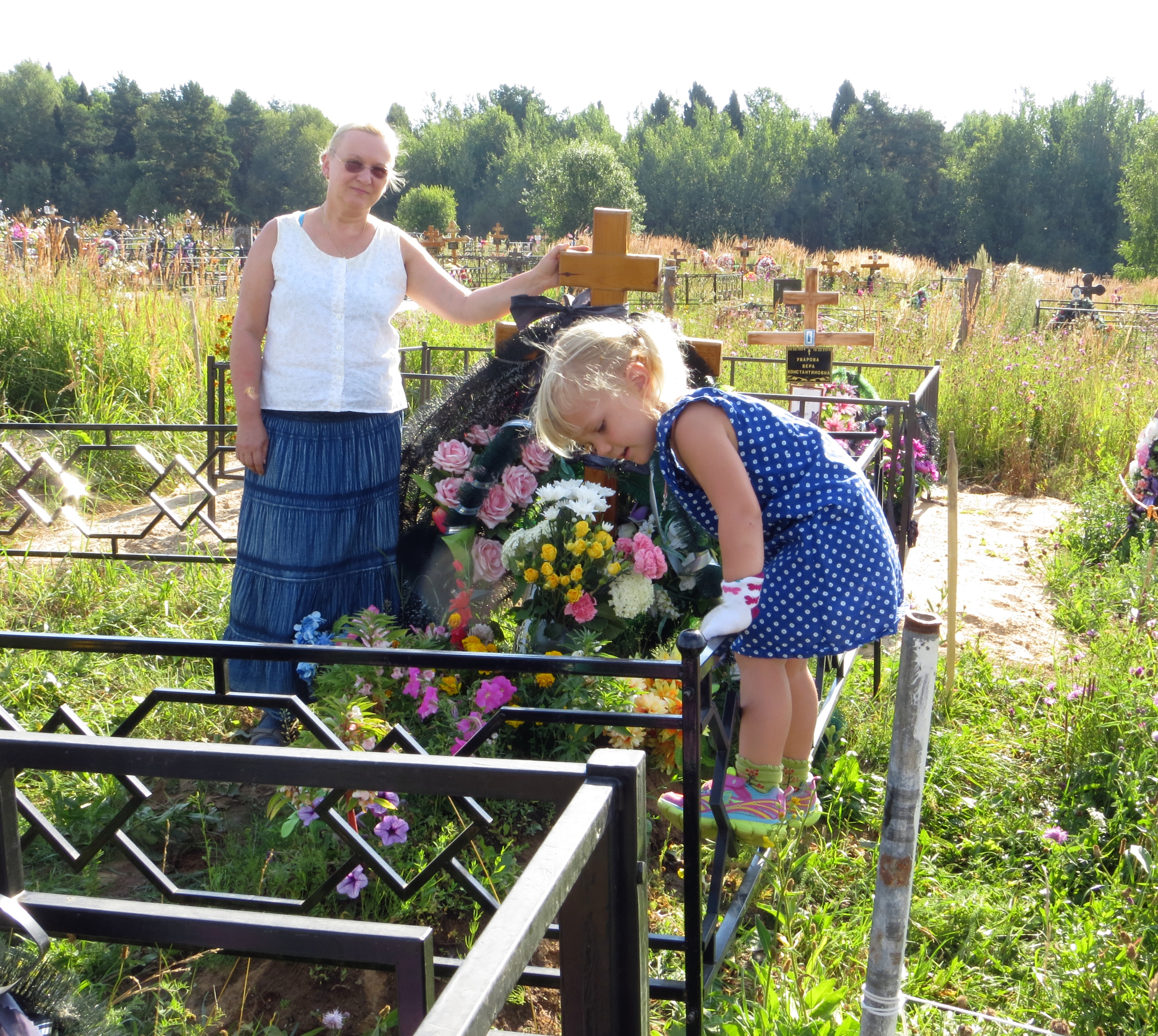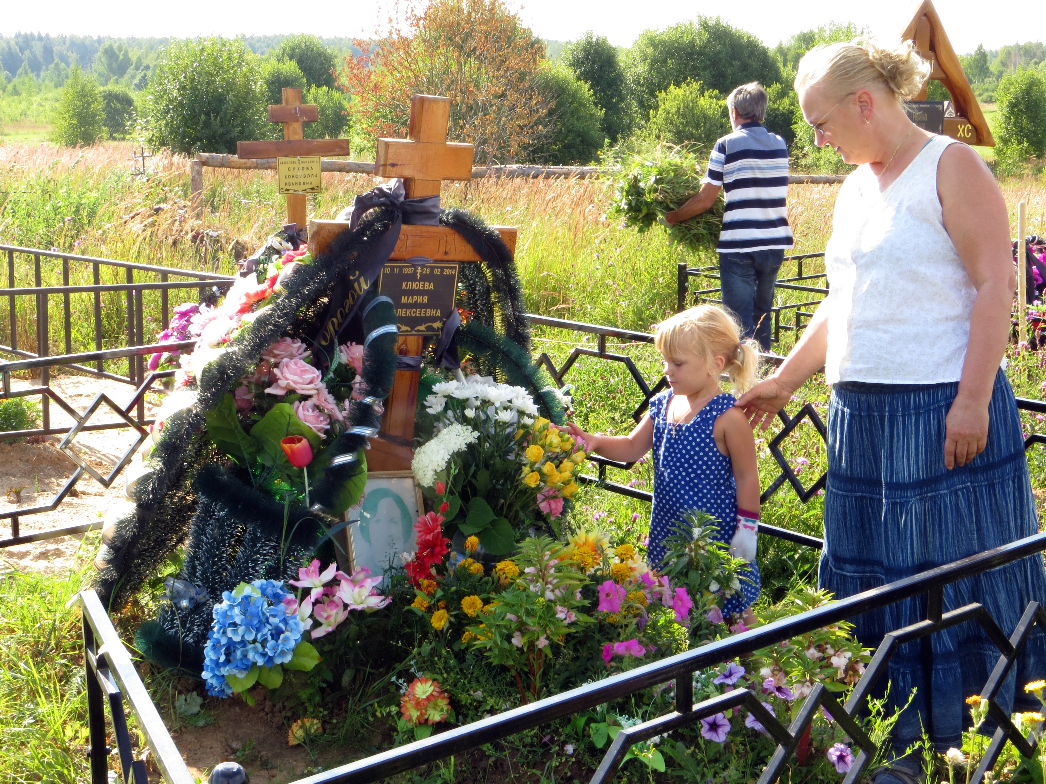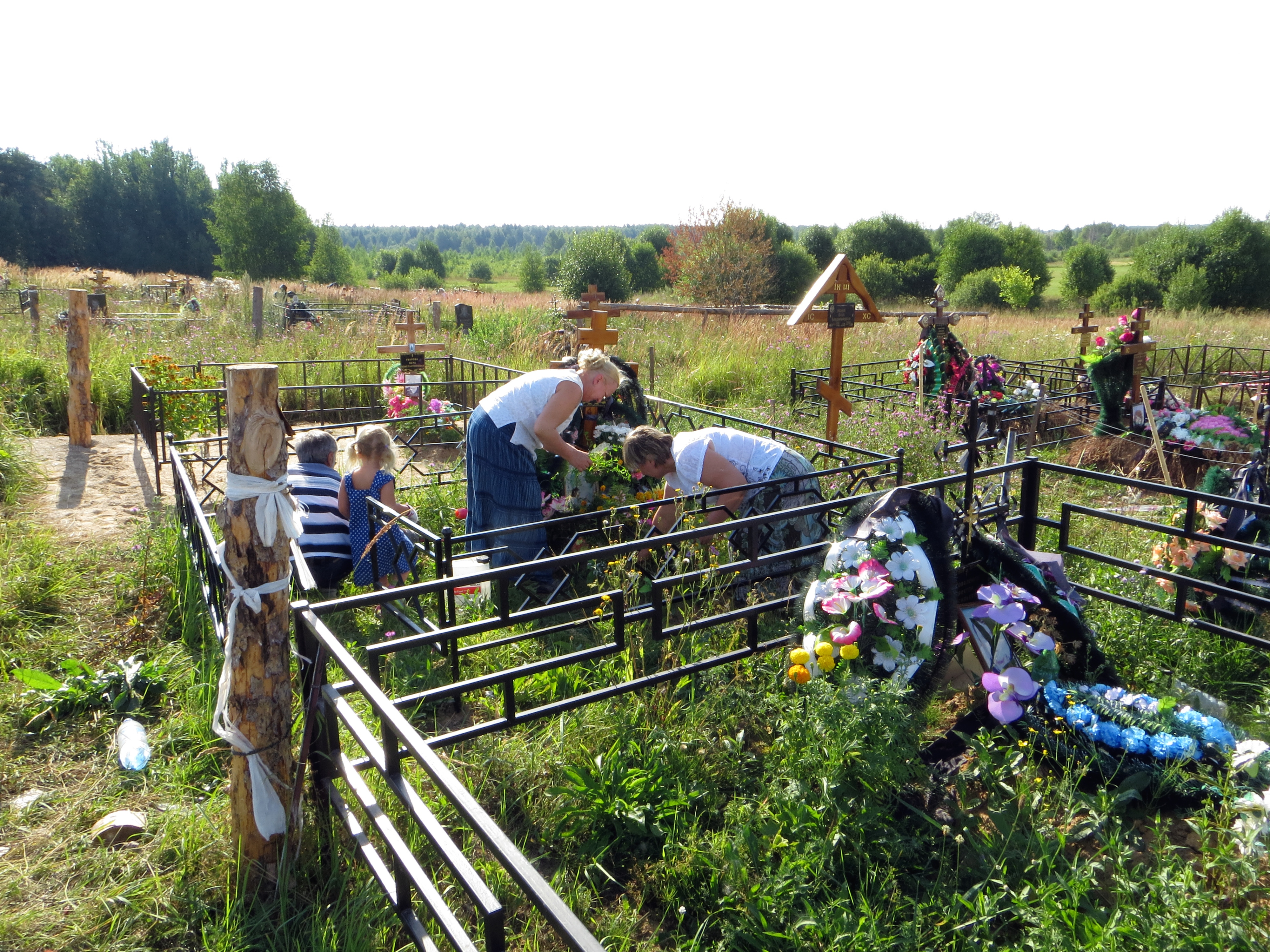 Сергей, Марго, Ольга, и Лена у могилы Марии Алексеевны. 2014-08-03