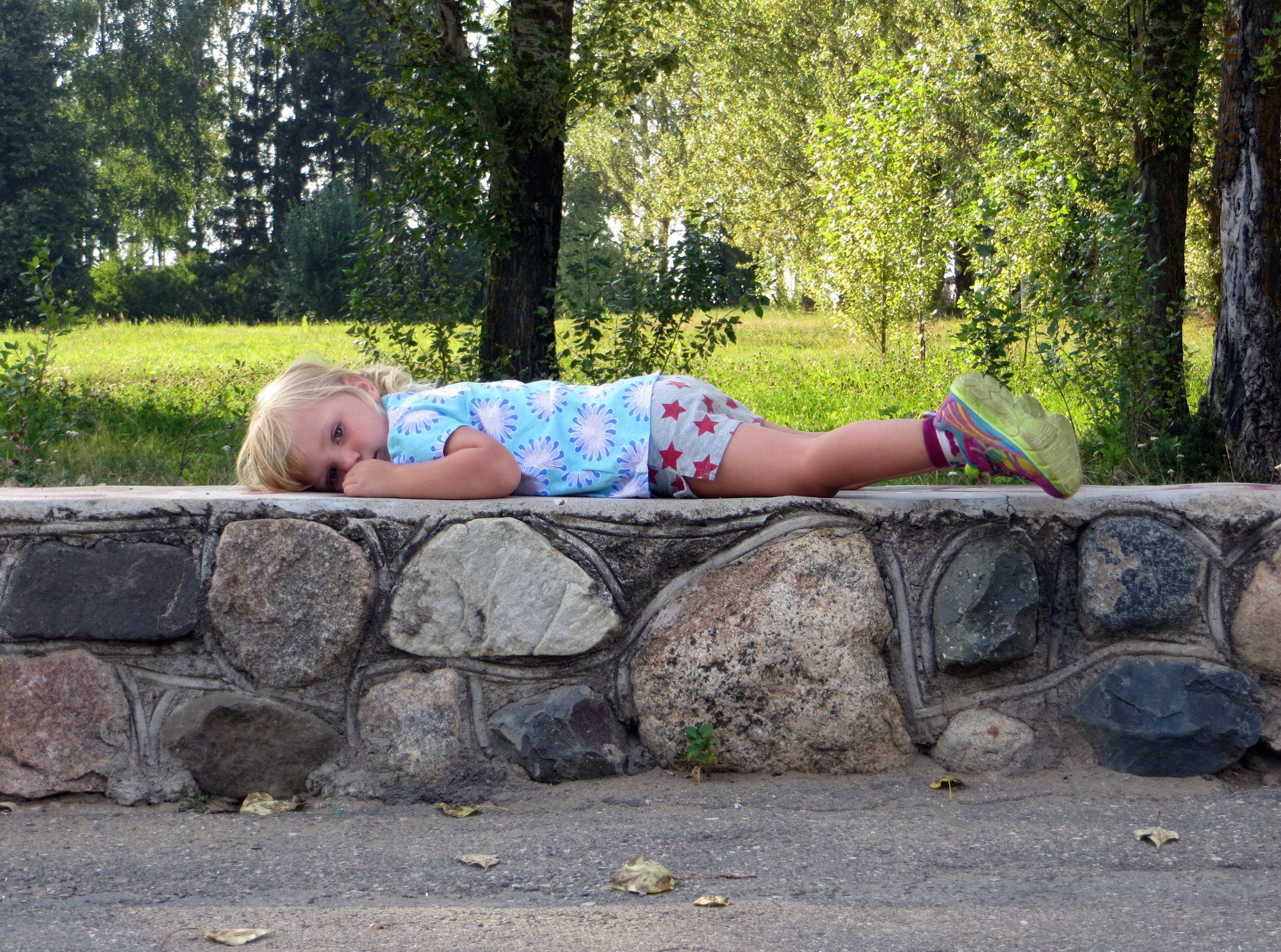 Марго заснула, когда мы пошли купаться на дамбу. 2014