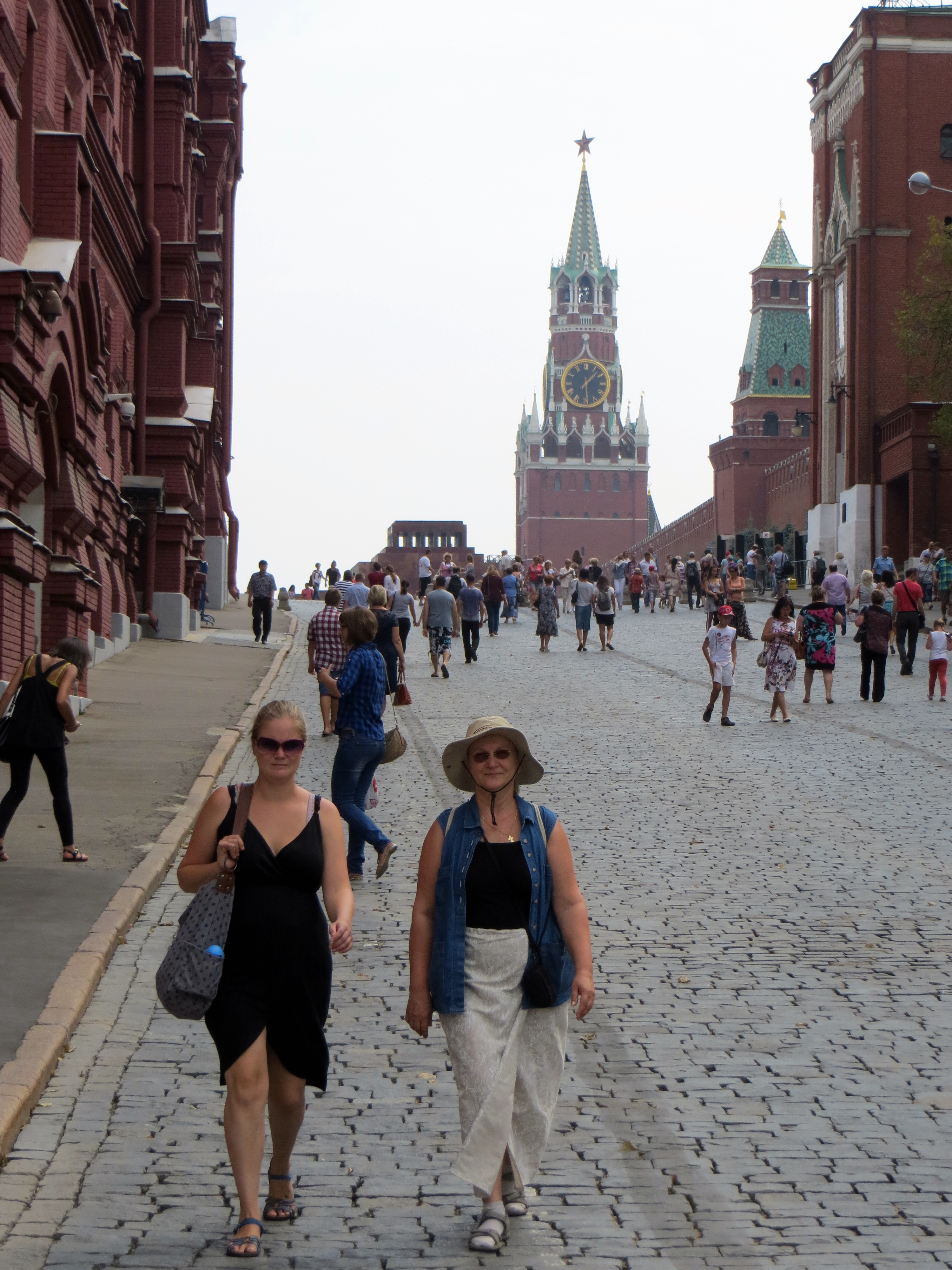 Morgan and Olga, with a Kremlin tower. На фоне Спасской Башни. 2014-08-10