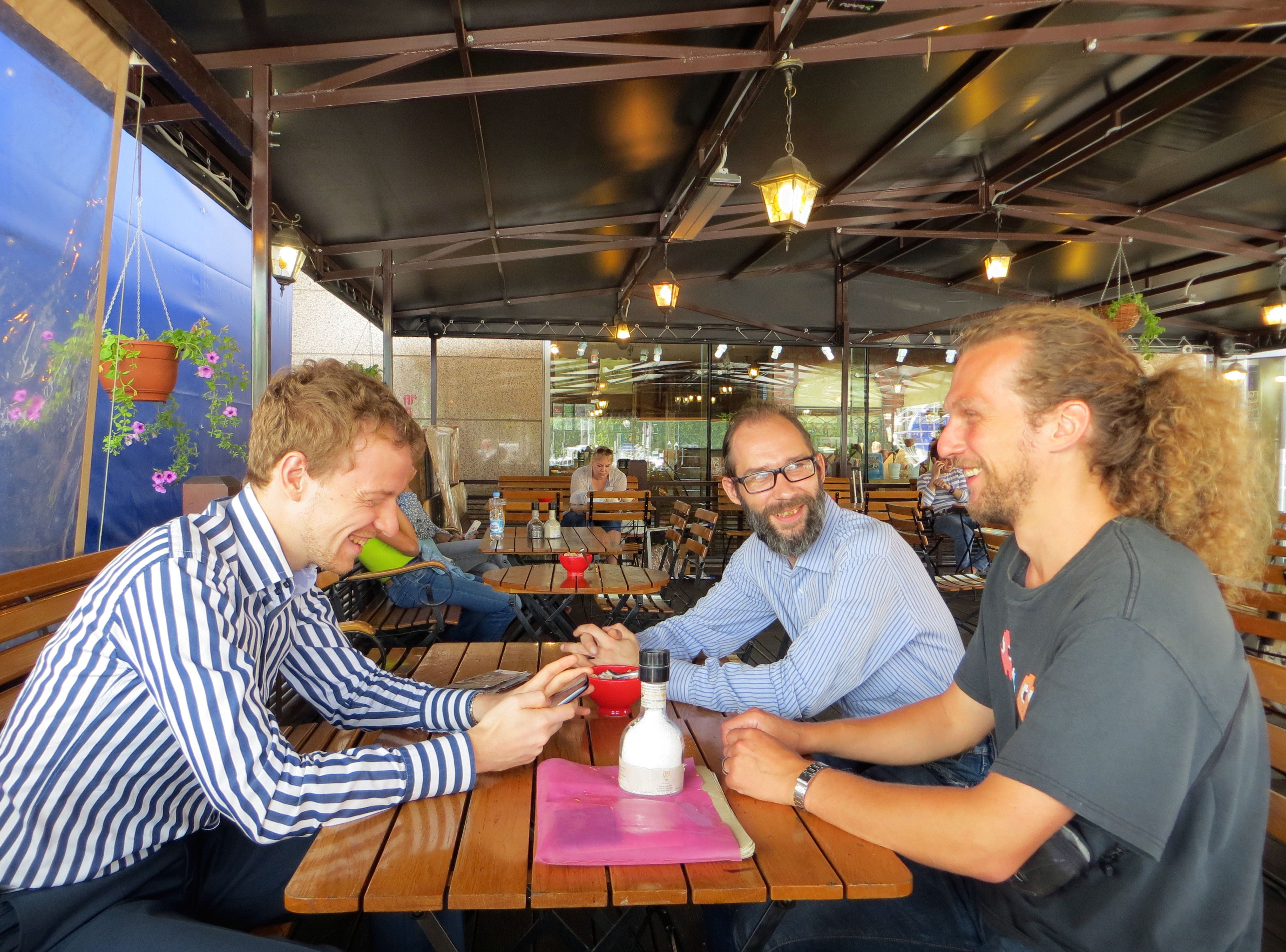 Николай, Кузьма, и Иван в кафе у Киевского вокзала. 2014-08-11
