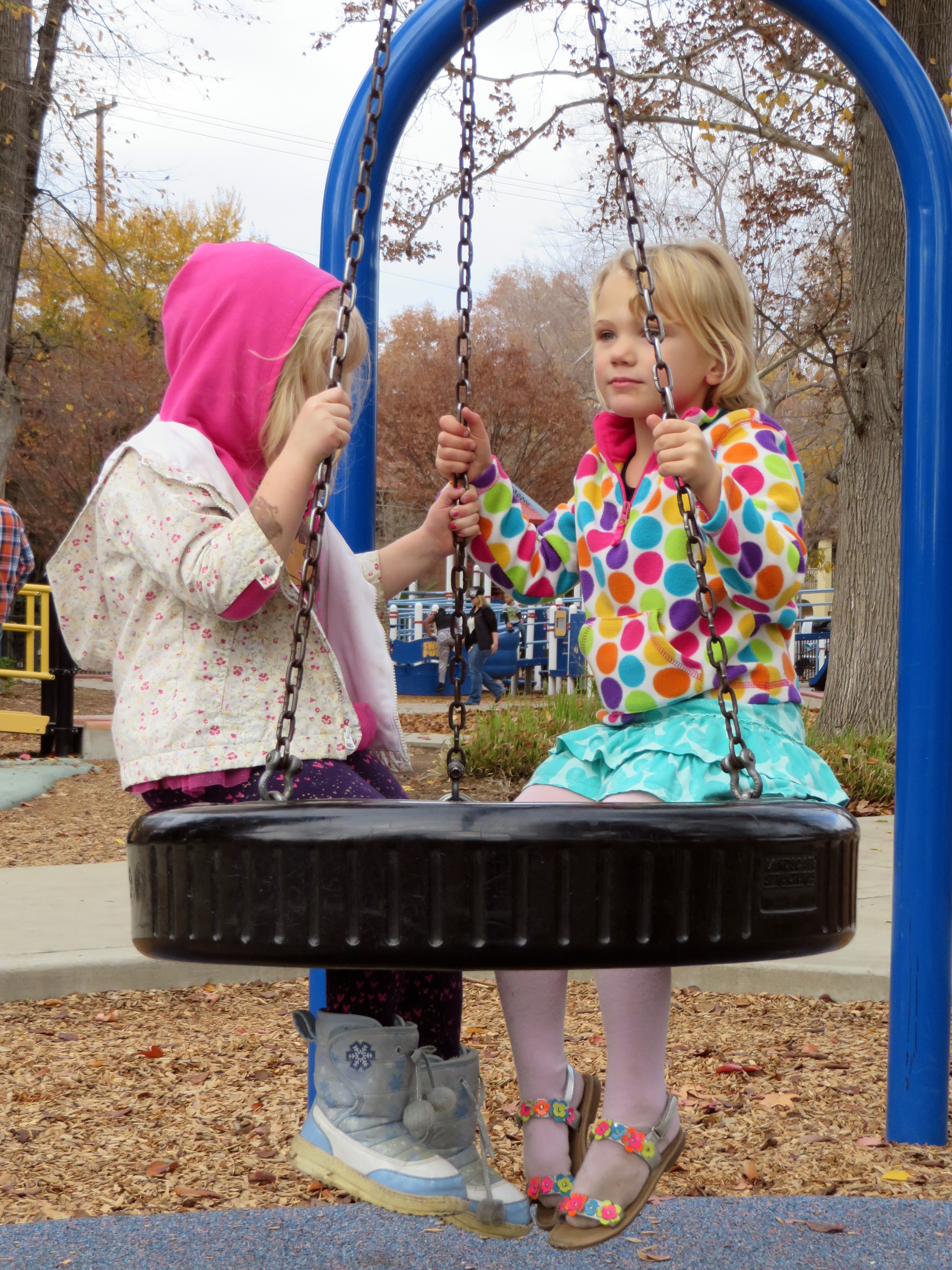 Olga and Margo walking to the park. По дороге в парк. 2015-10-03