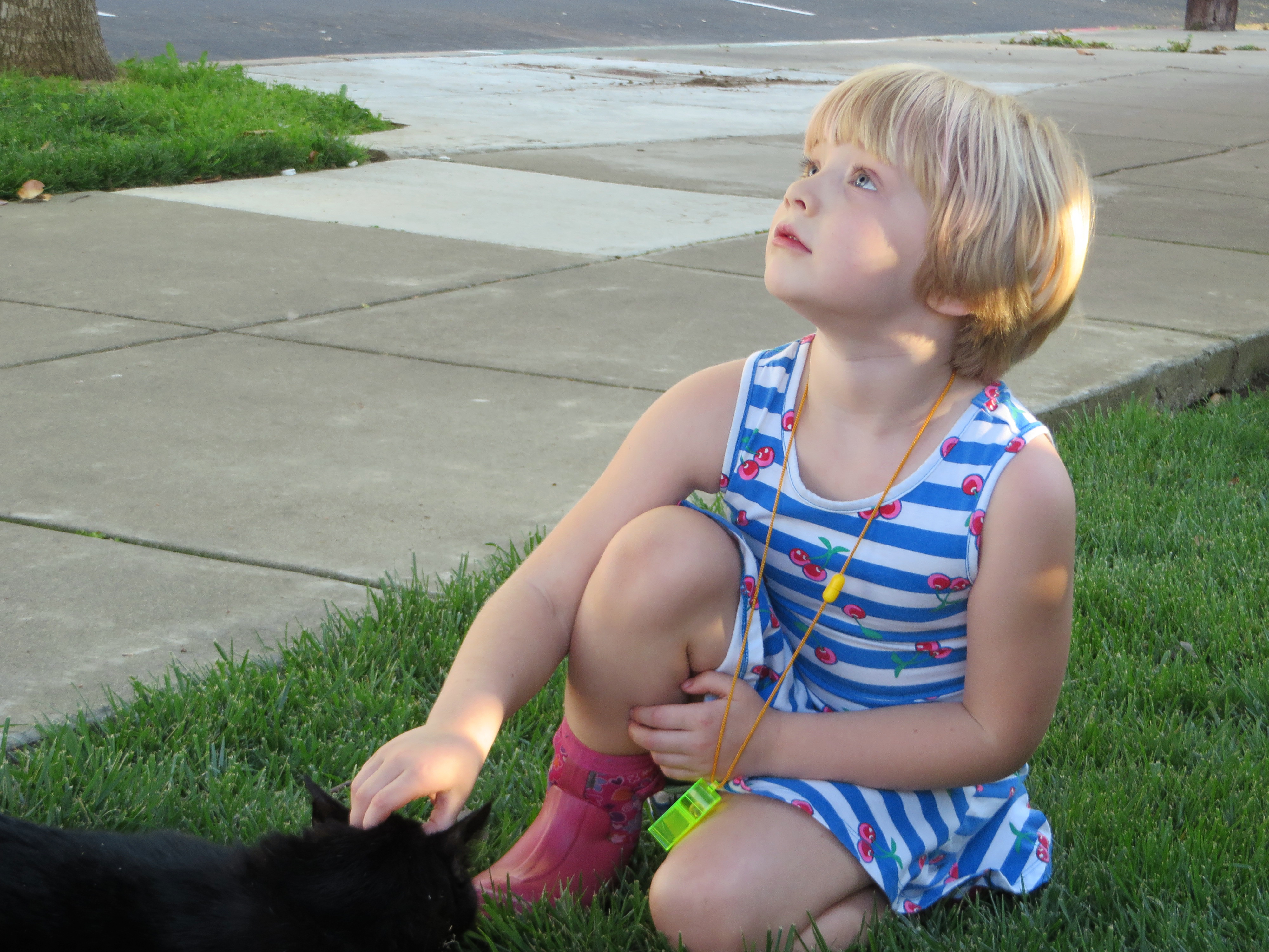 Cassie petting a cat. Кэси ласкает кота. 2016-04-02