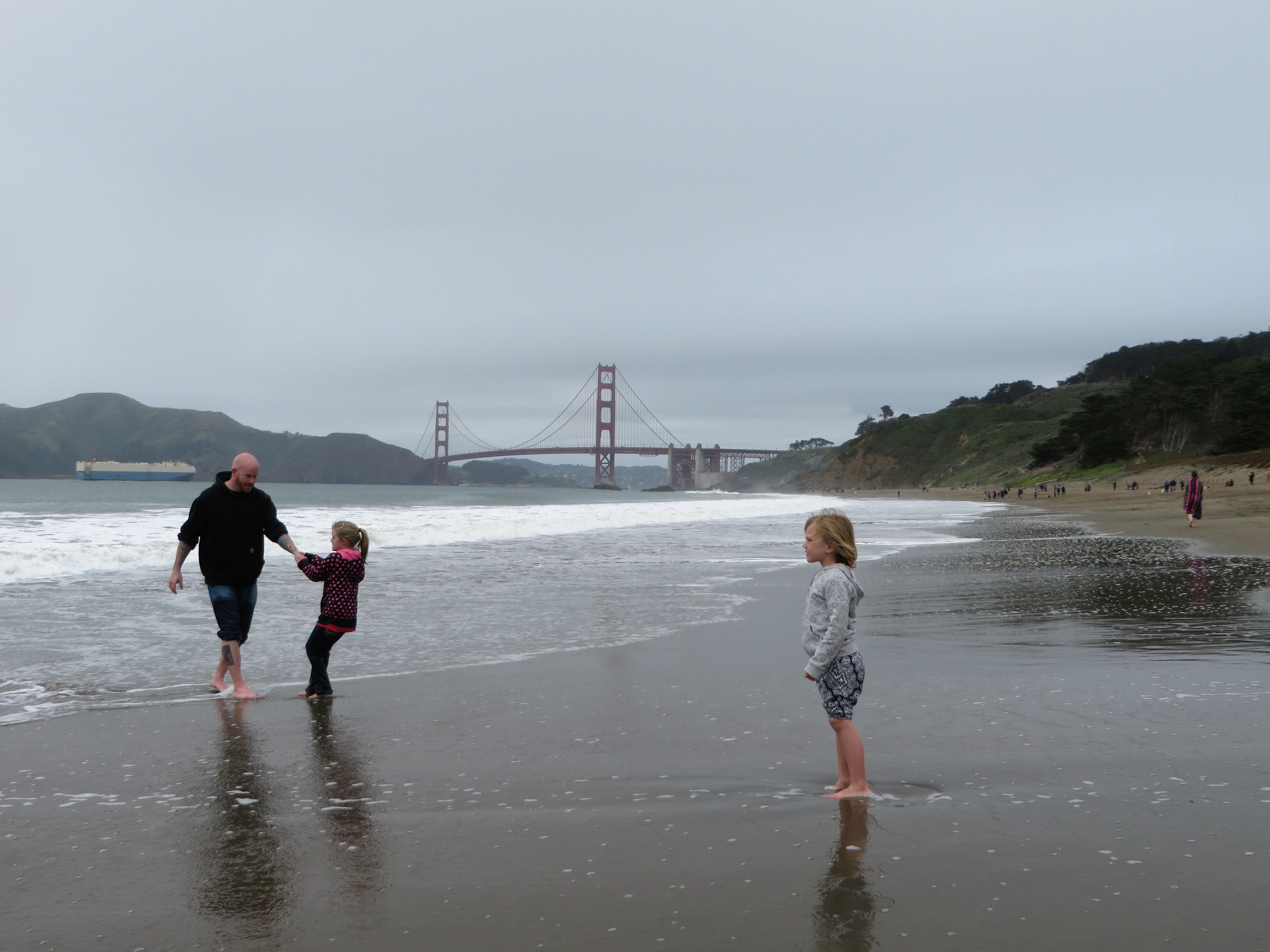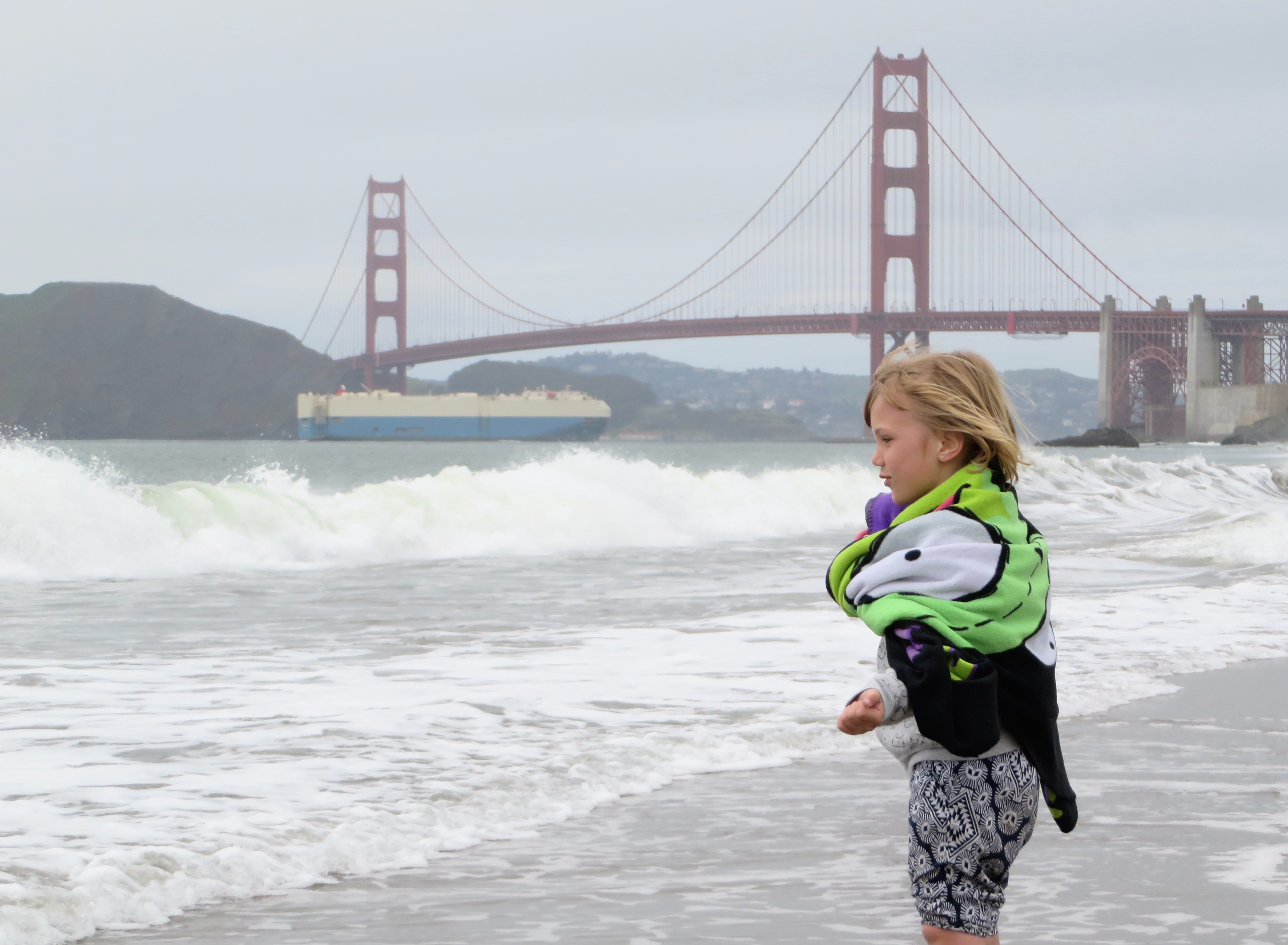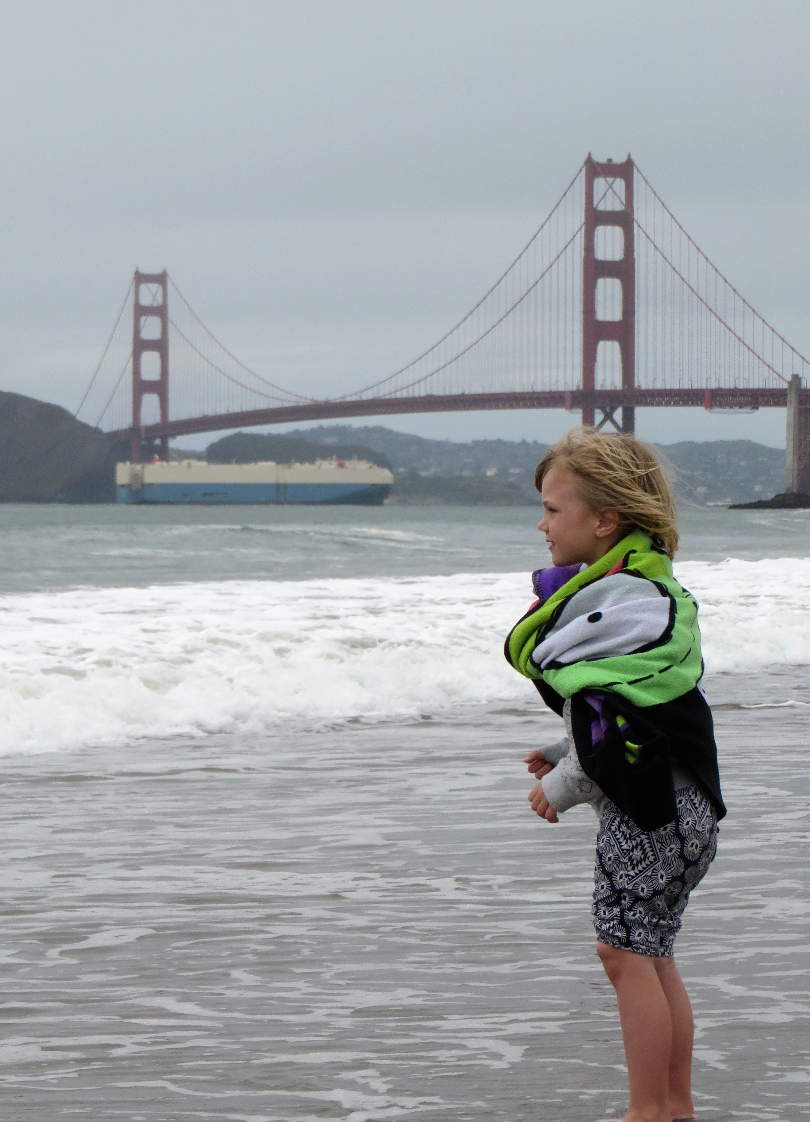 Margo on the shore of the Pacific ocean near the Golden Gate bridge in San Francisco CA. Марго на берегу Тихого океана подле моста Золотые Ворота в Сан Франциско.
