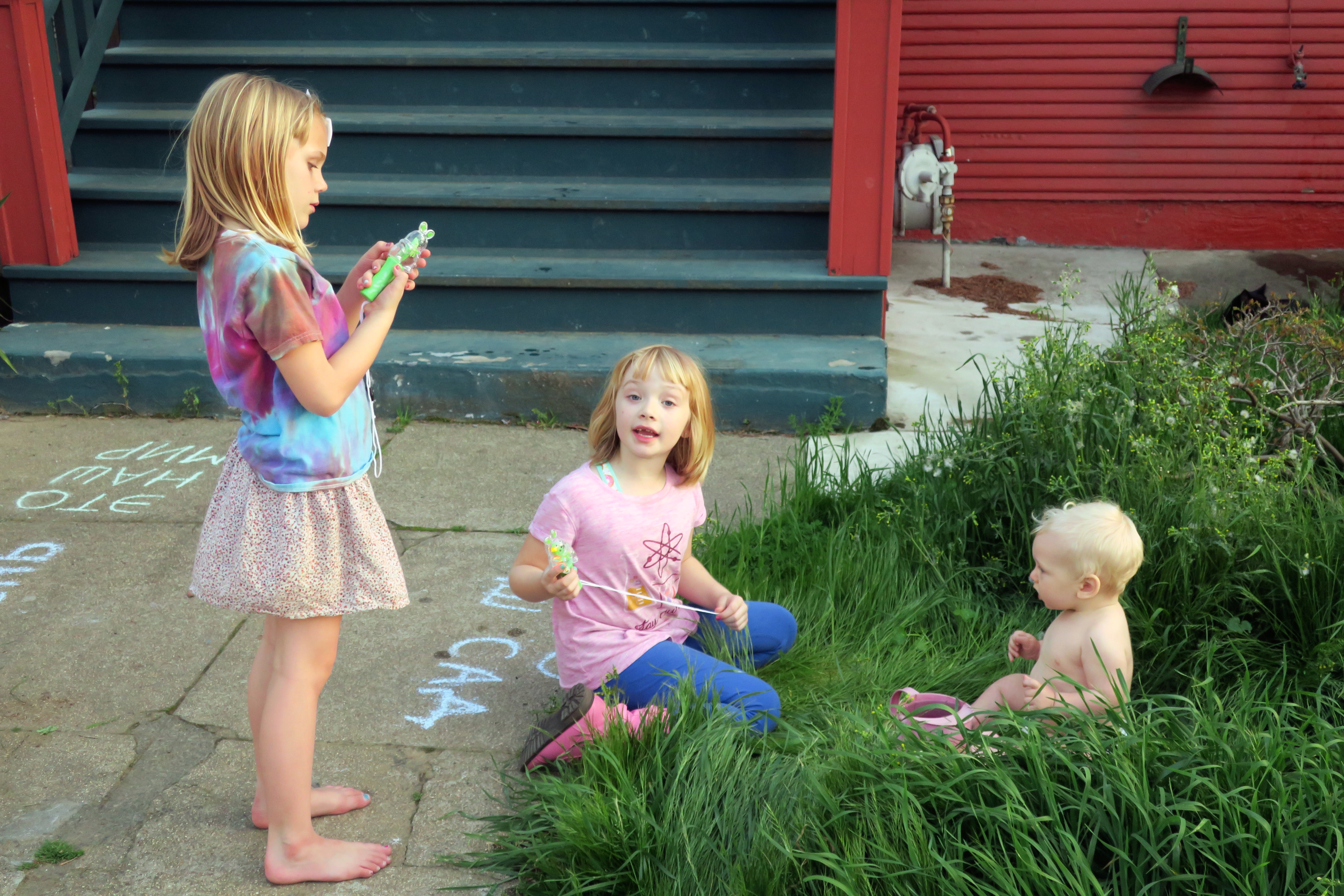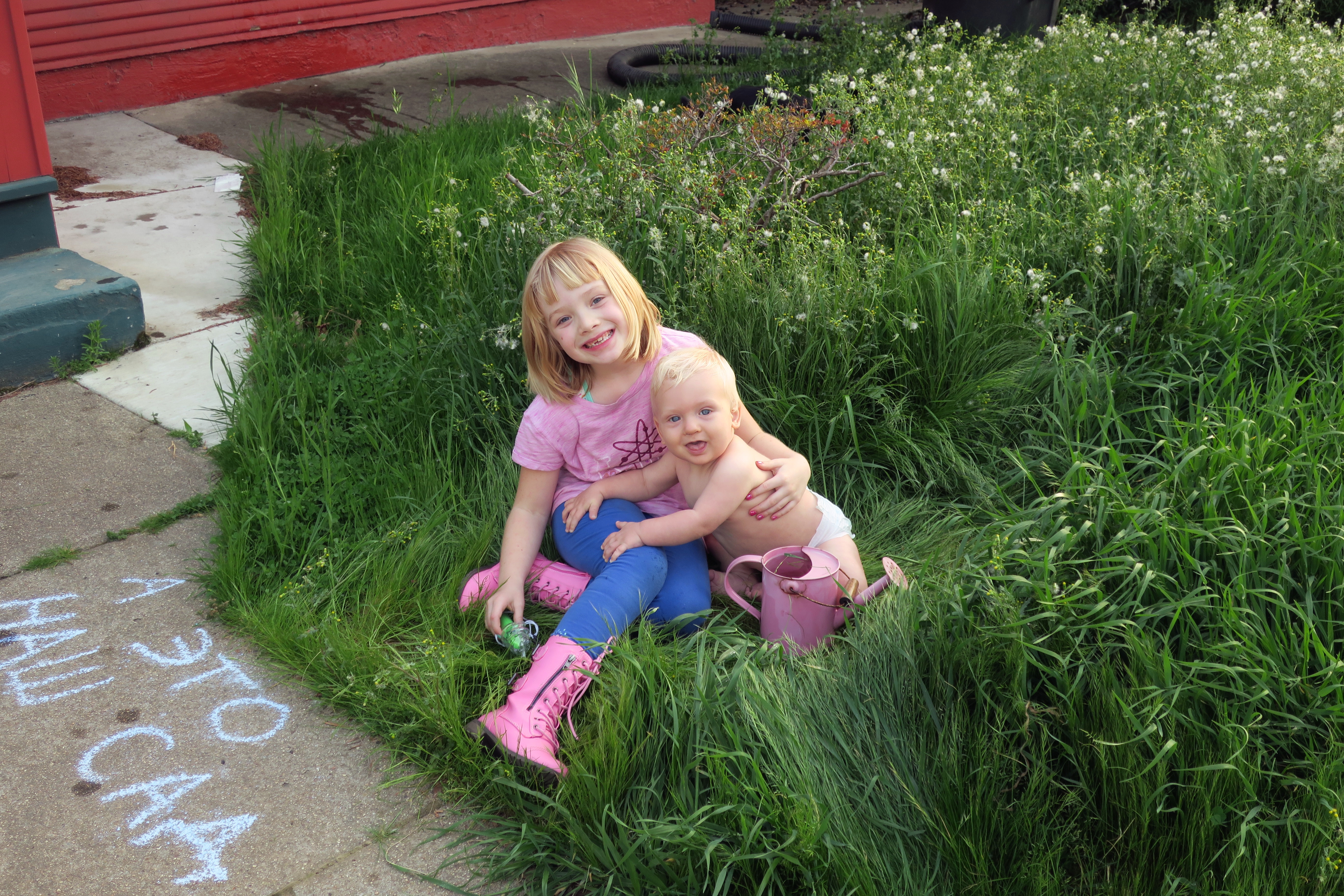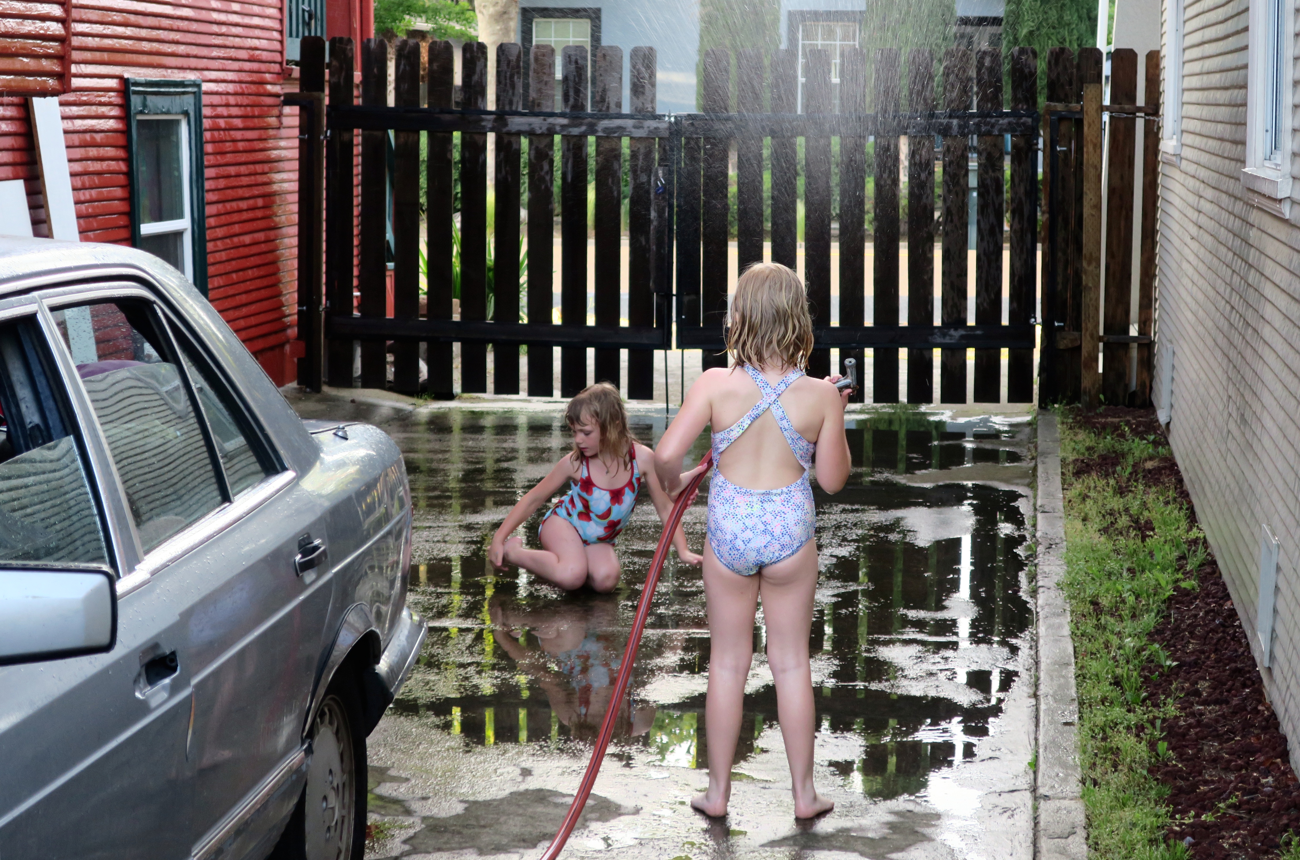 Margo and Cassie playing with water hose in the back. Марго и Кэси играют с водяным шлангом на задах. 2018-05-05