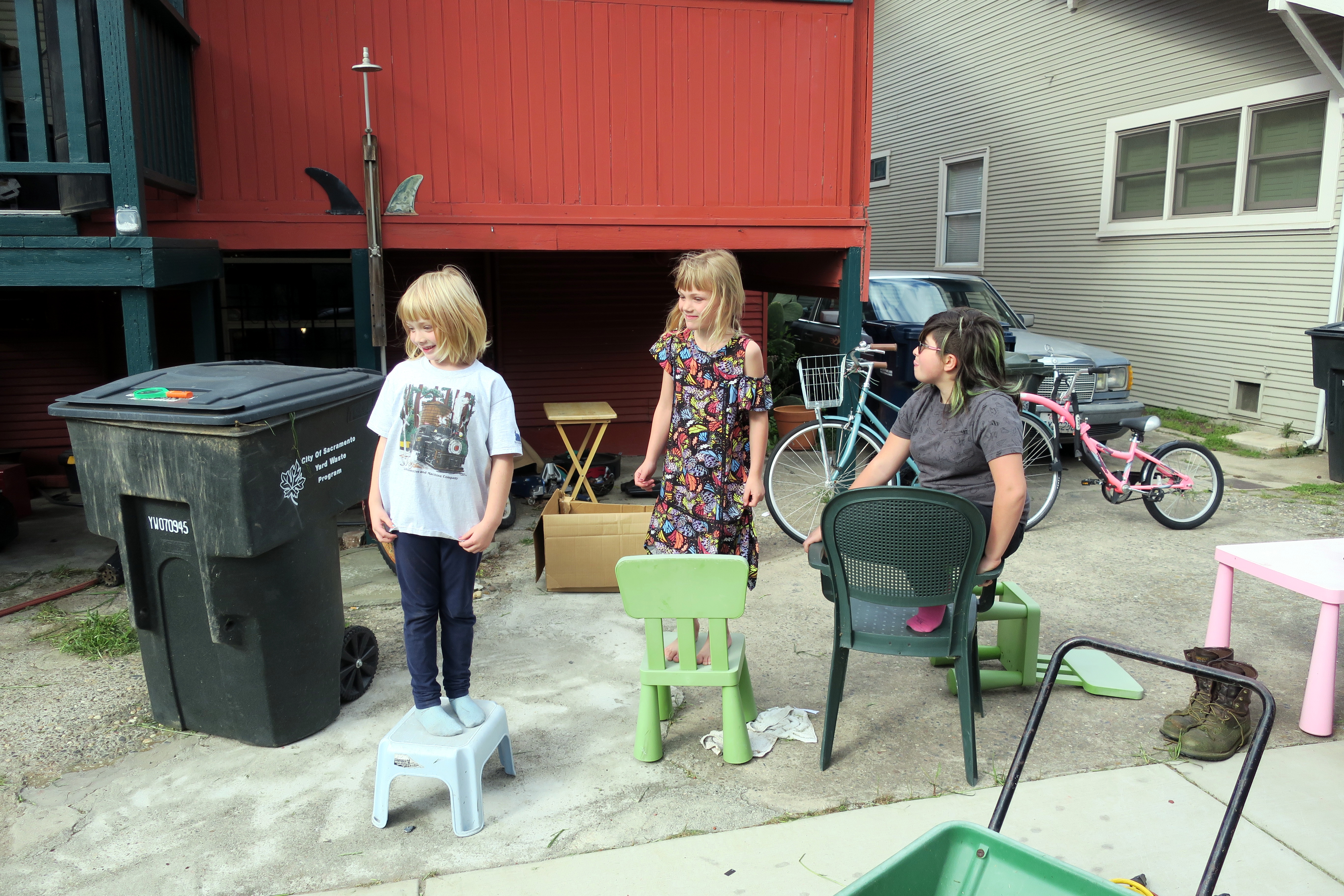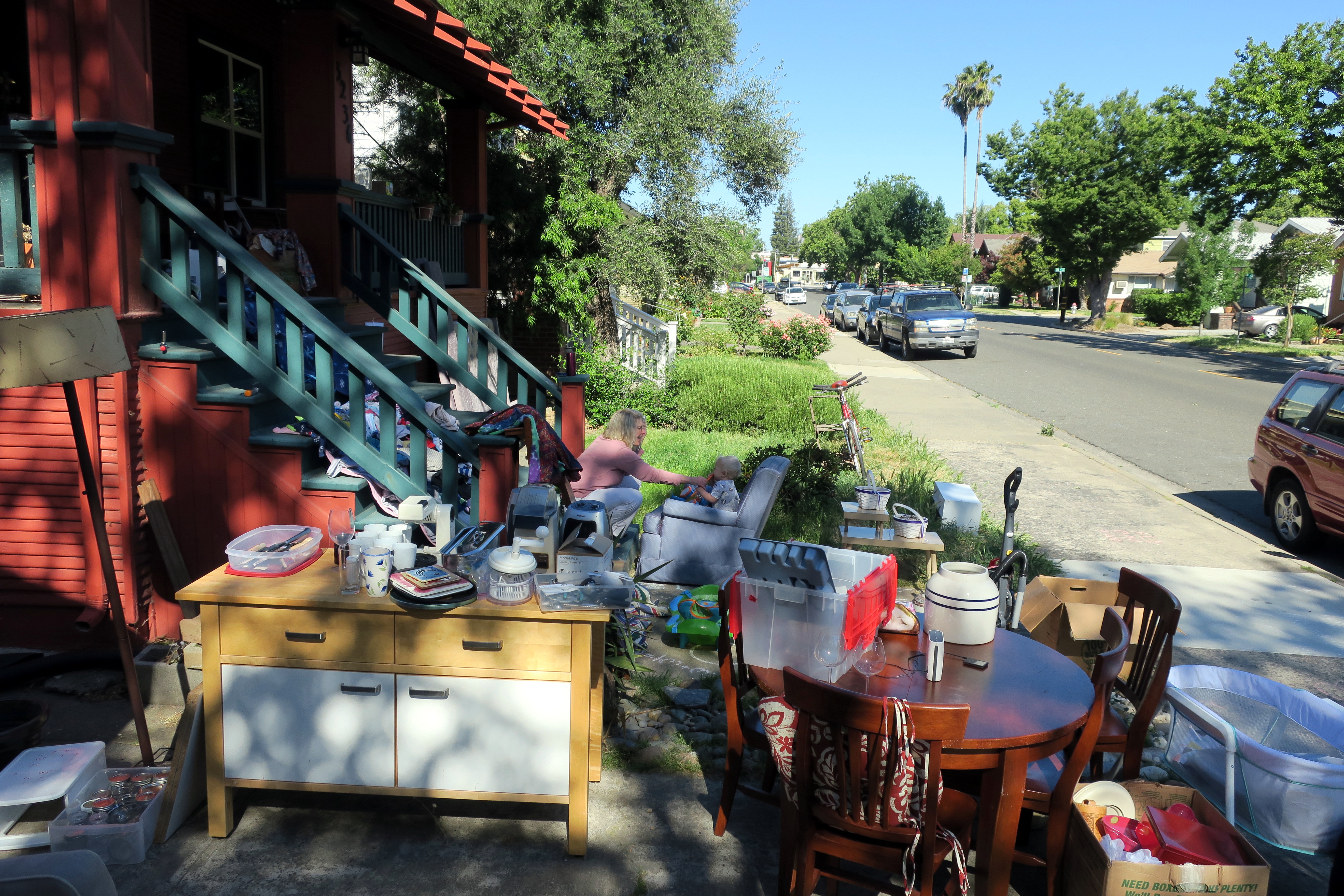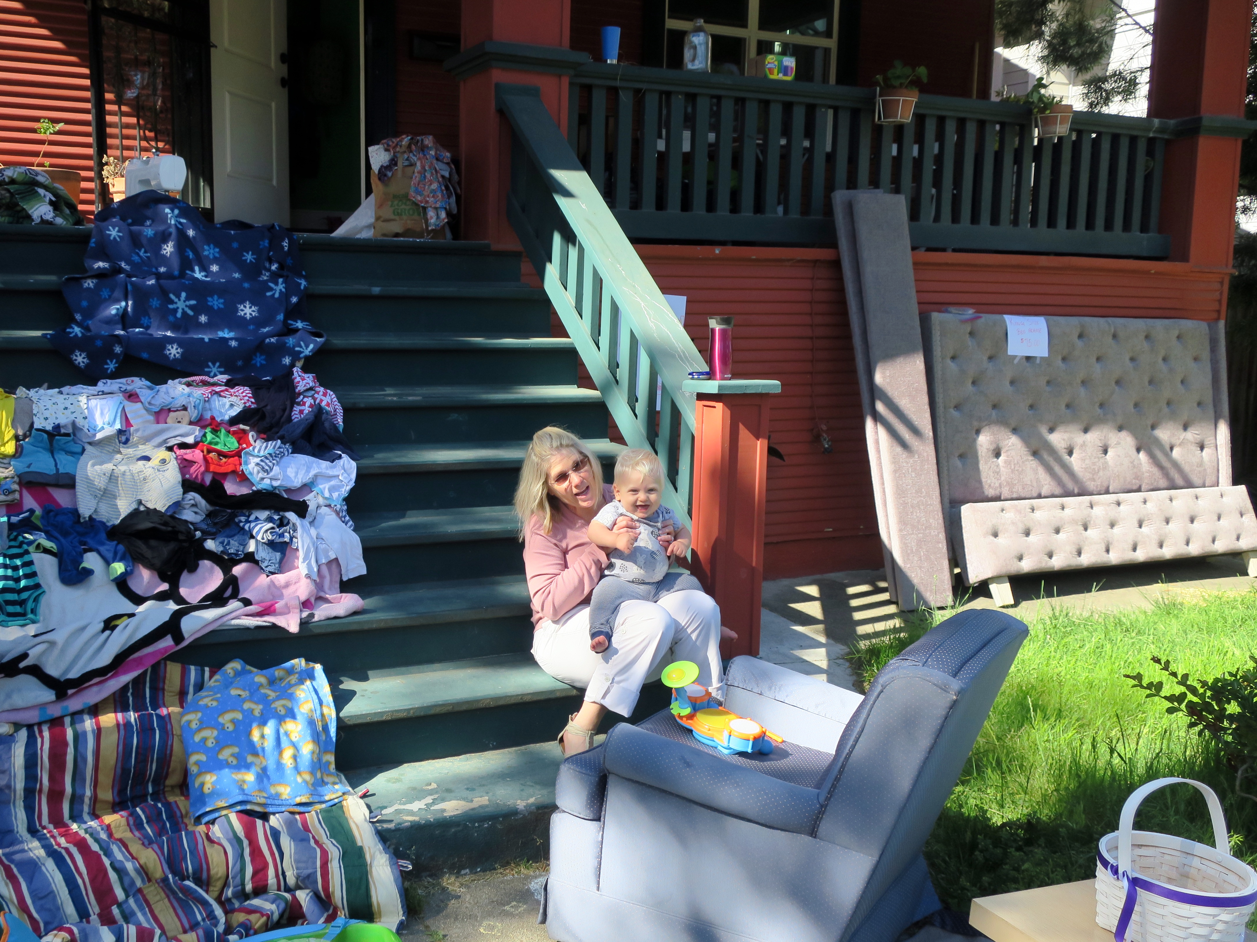 Nancy and Leo at our garage sale. Нэнси и Лёва на нашей распродаже хлама. 2018-05-12