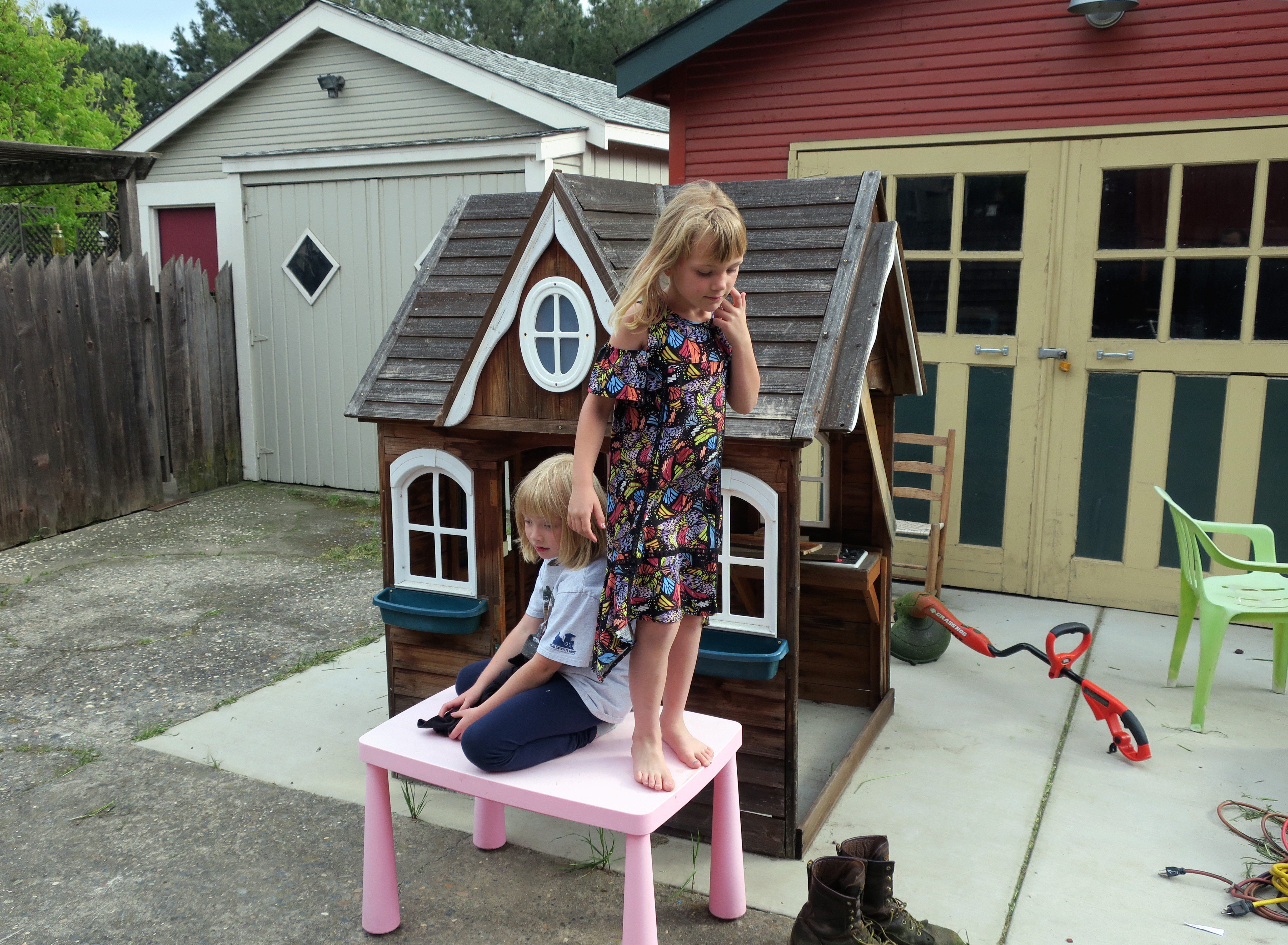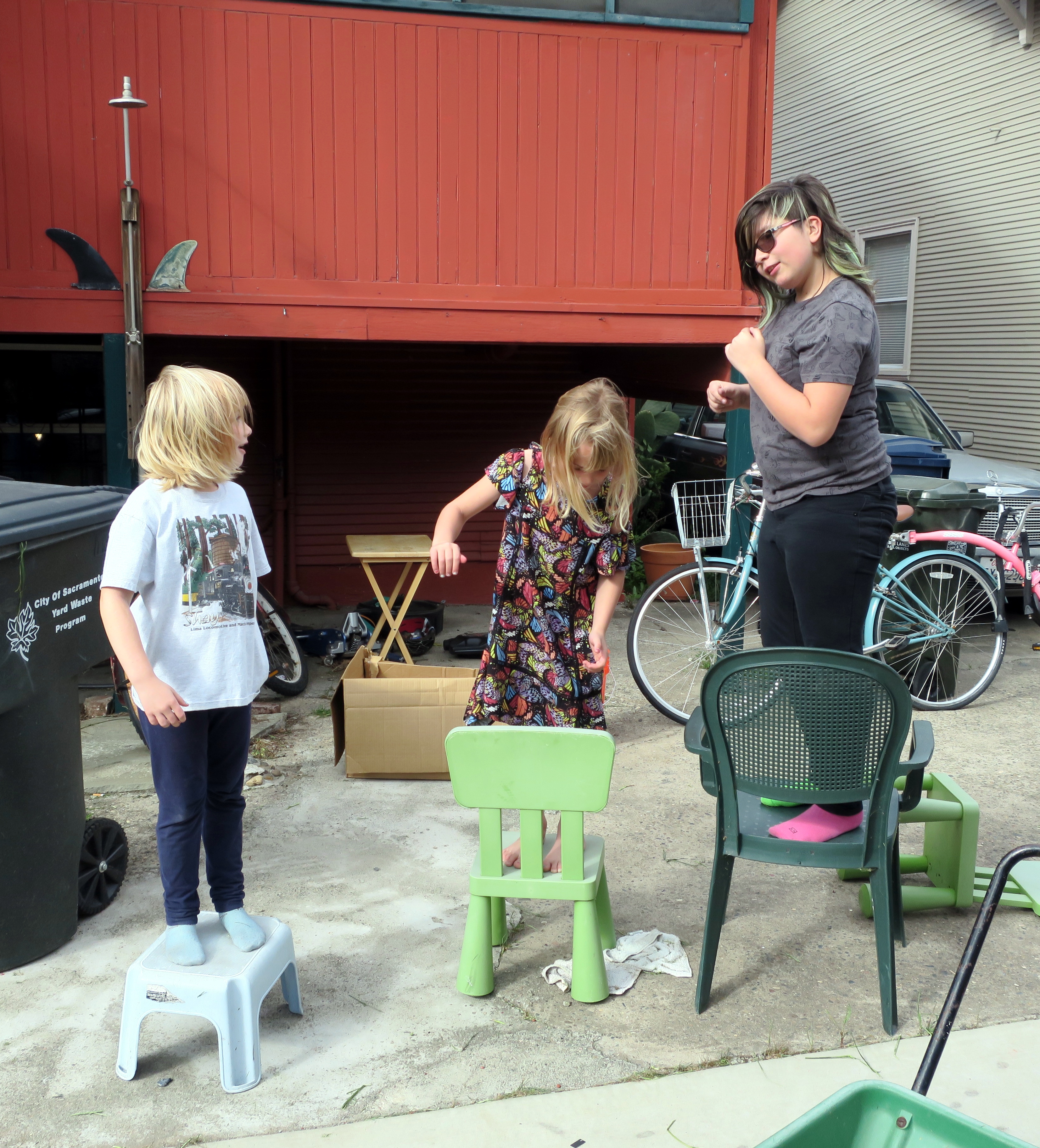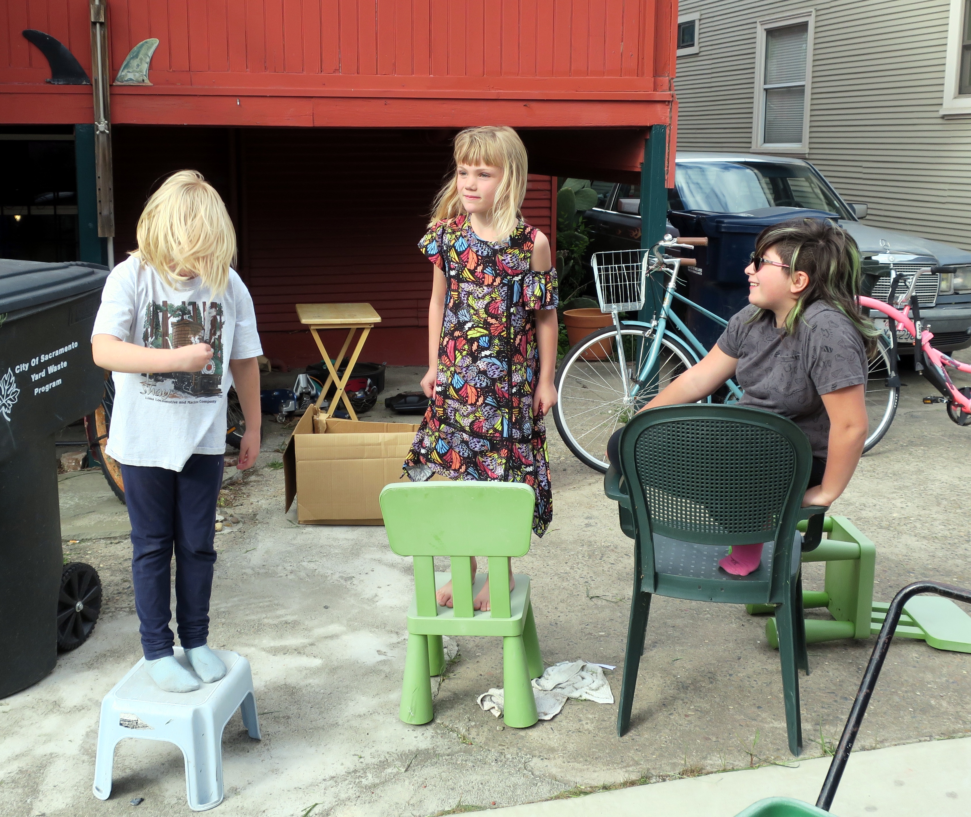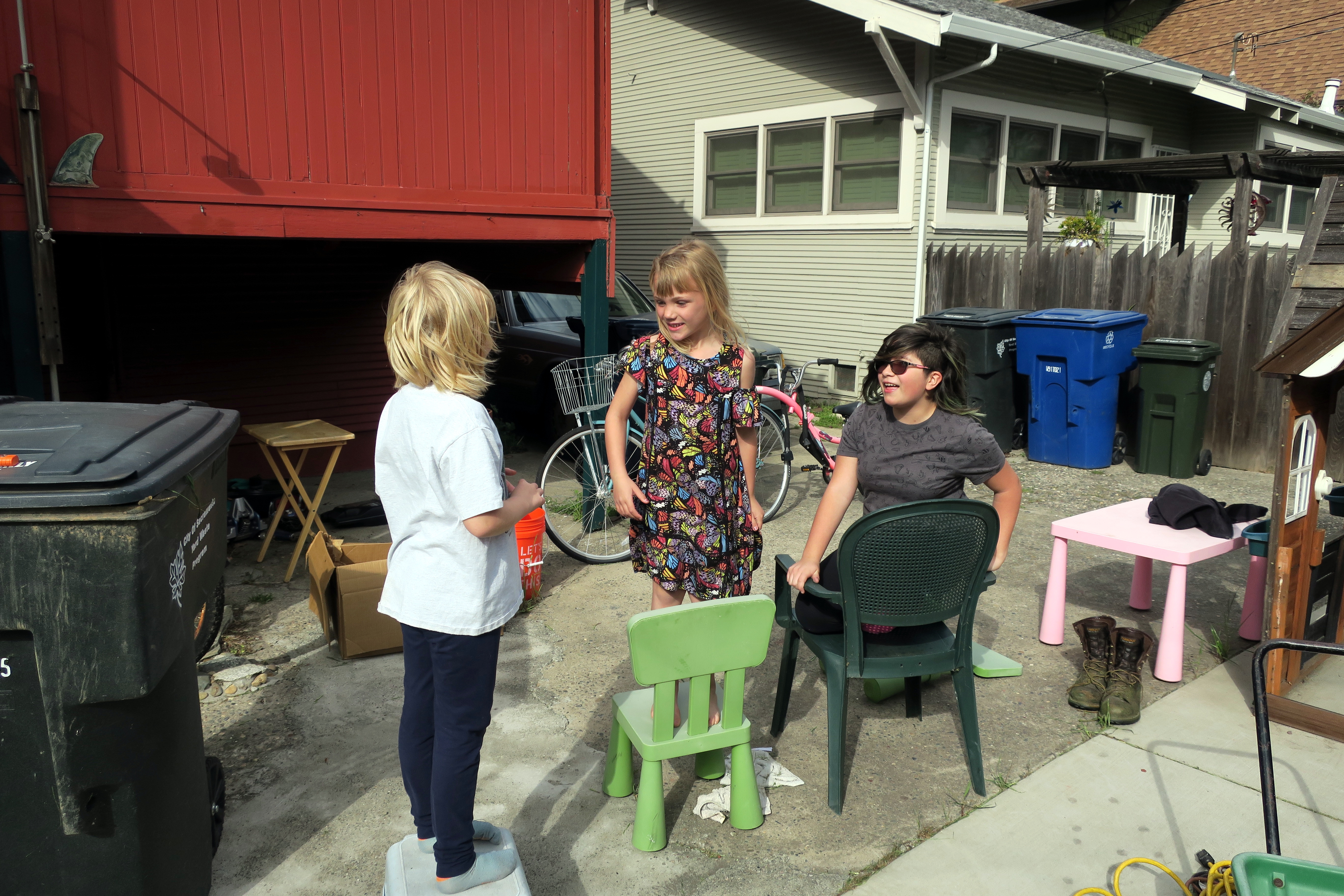 Nancy and Leo at our garage sale. Нэнси и Лёва на нашей распродаже хлама. 2018-05-12