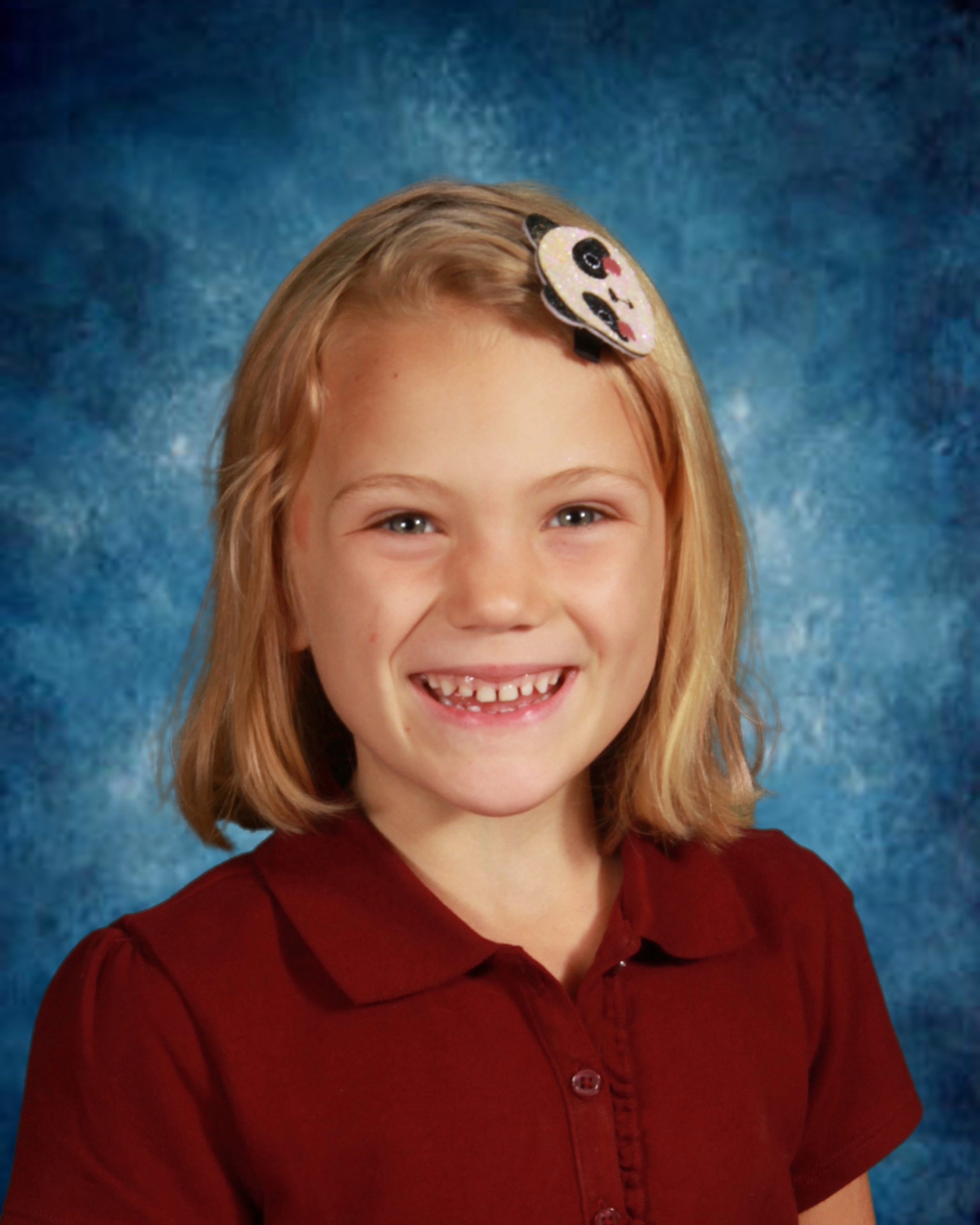 Margo's school picture (kindergarten, age 6.5-ish). Школьная фотография Марго (класс 0, типа 6.5 лет). 2018