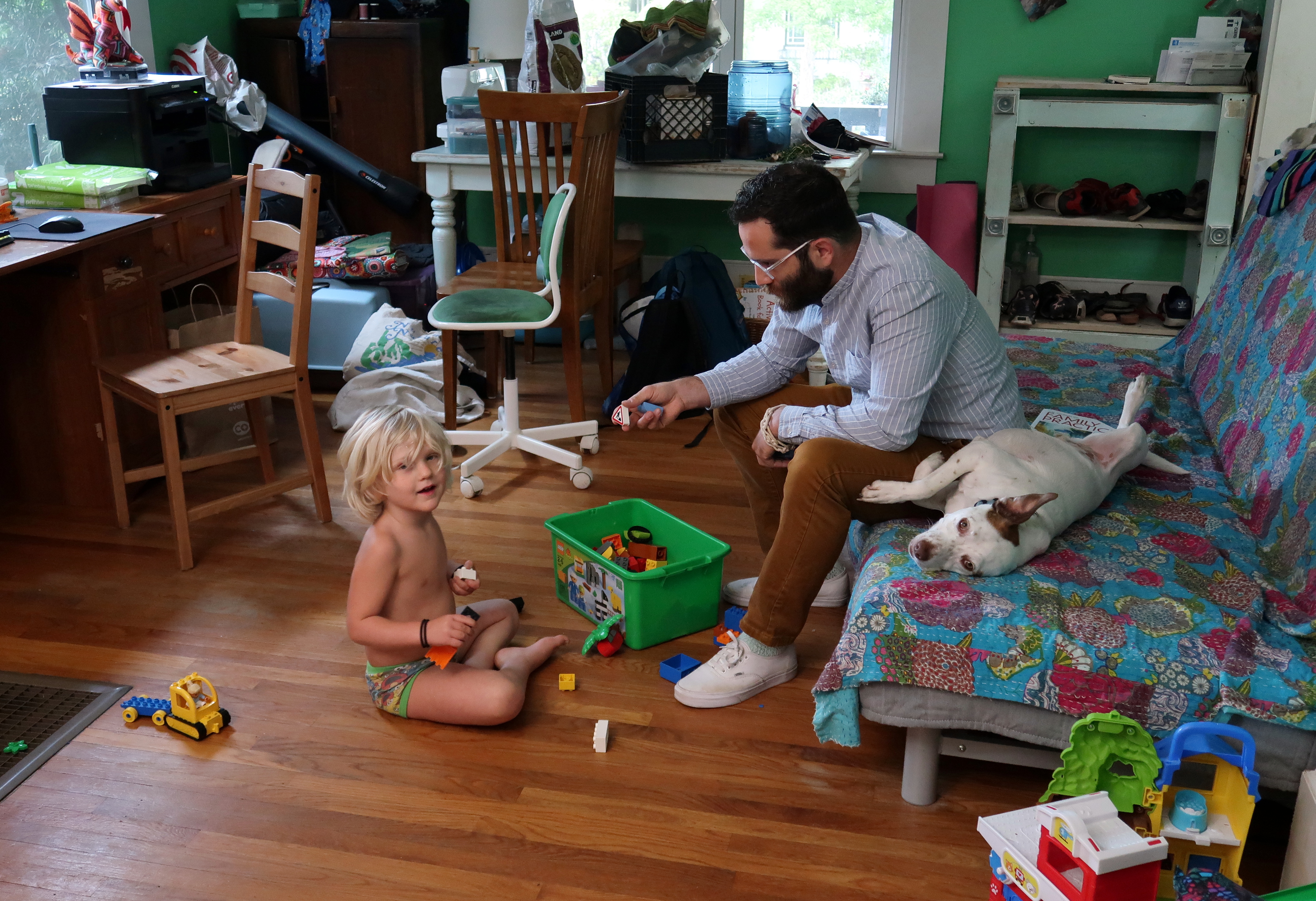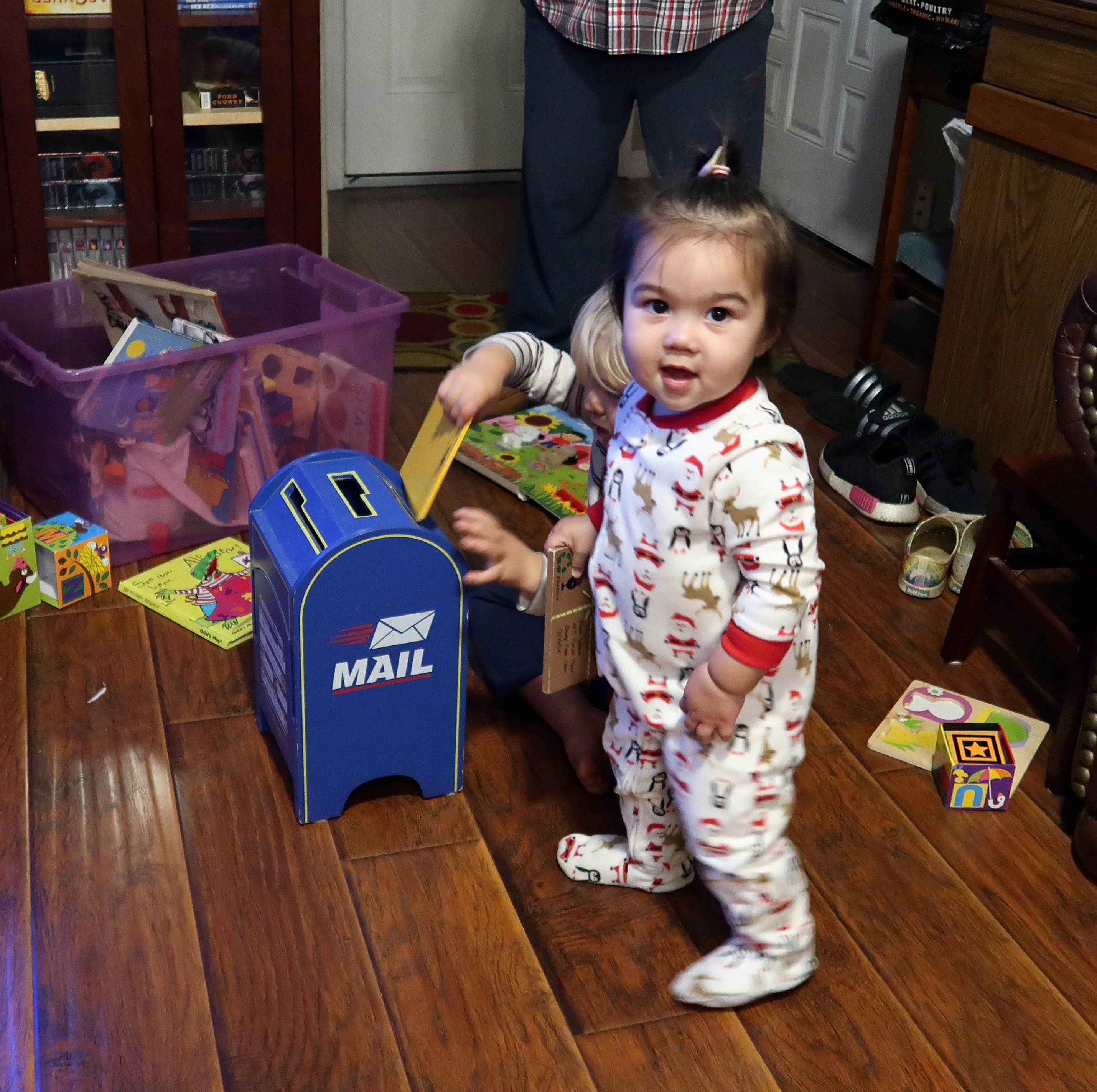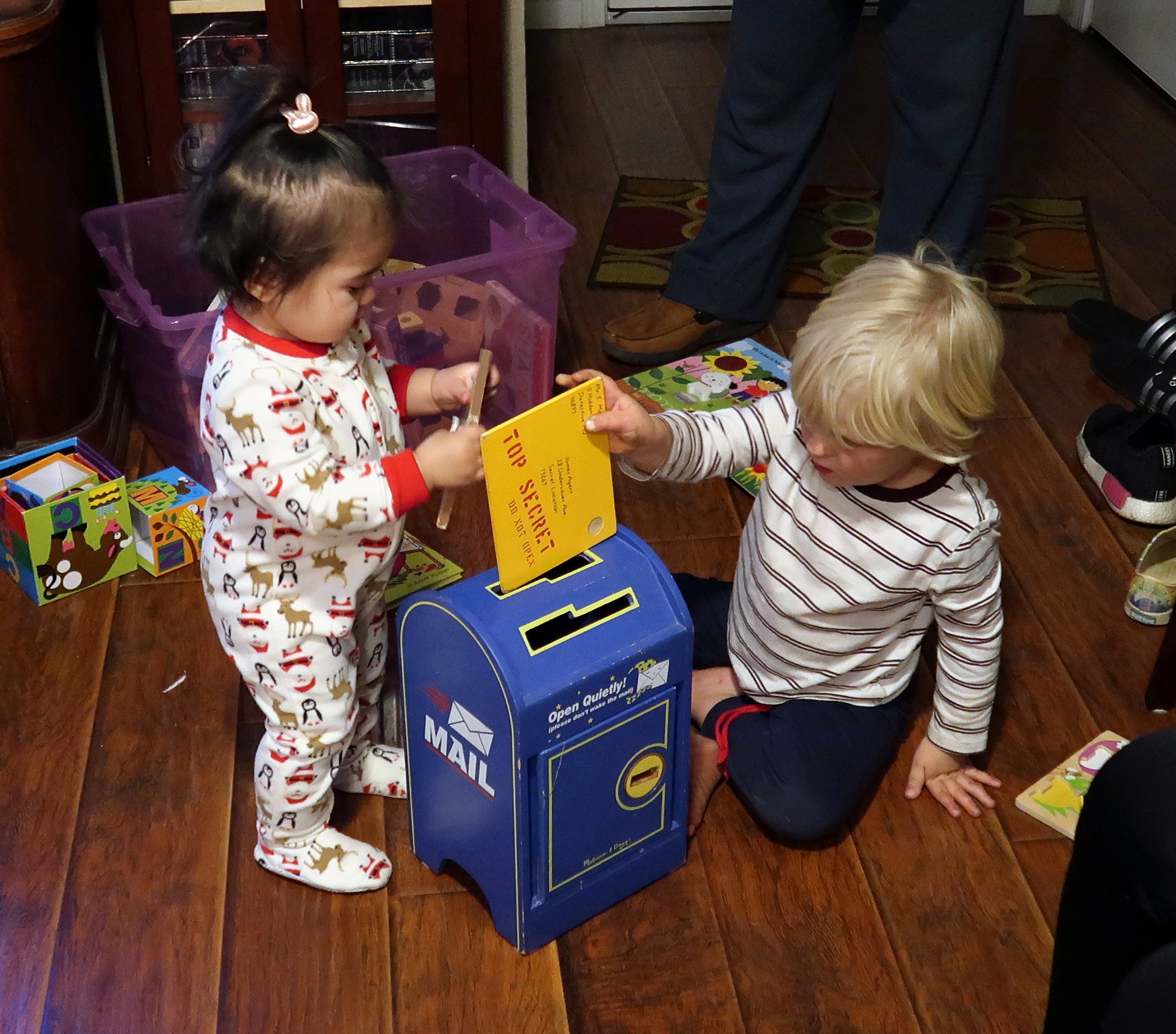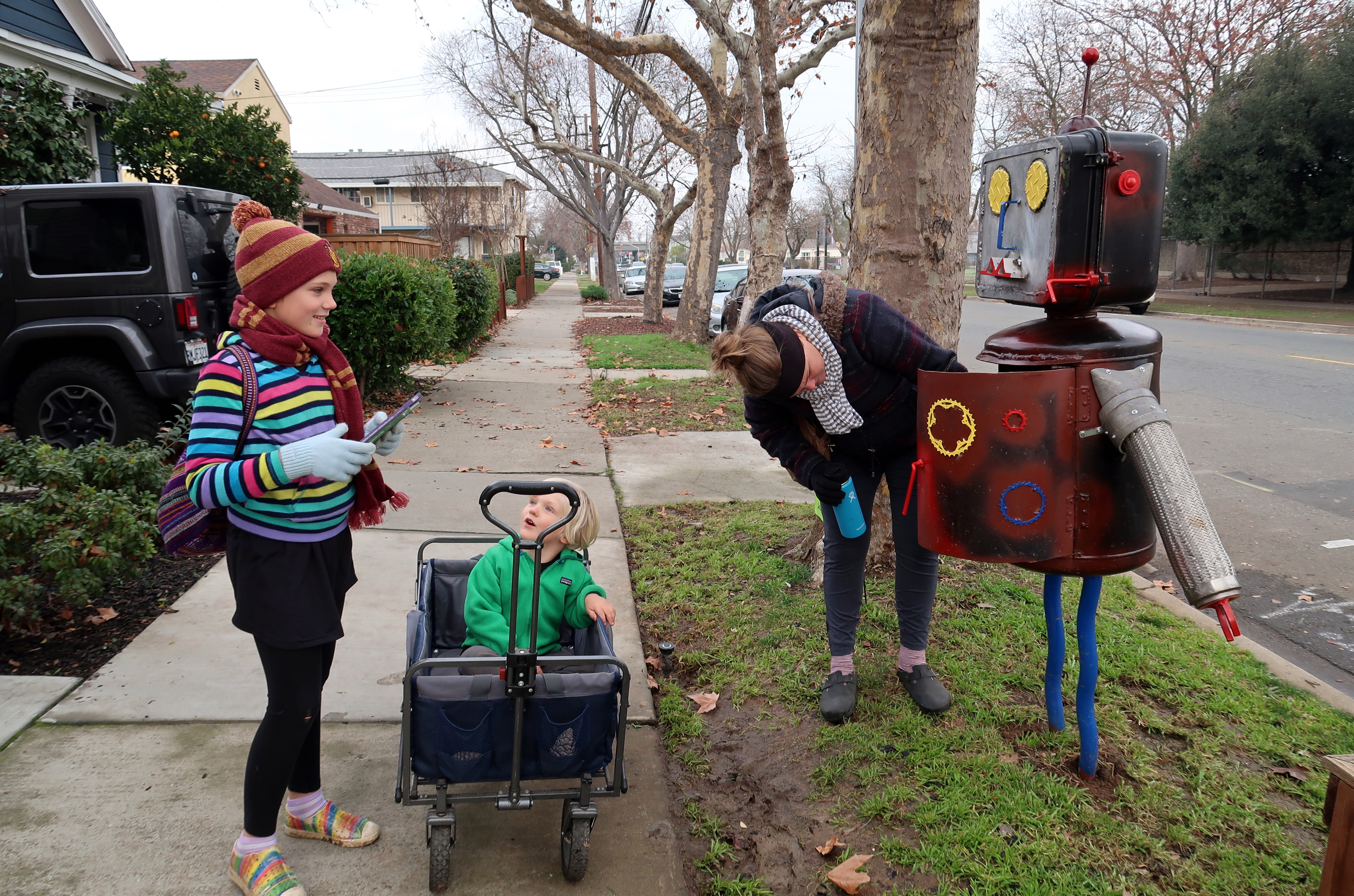 Maggy, Leo, and Morgan at the Robot Library, 34th street. 2021-01-06
