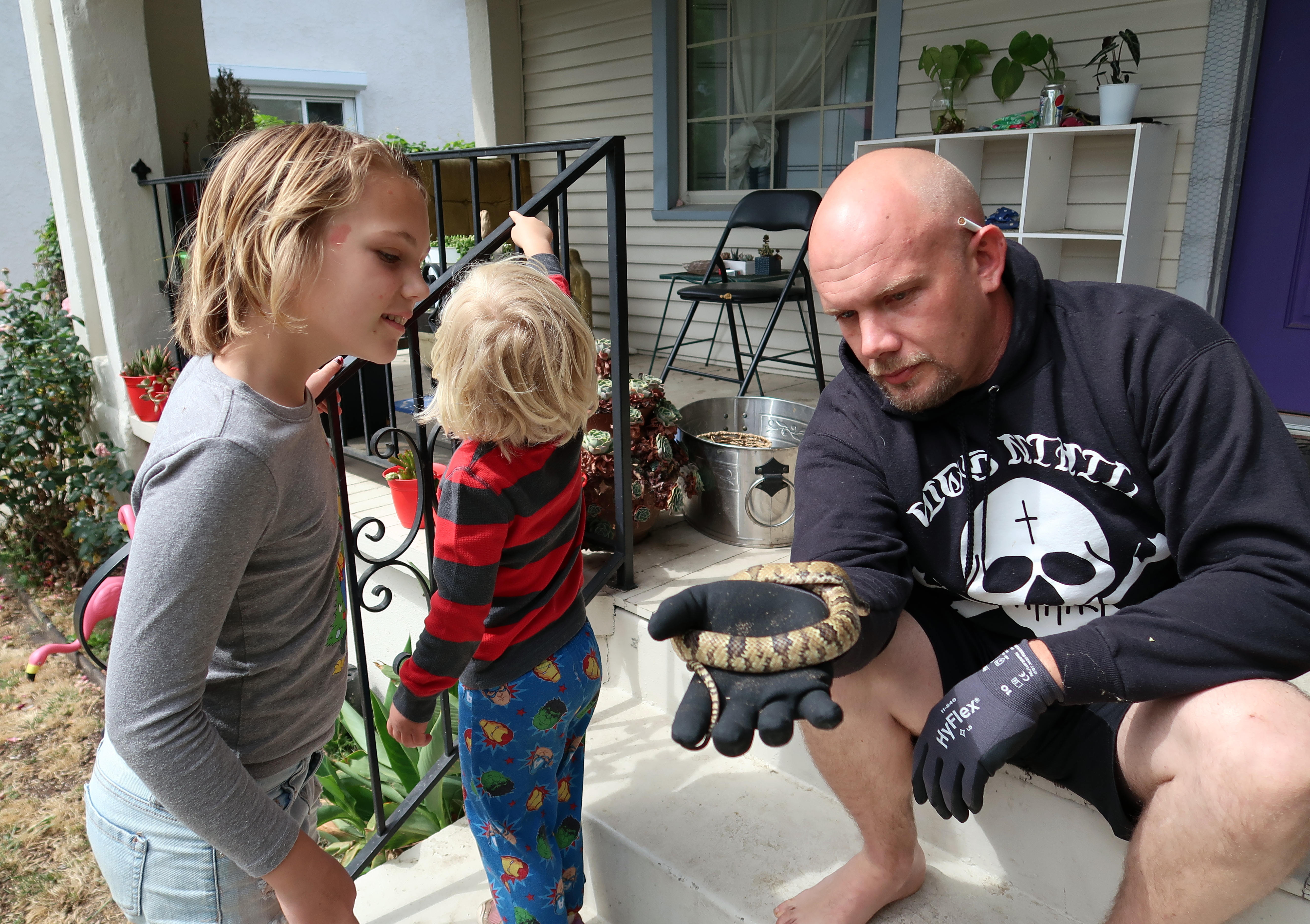 Maggy, Leo, and Luke are saying hi to the snake. 2021-04-24