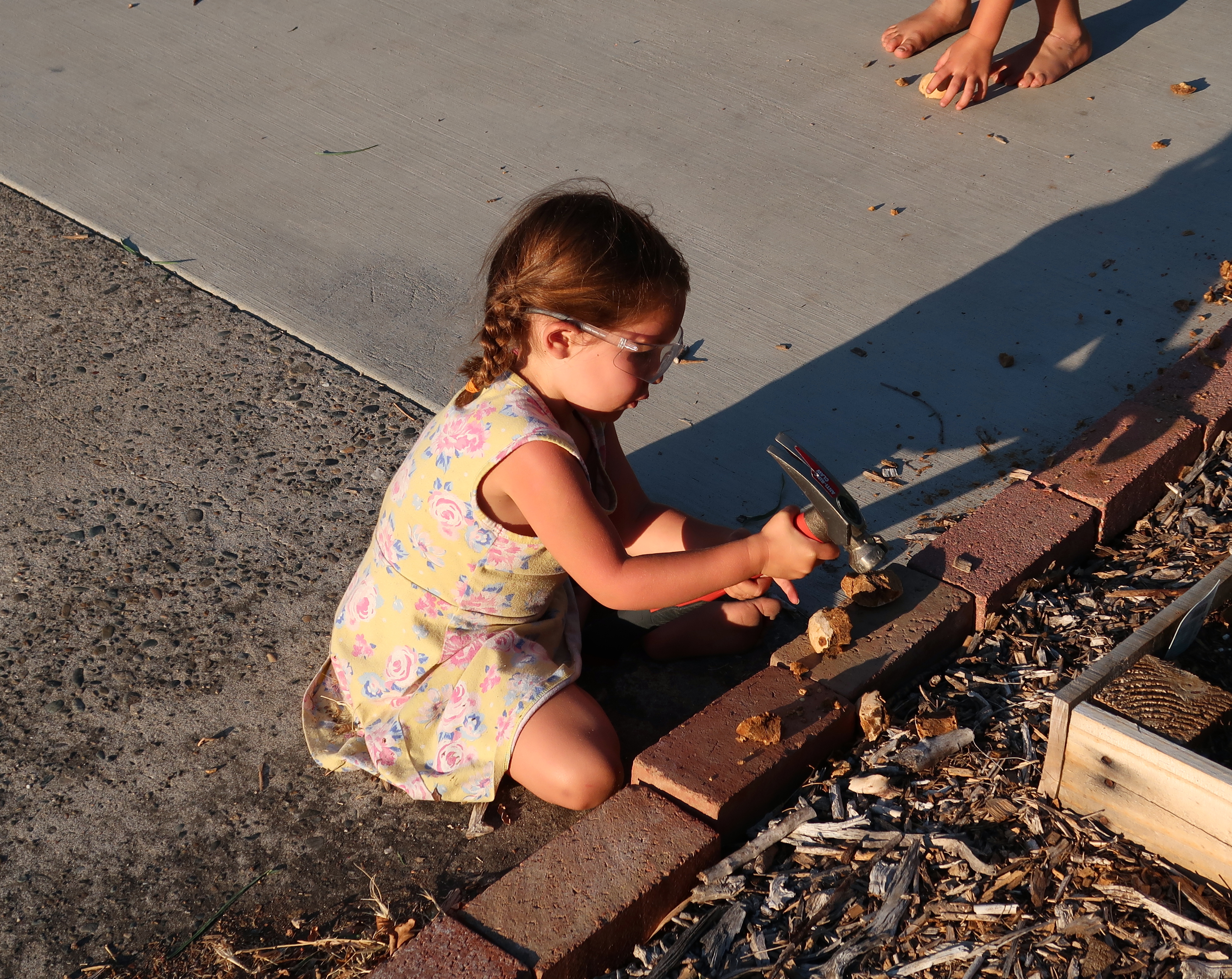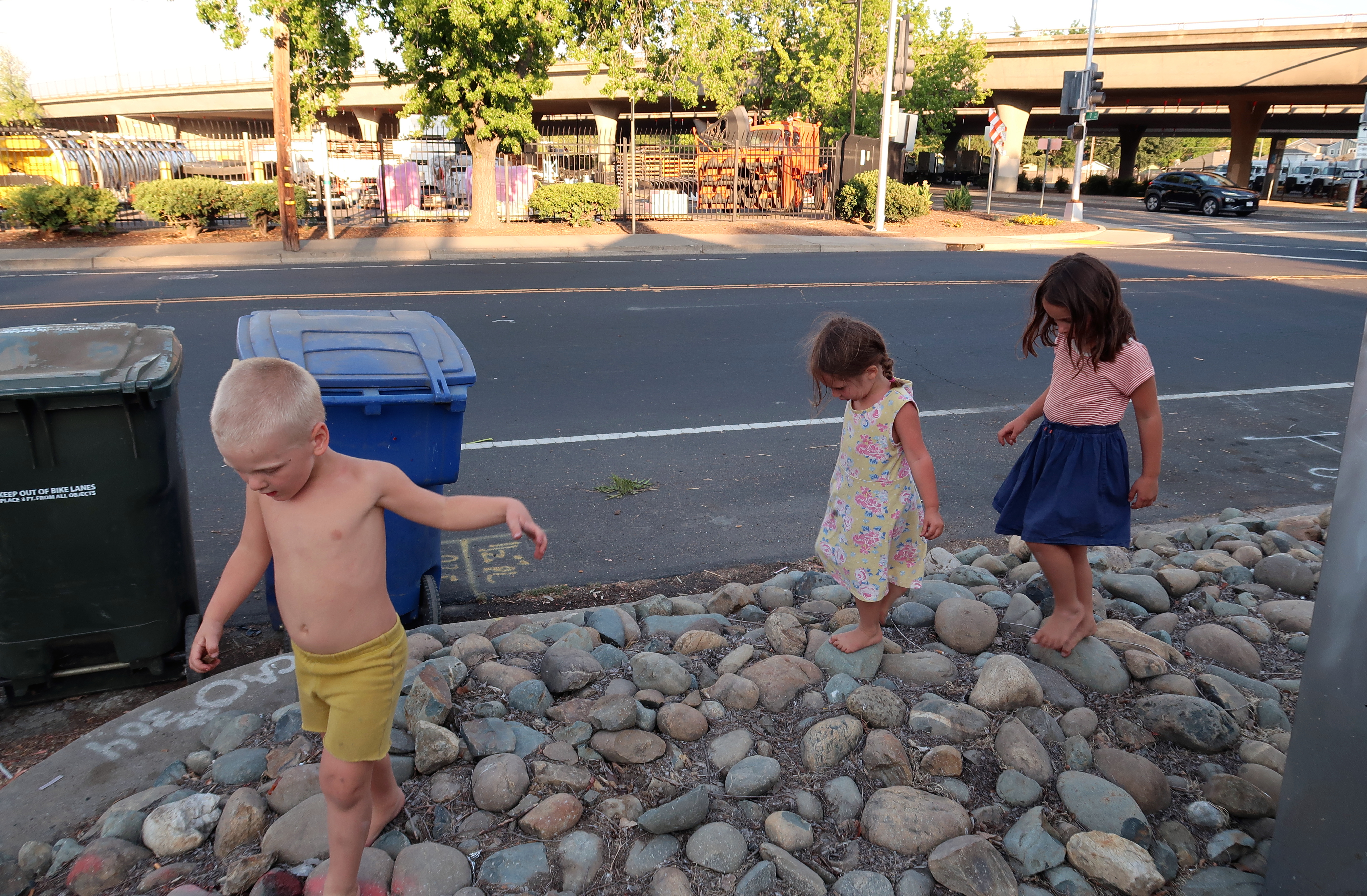 Leo, Phoebe, and Mila negotiating the boulders. 2021-06-30