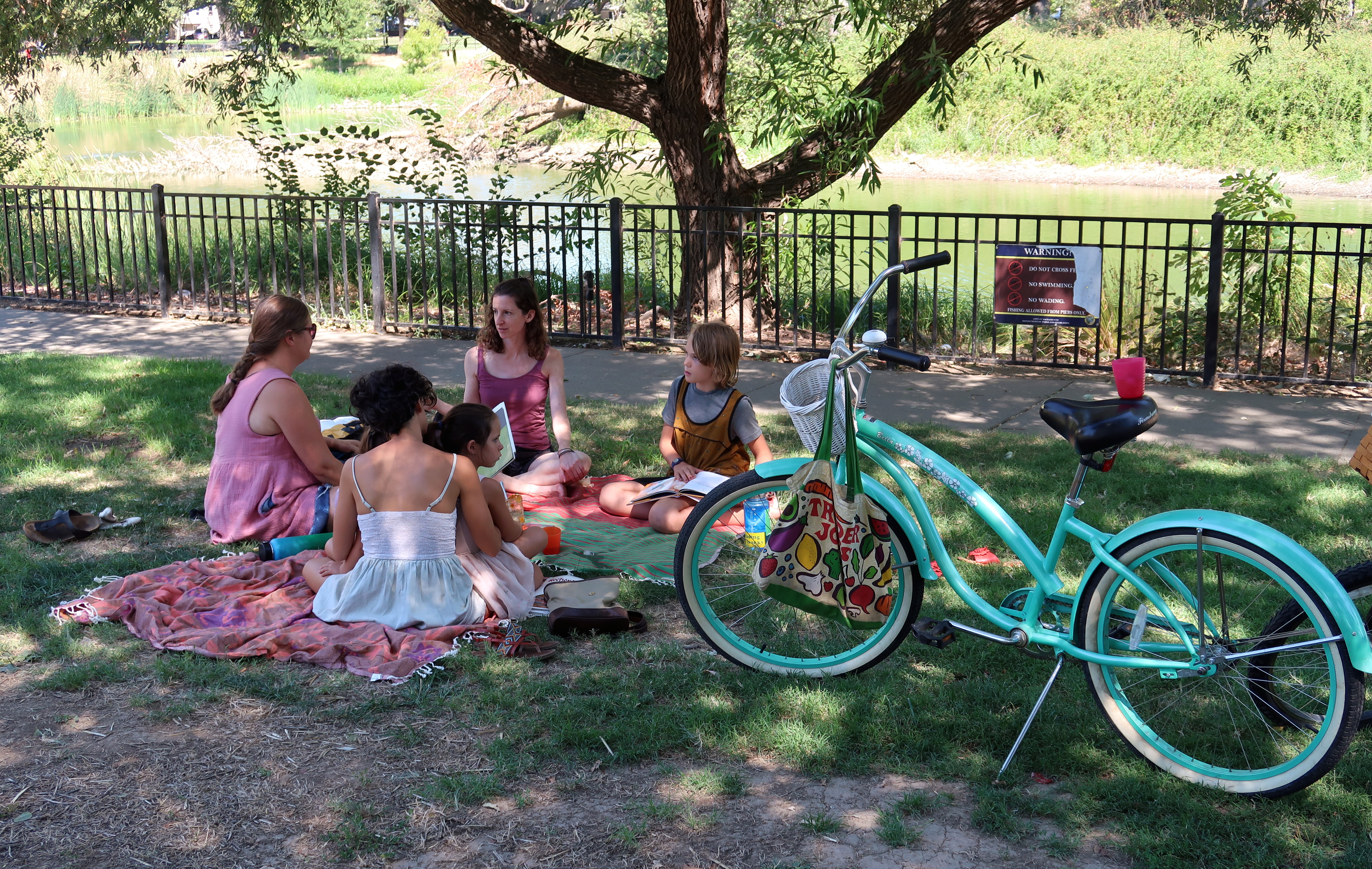 Morgan, Michelle with Mila, Emily, and Maggy having a luch at Southside park. 2021-08-09