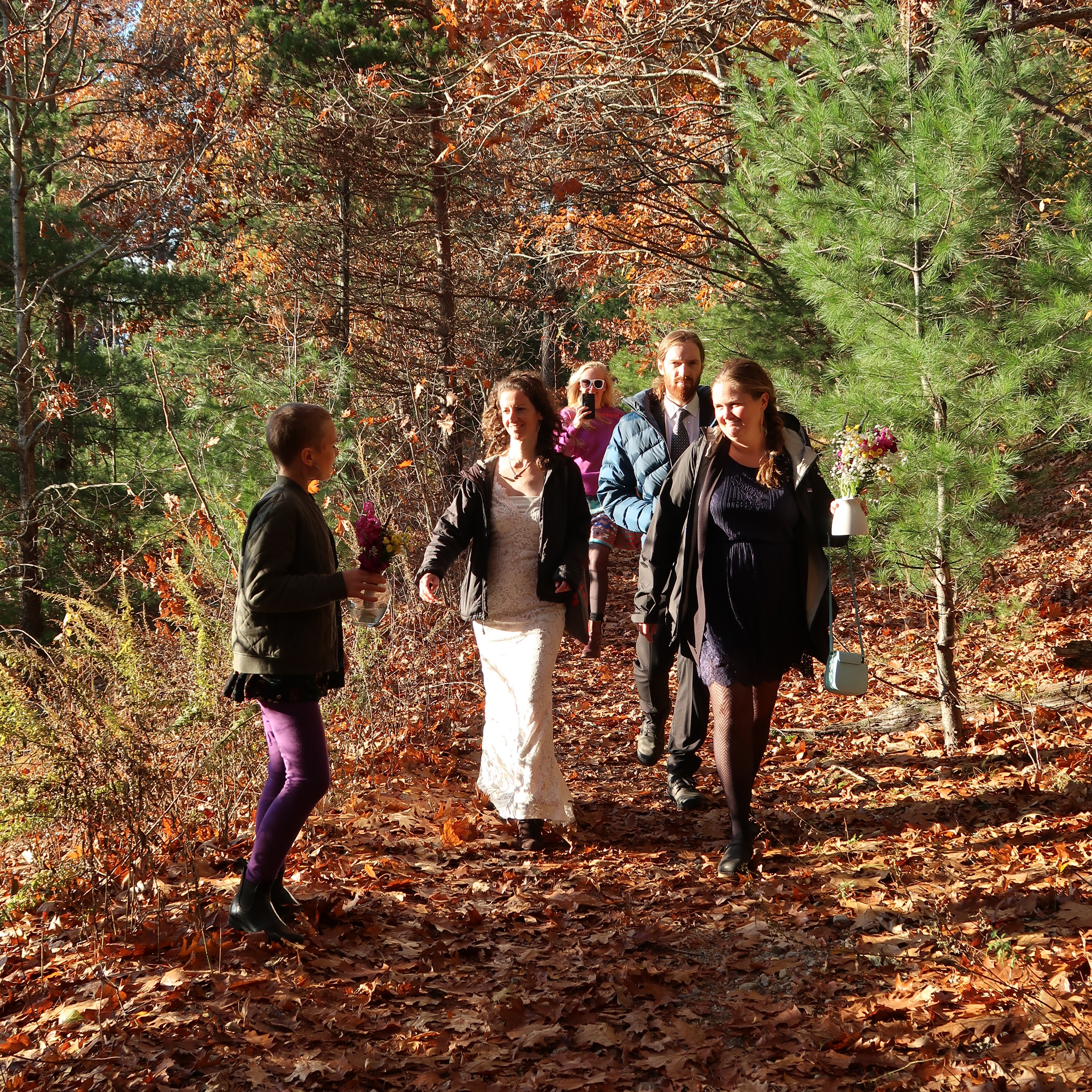 On the way to the chapel: Maggy, Emily, Steph, Daniel, Morgan.