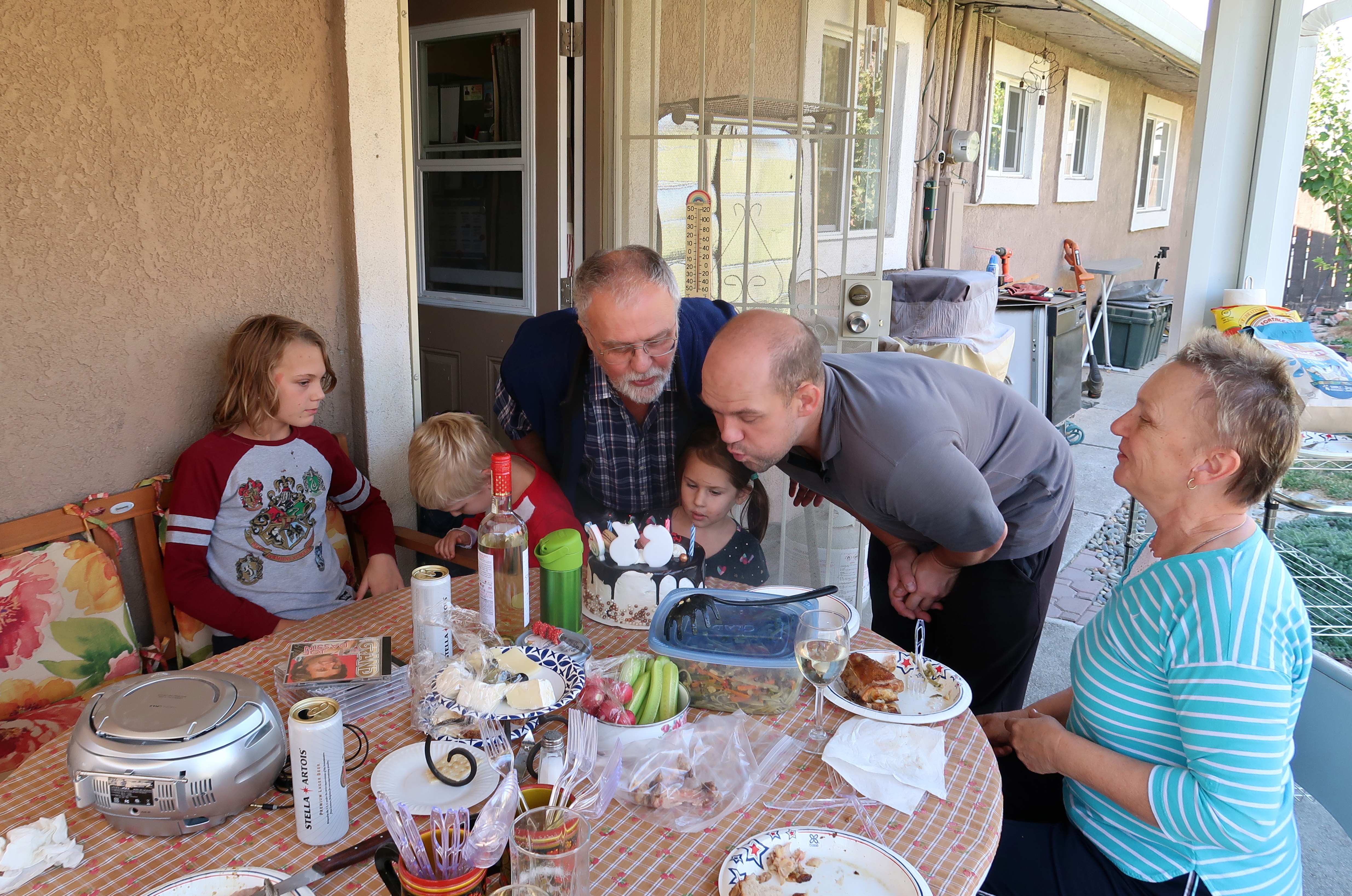 Maggy, Leo, Grisha, Phoebe, Seva, and Olga celebrating Grisha's and Seva's birthdays. 2021-10-09