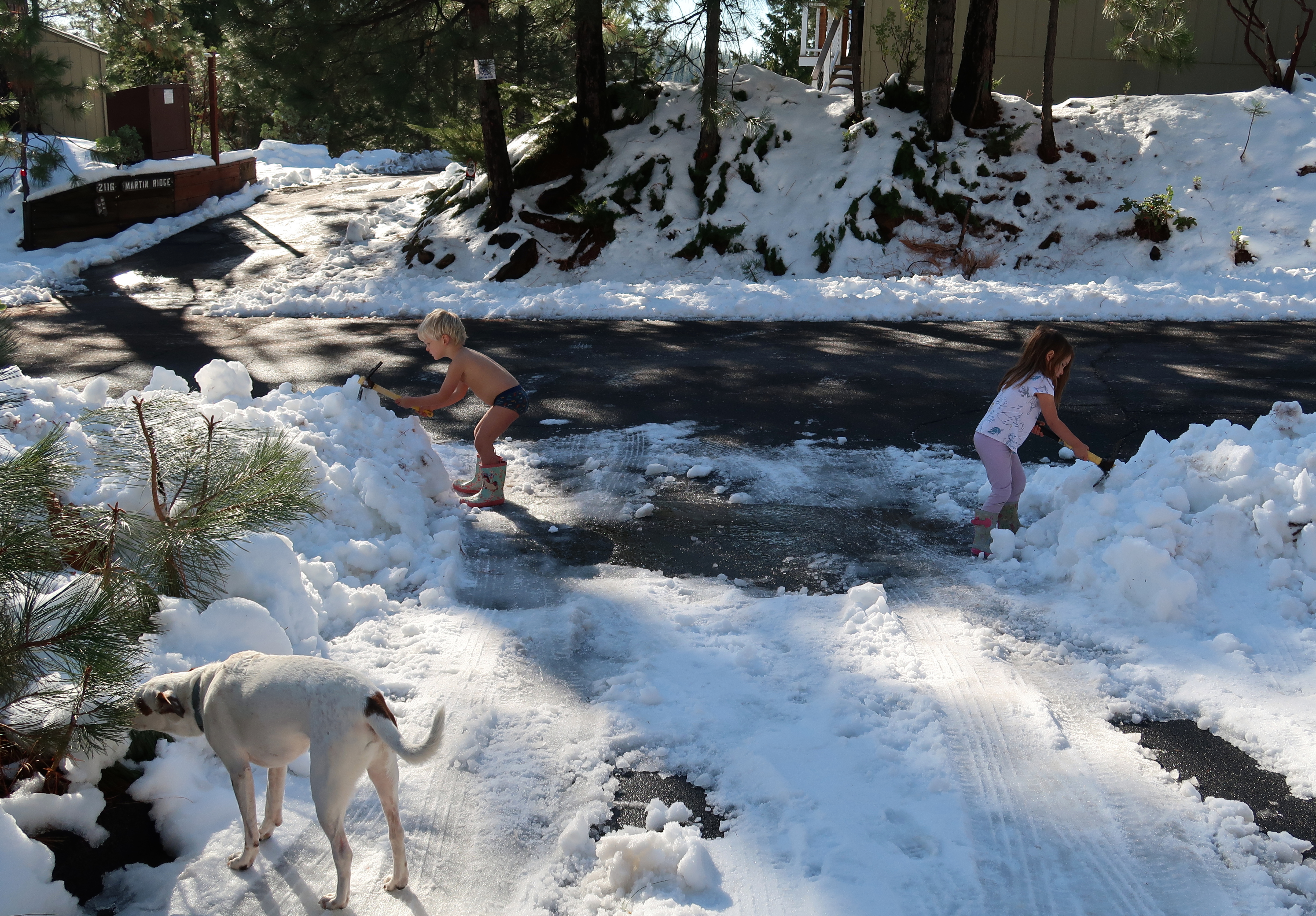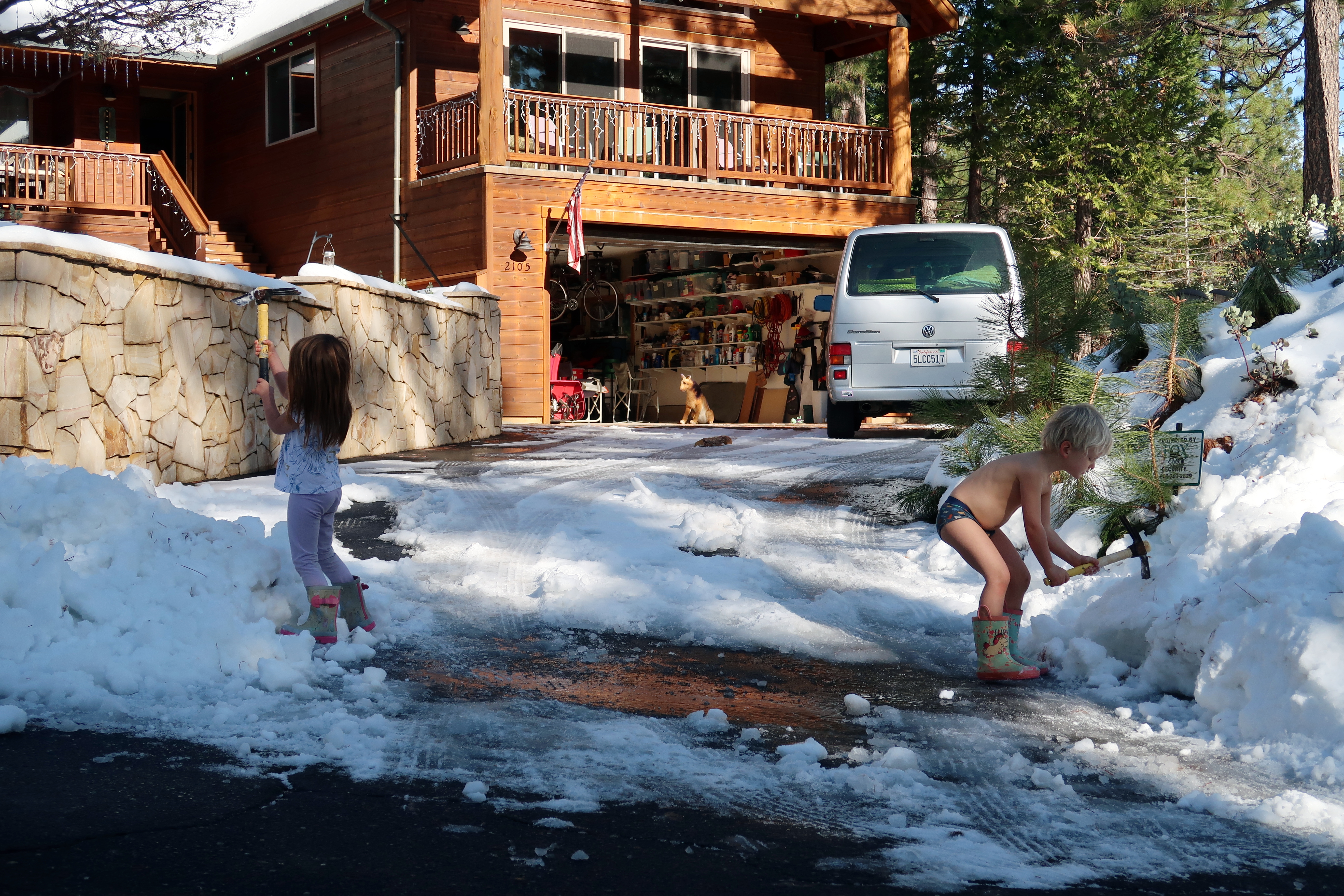 Phoebe and Leo clearing out the ice from the driveway. Фиби и Лёва расчищают проезд. 2021-12-18