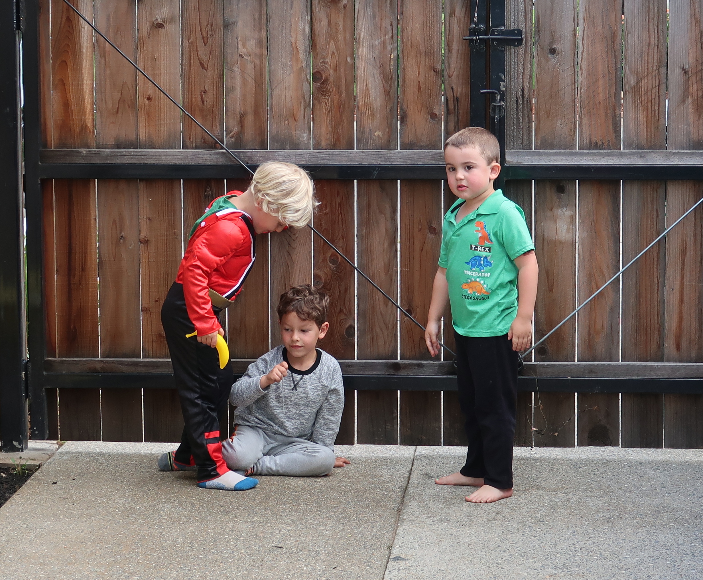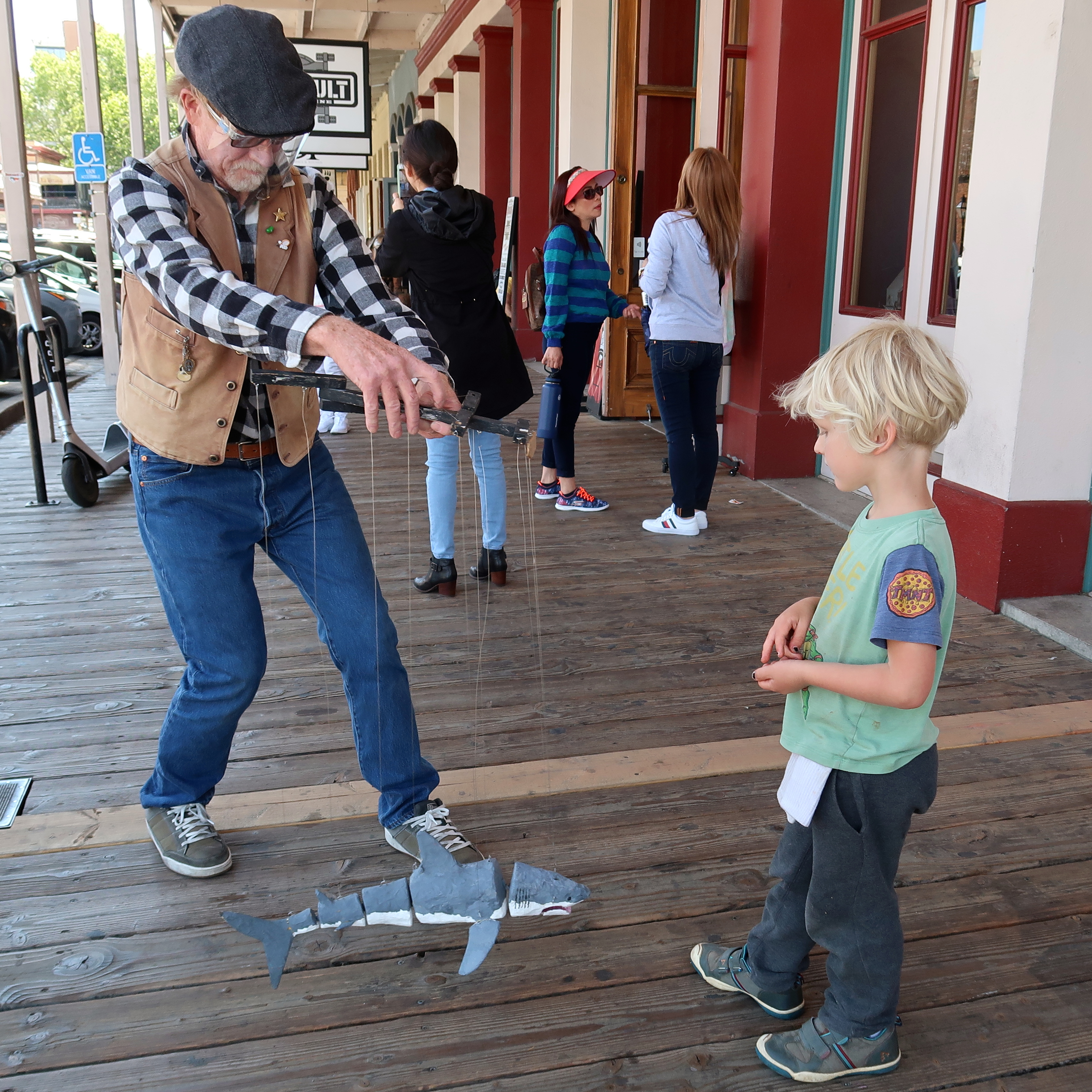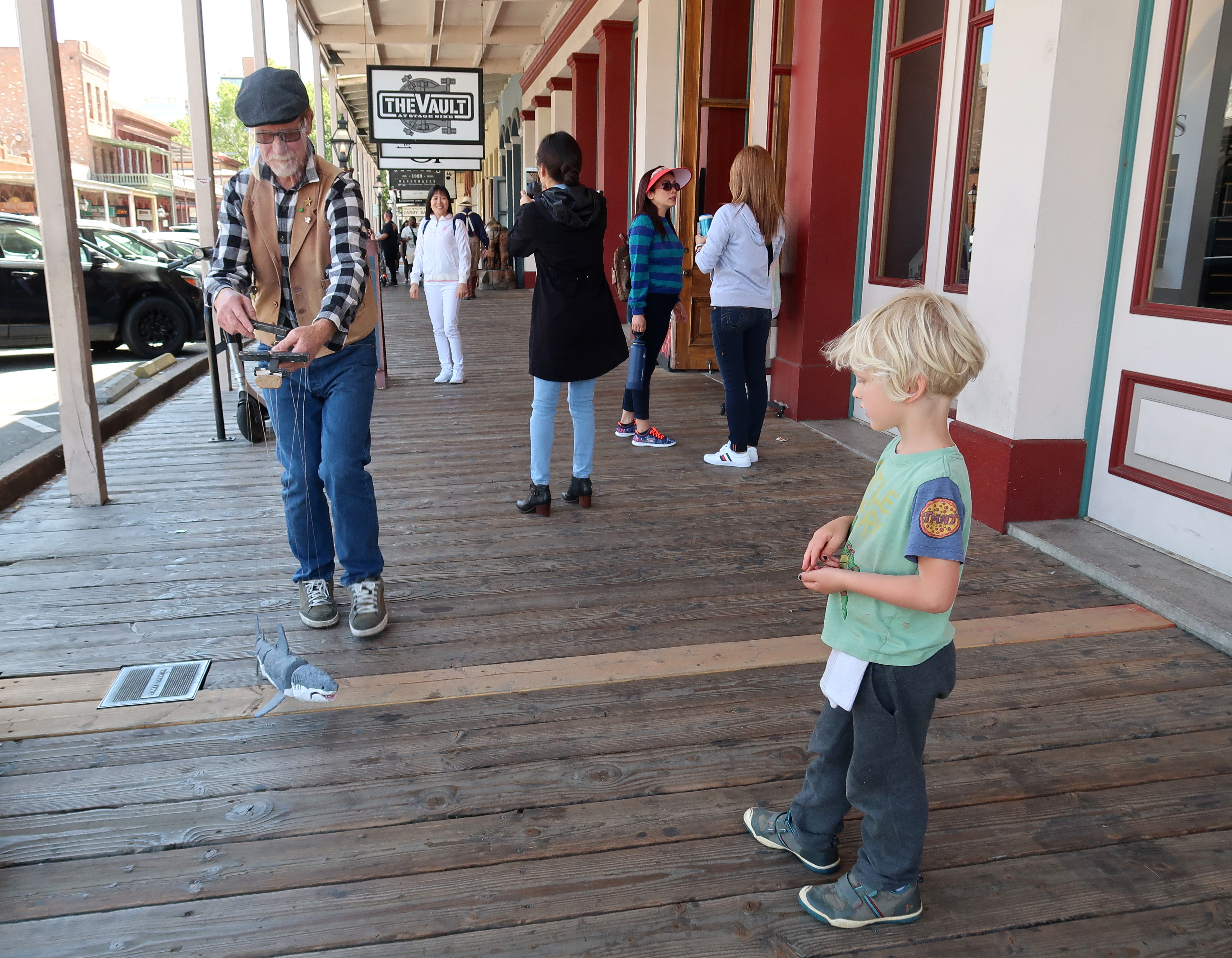 Shark and Leo, Old Town boardwalk. 2022-04-30