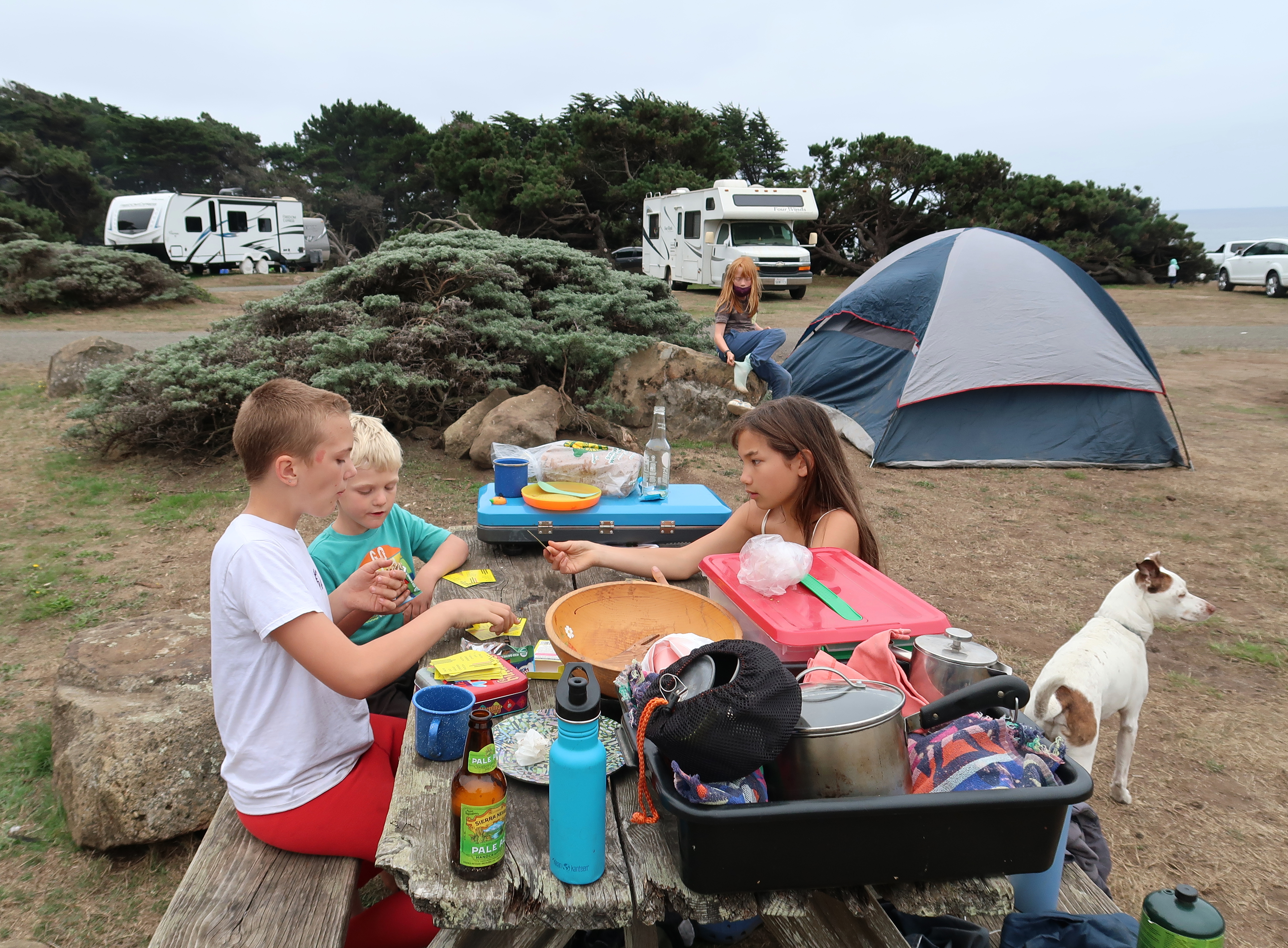 Morgan and kids and other campers at a lookout point. 2022-10-02