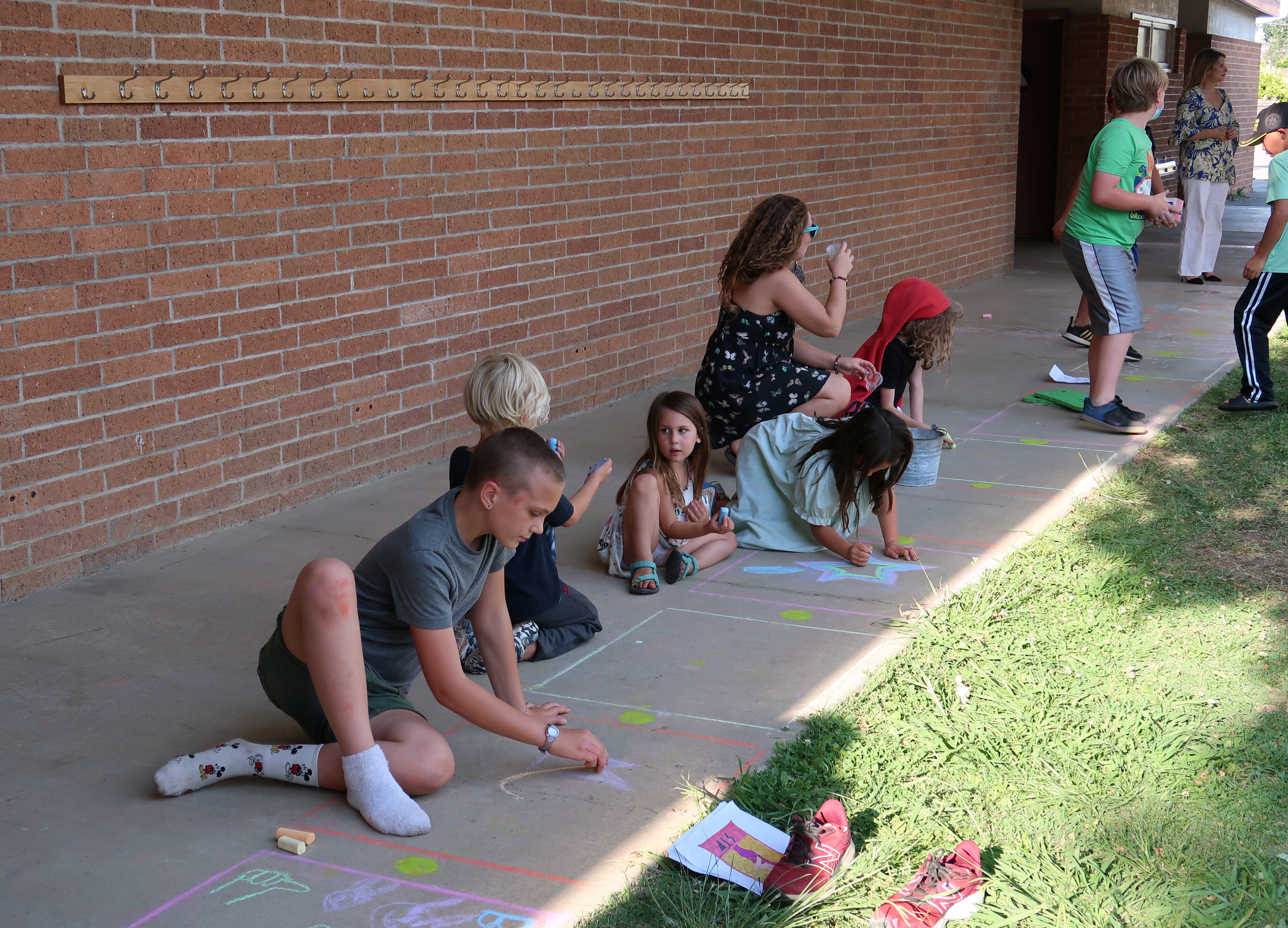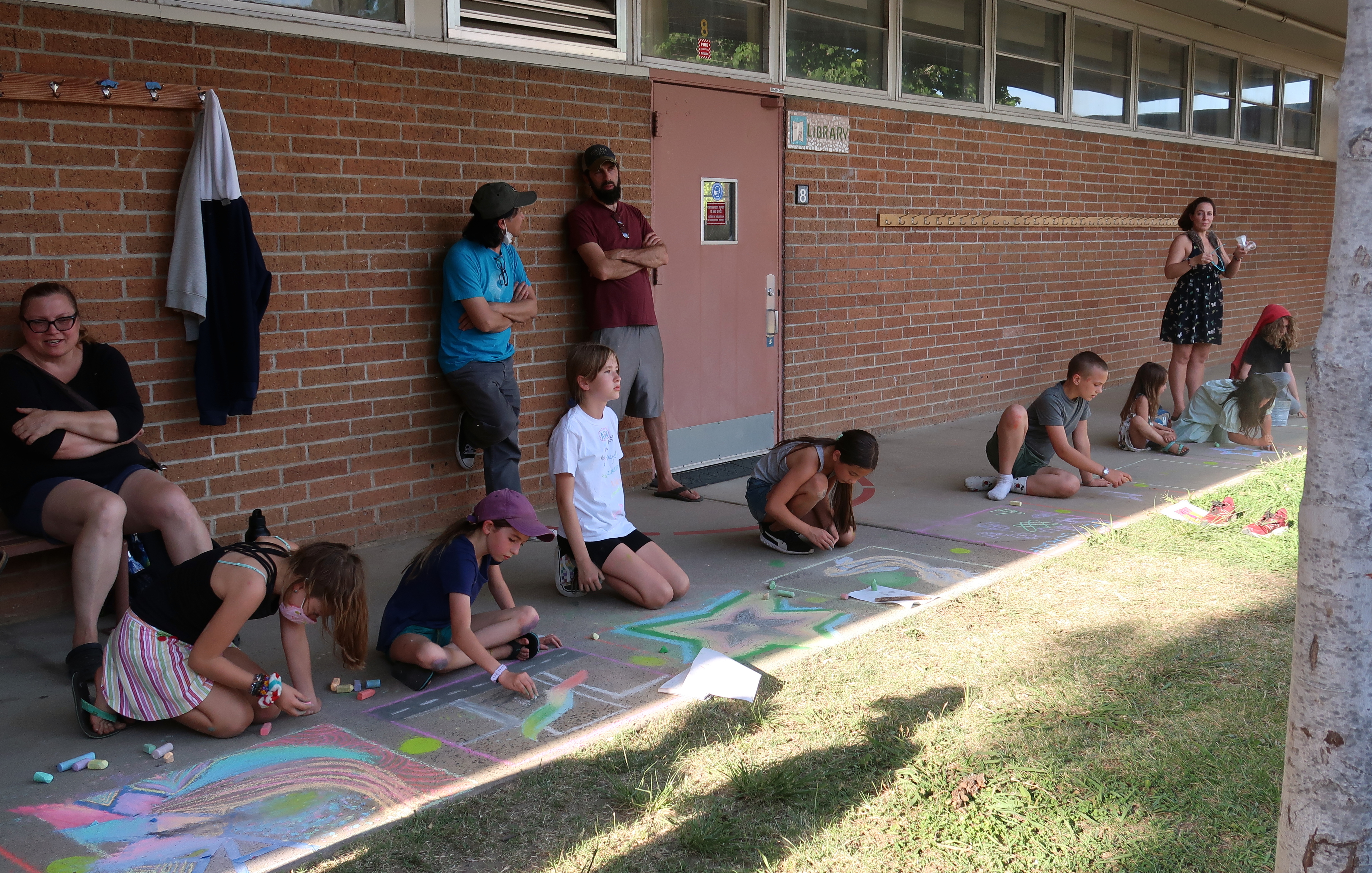 Maggy, Enza, and others at the chalk festival at Alice Birney. 2022-05-25