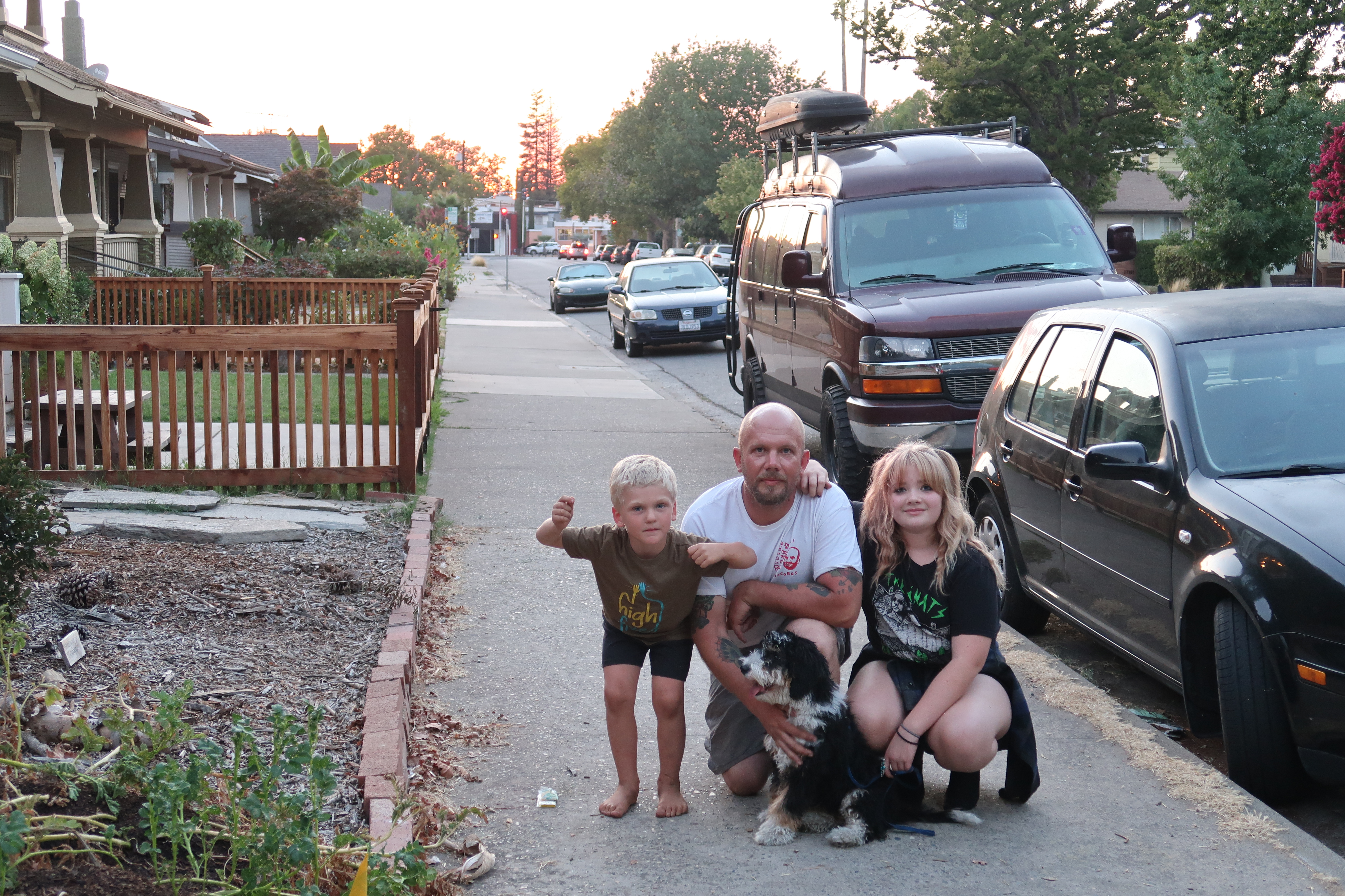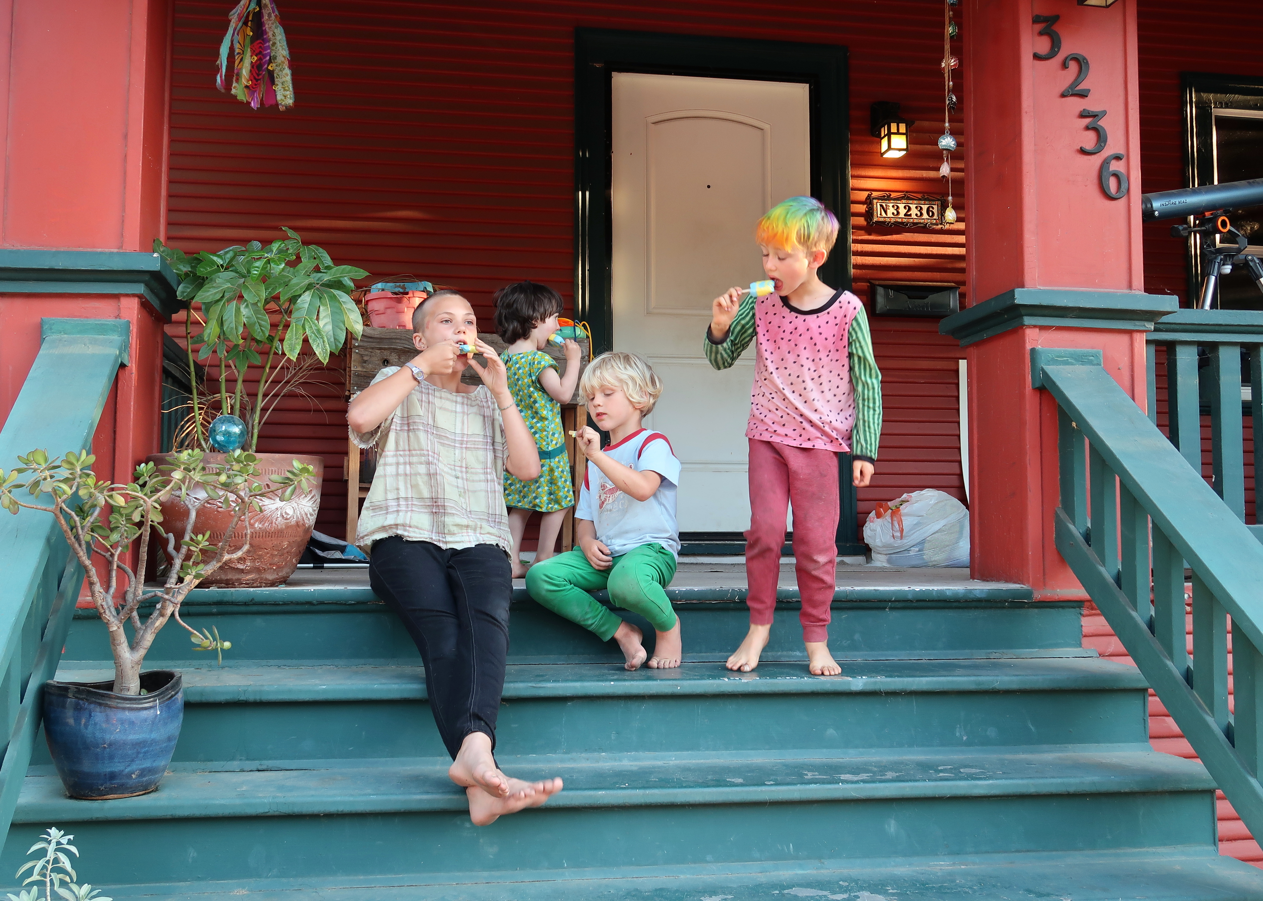 Enza, Maggy, and Leo at the chalk festival. 2022-05-25