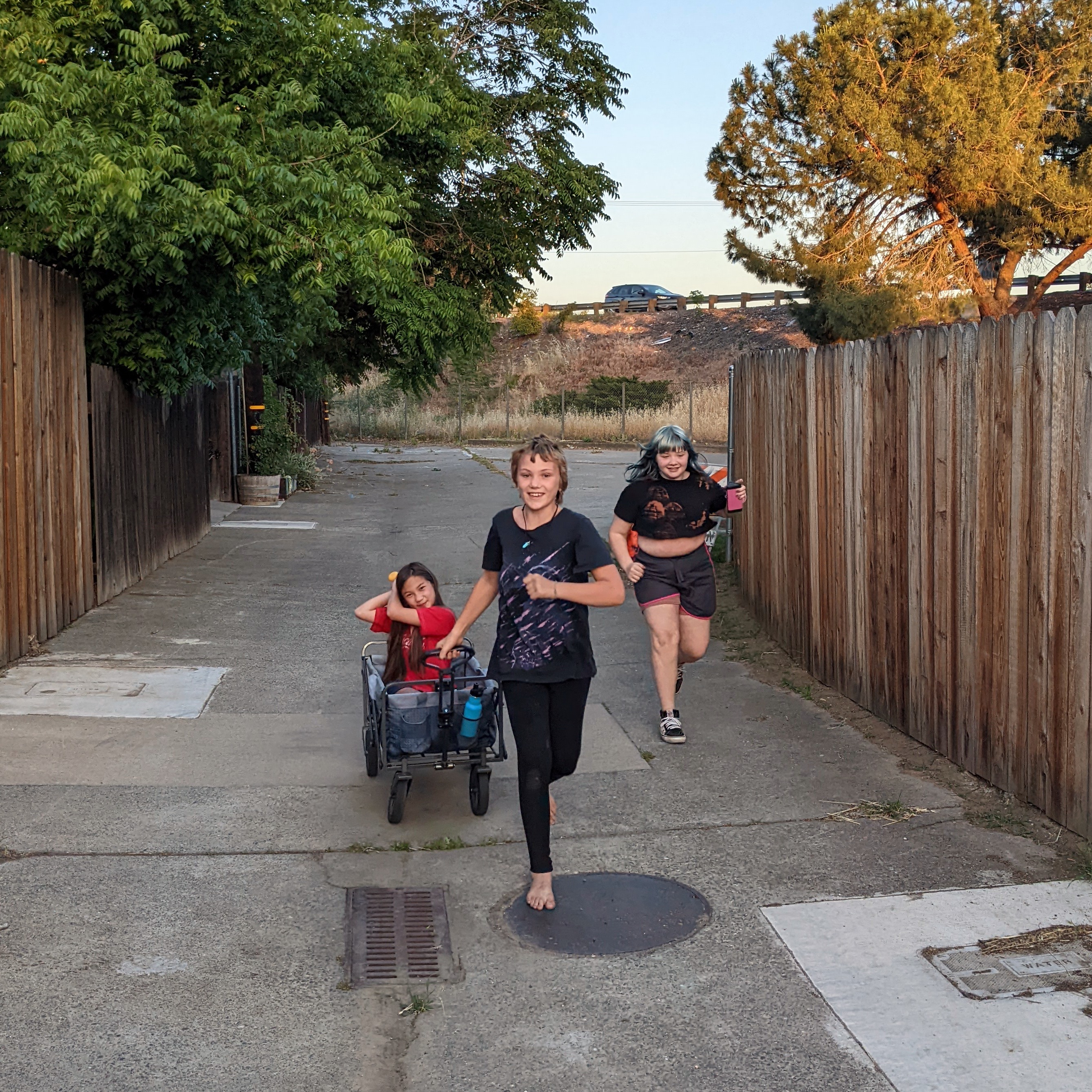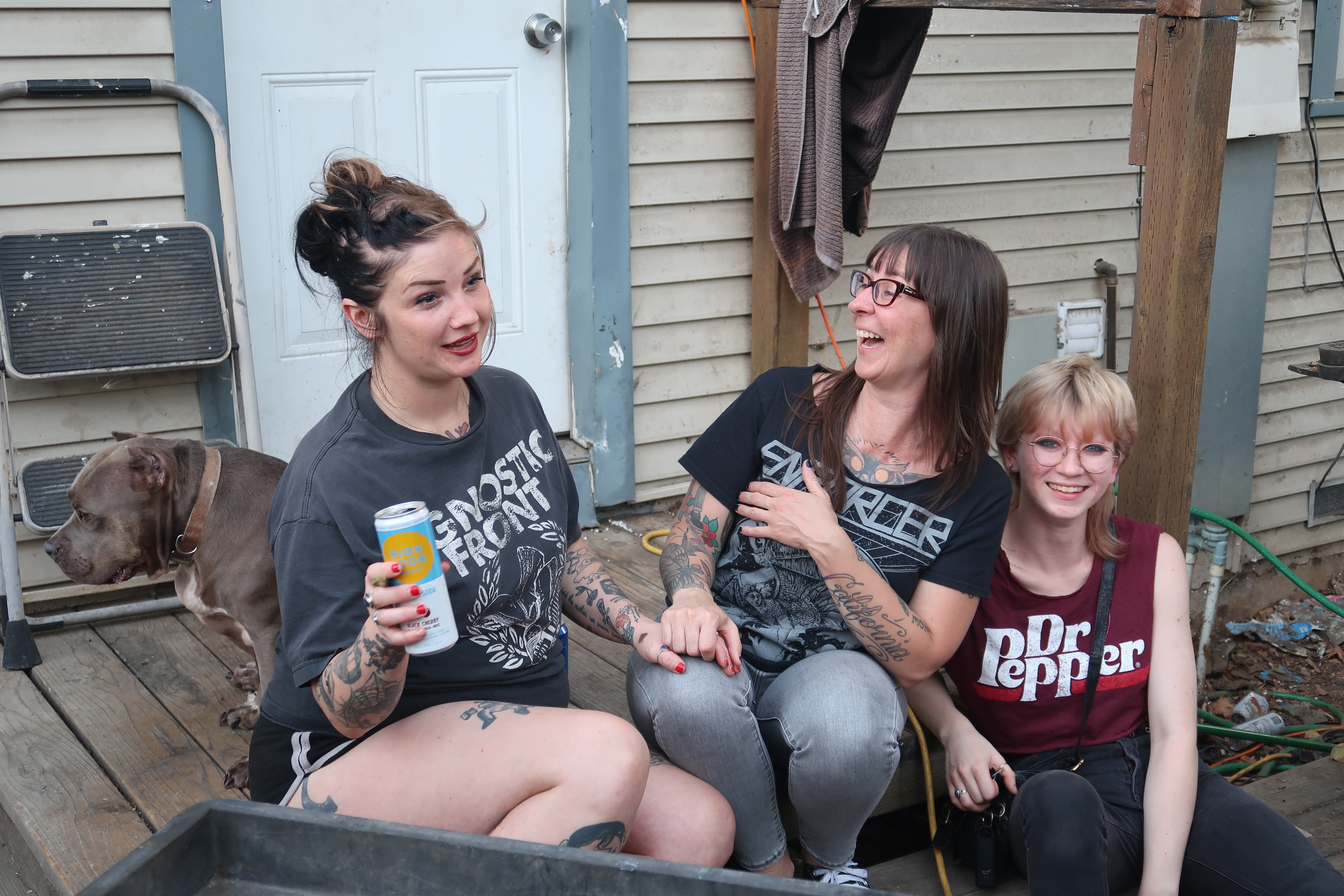 Enza, Maggy, and BMO in the back alley. 2022-04-30