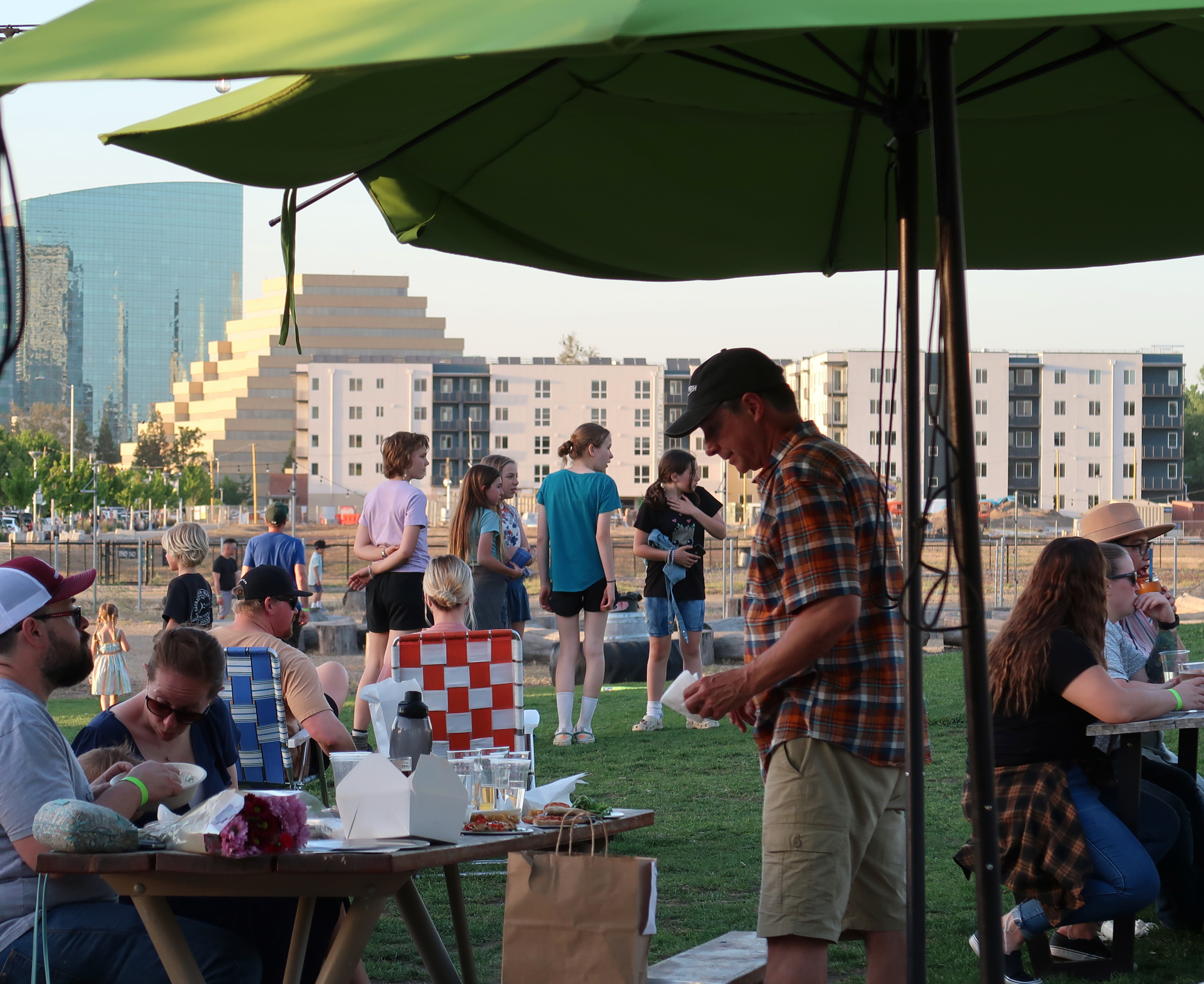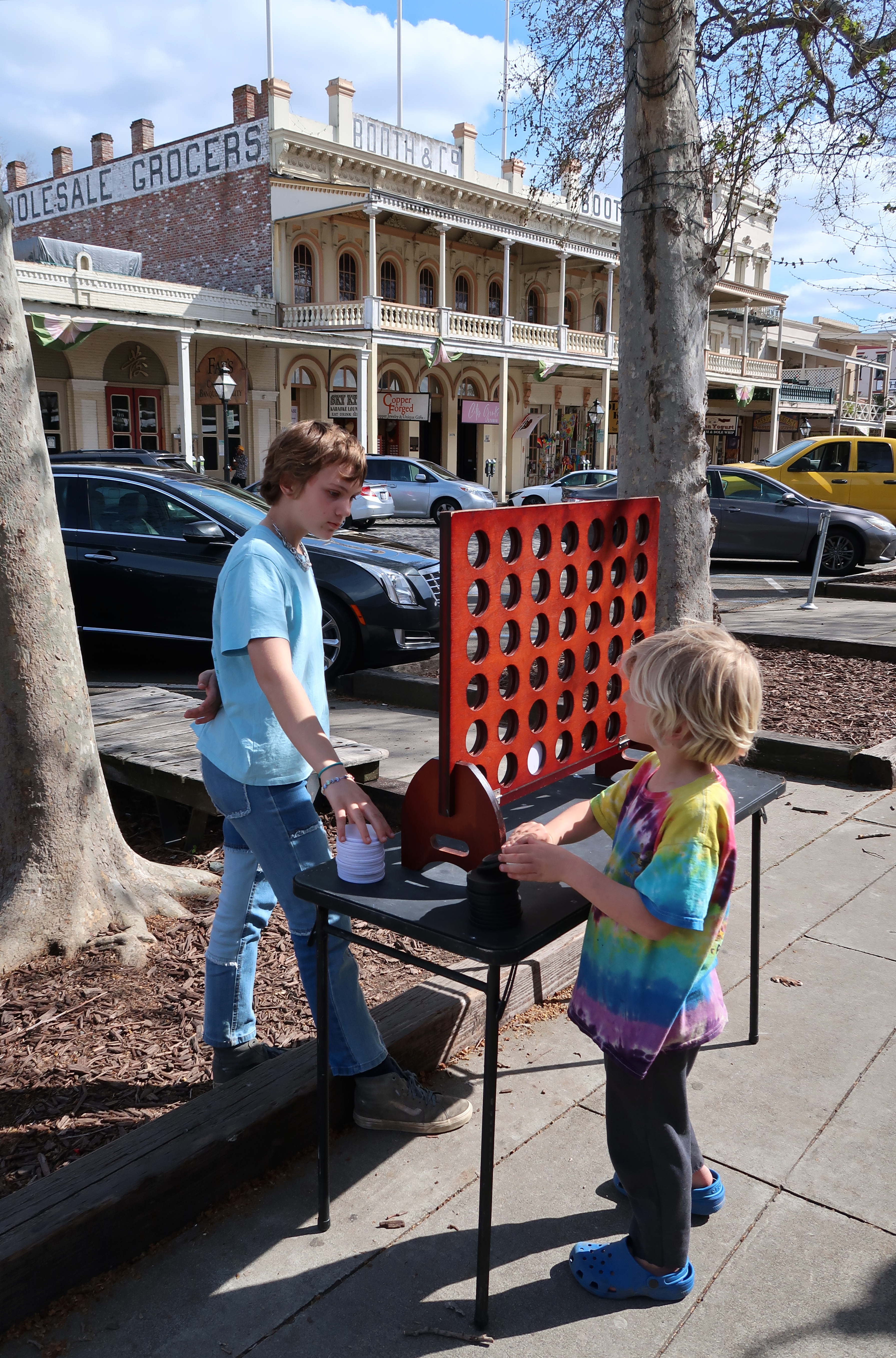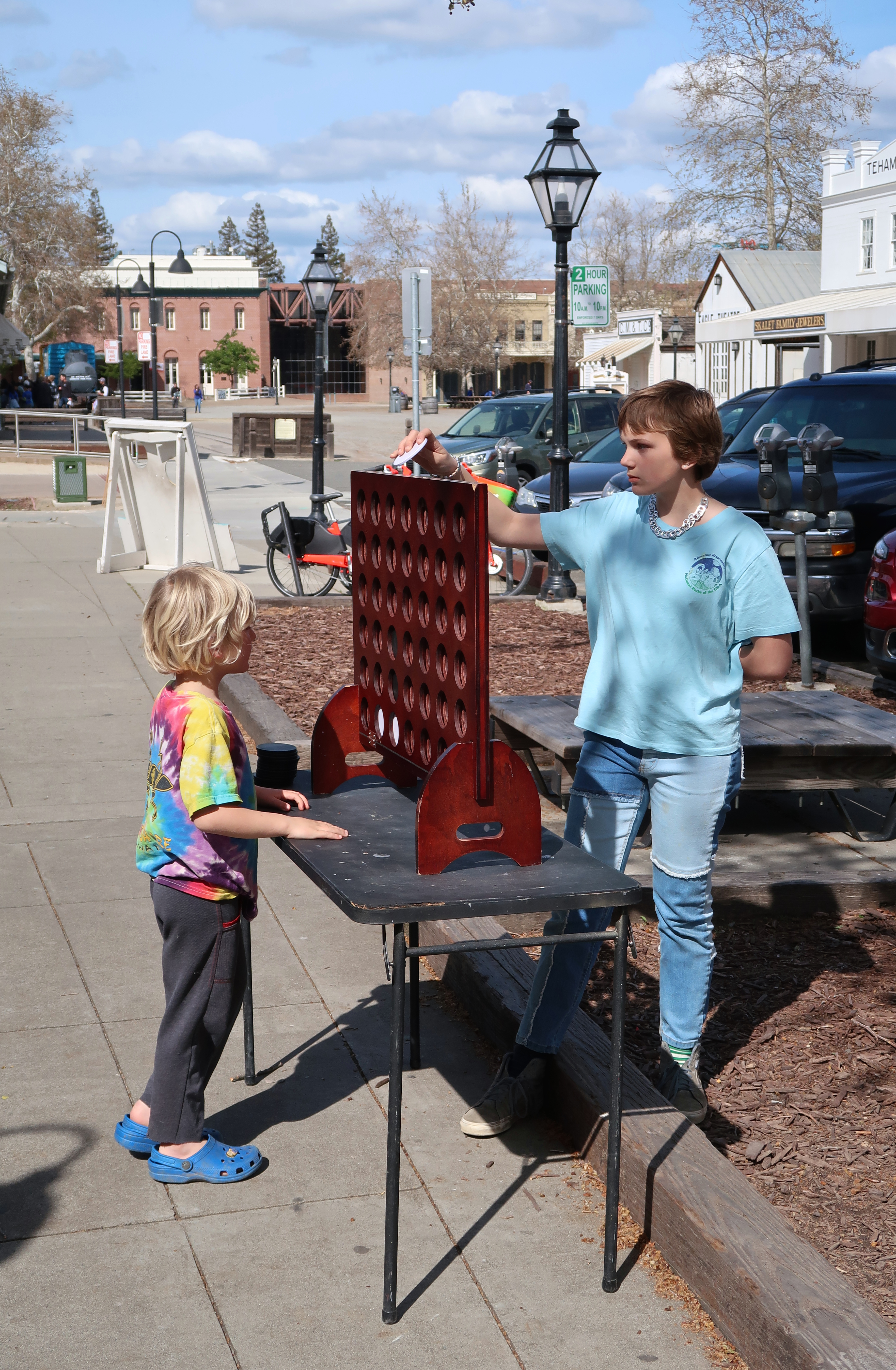 Leo playing chess at the Old Sac mall. 2023-03-31