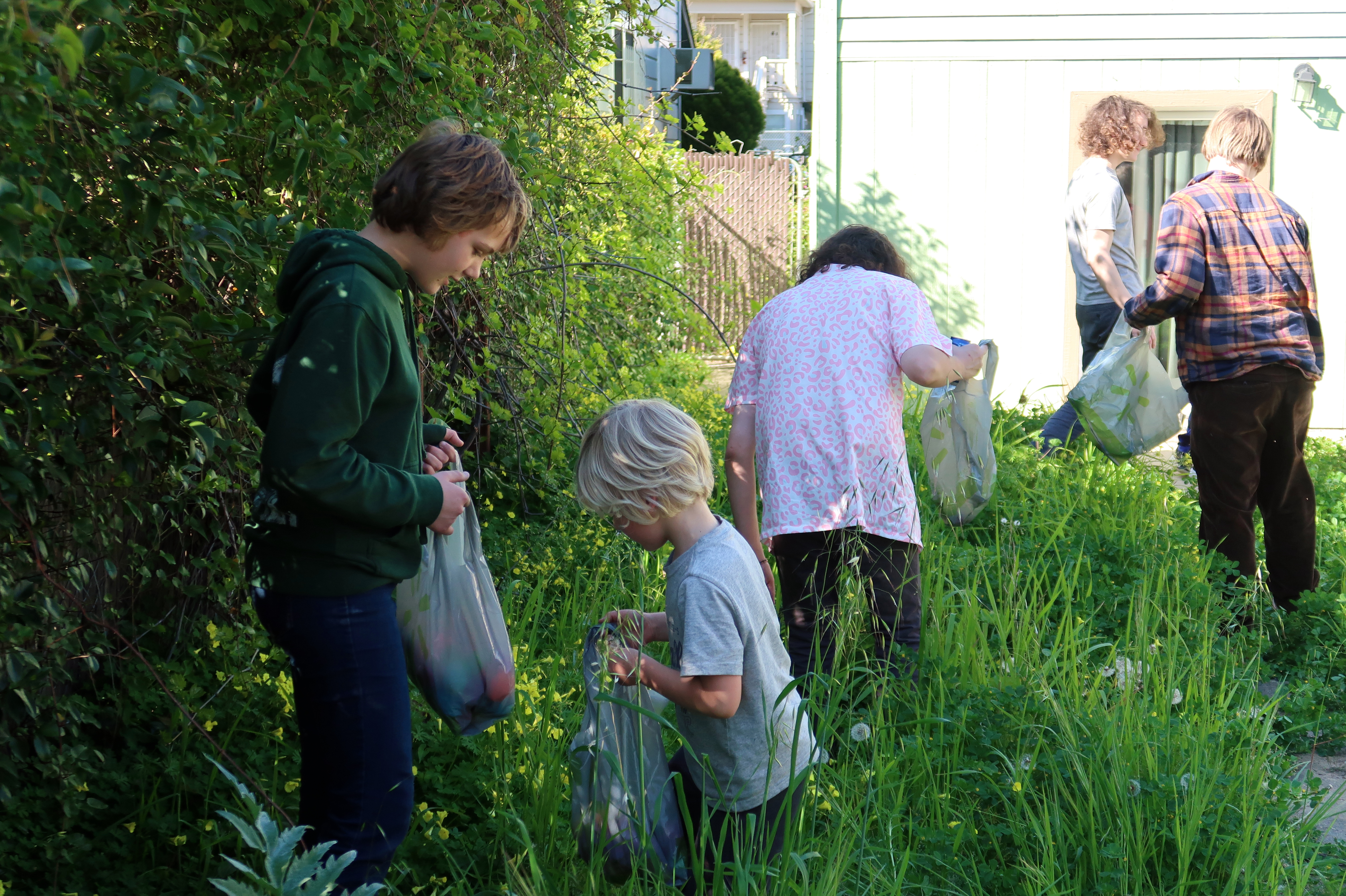 Leo, Maggie, Lila, and Emily crafting. 2023-04-07