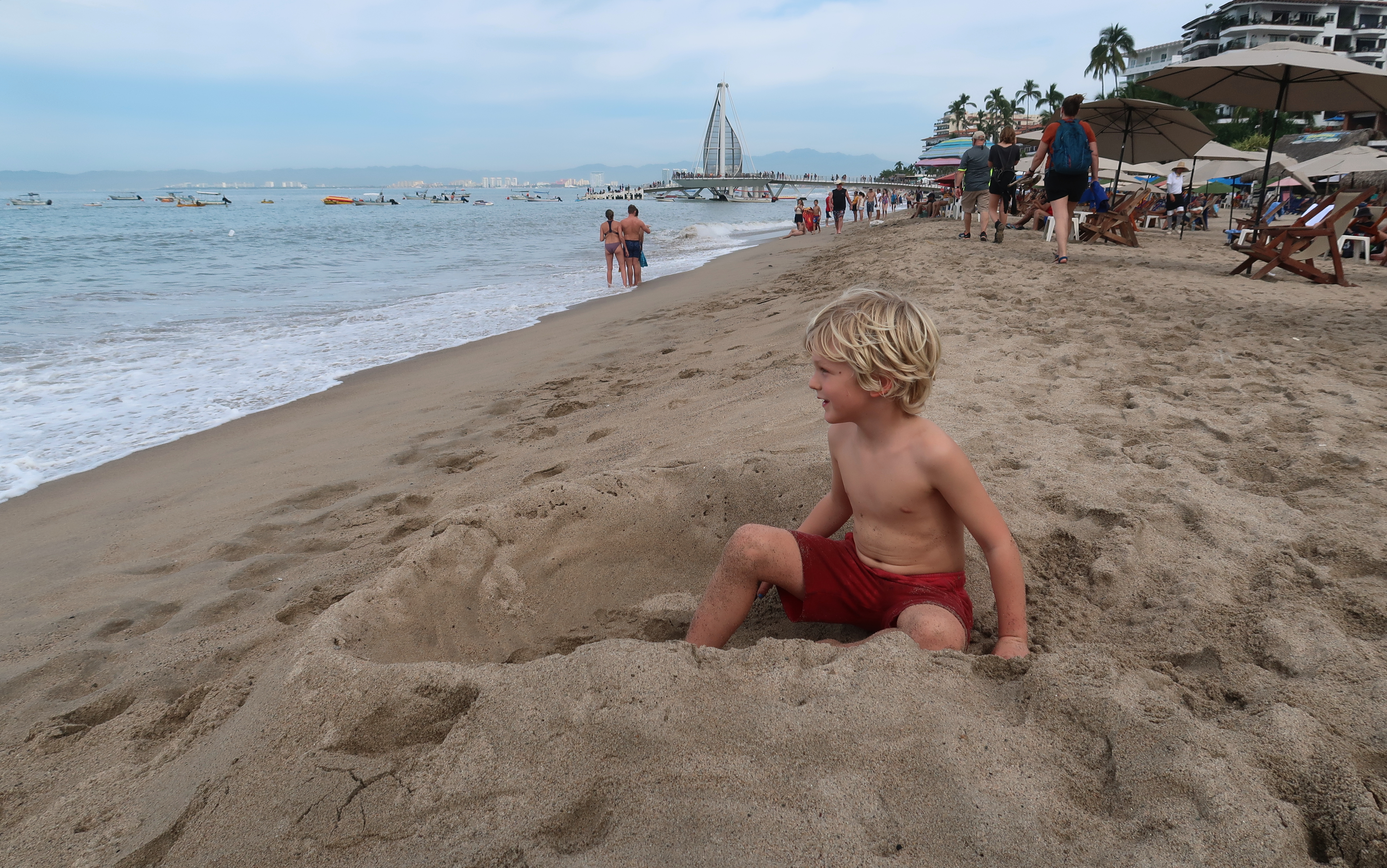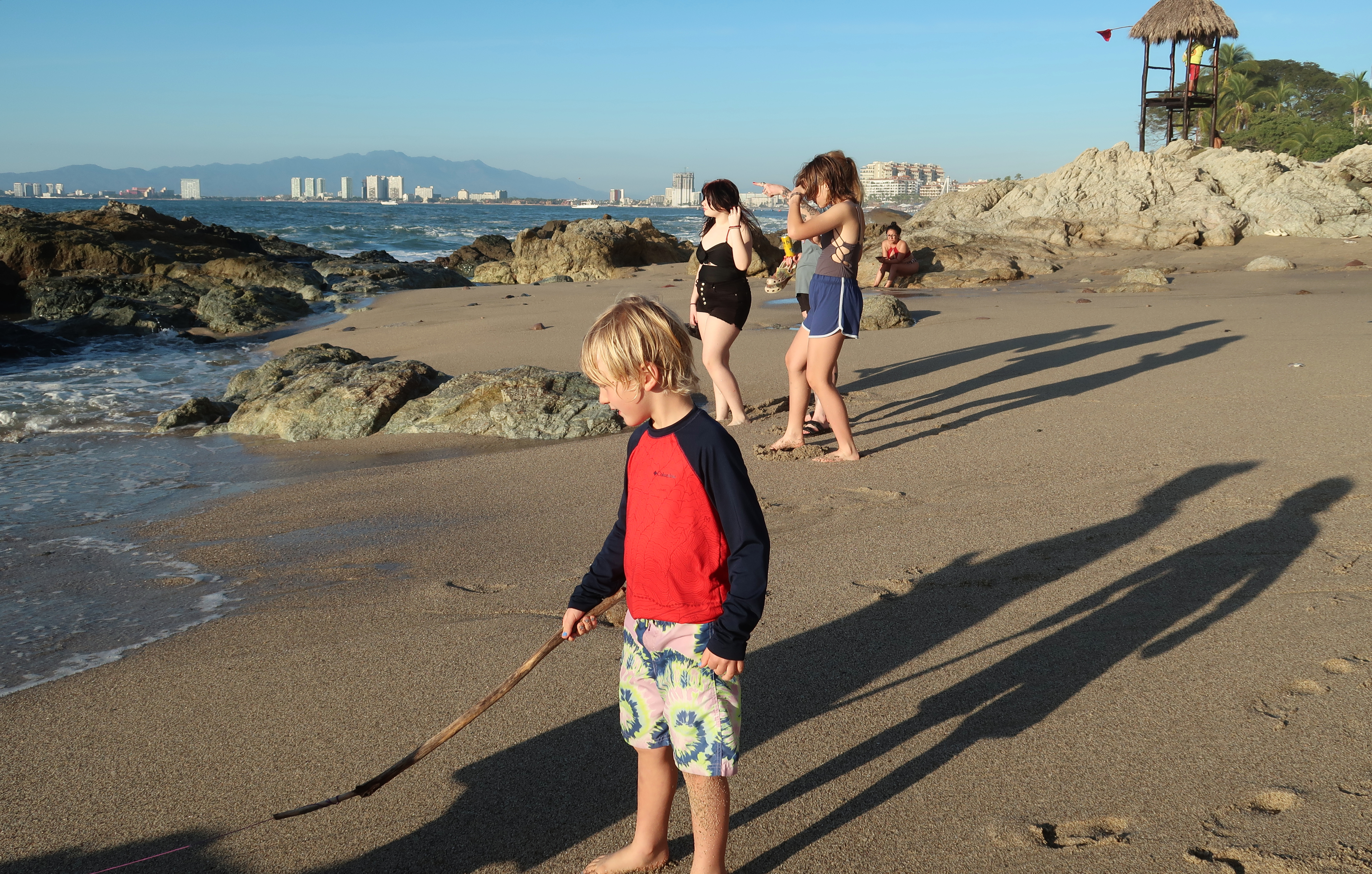 Leo, Cassie, and Maggie at Playa Conchas Chinas. 2023-12-30