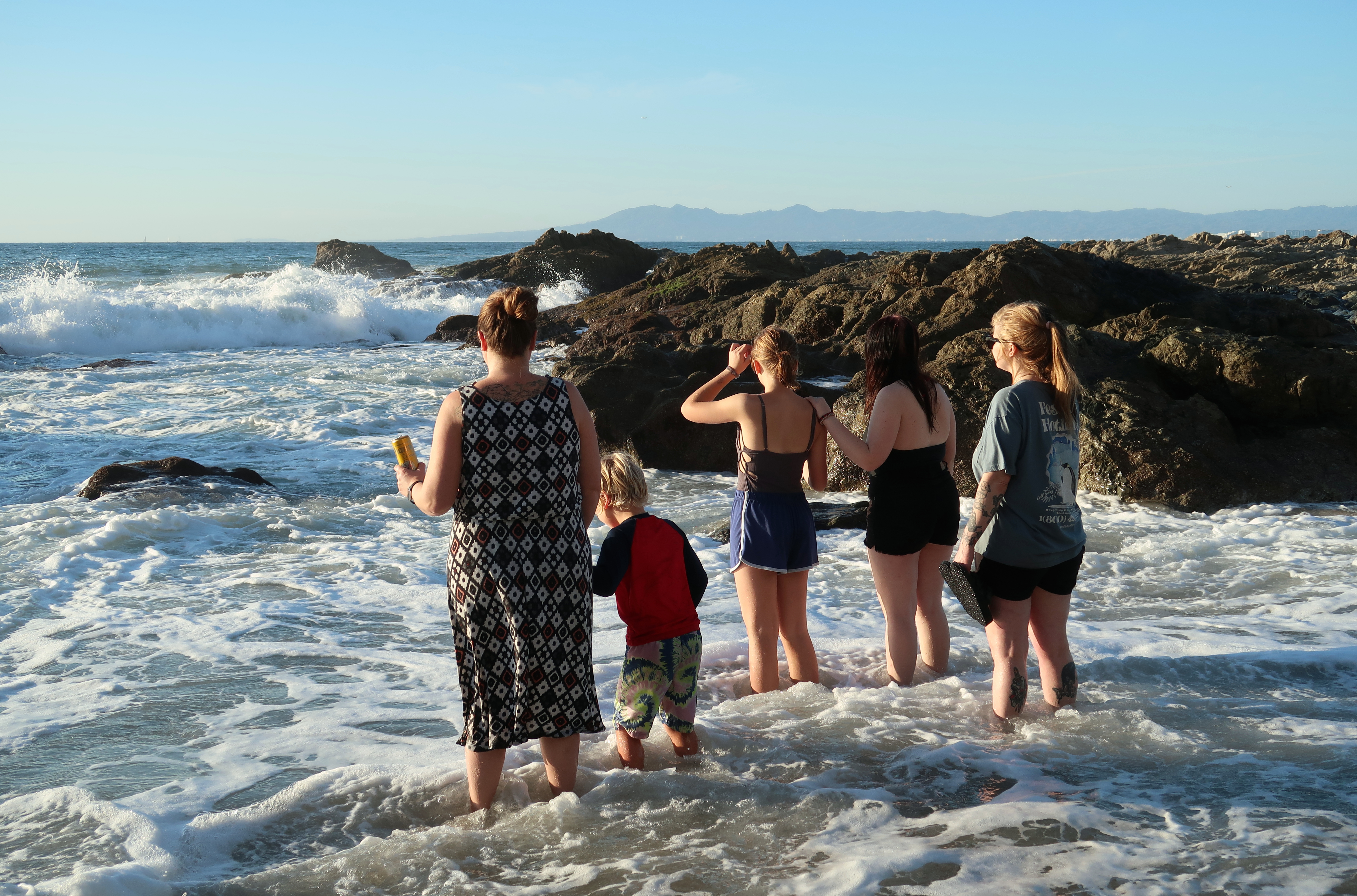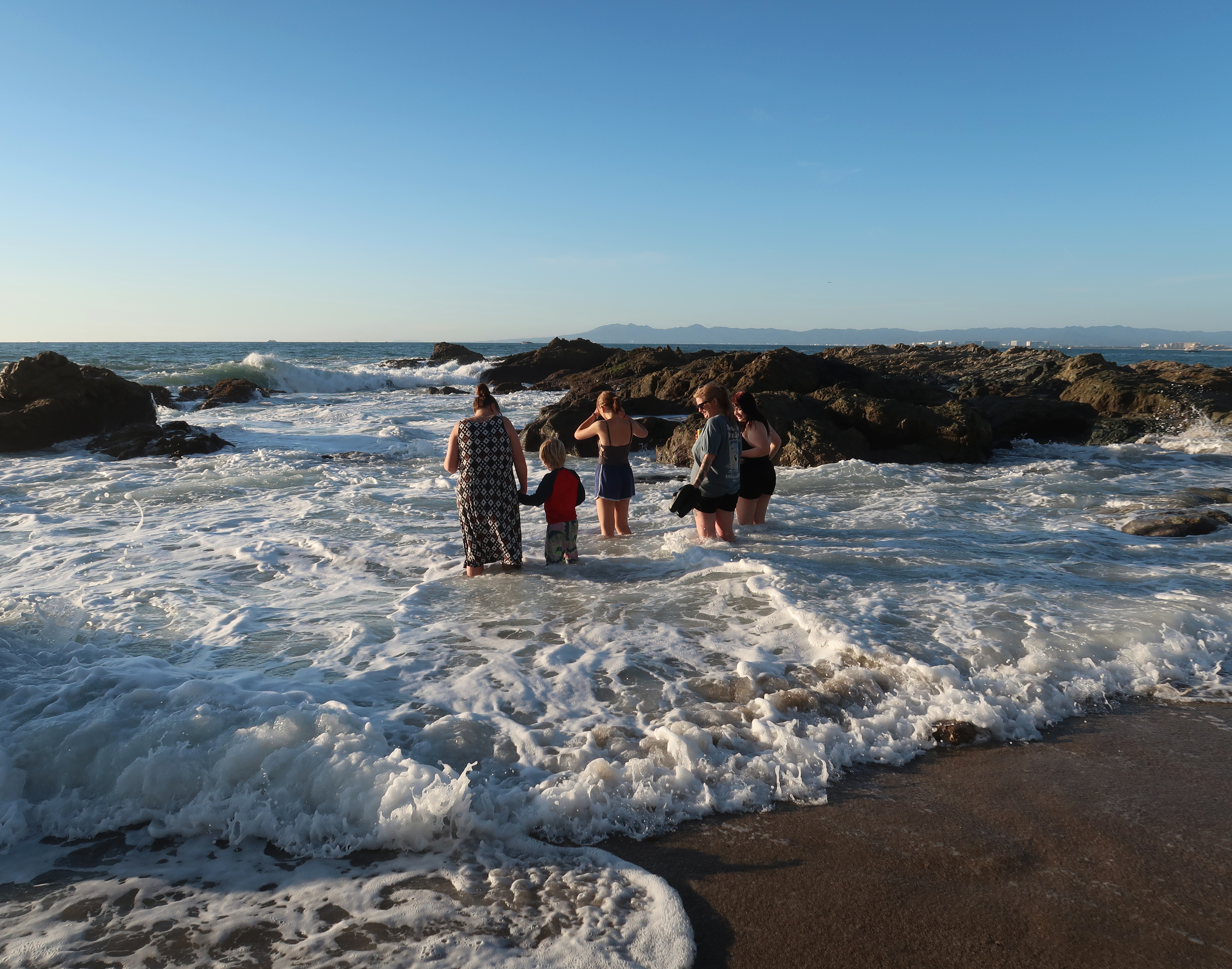 Ashton, Cassie, Maggie at Playa Conchas Chinas. 2023-12-30
