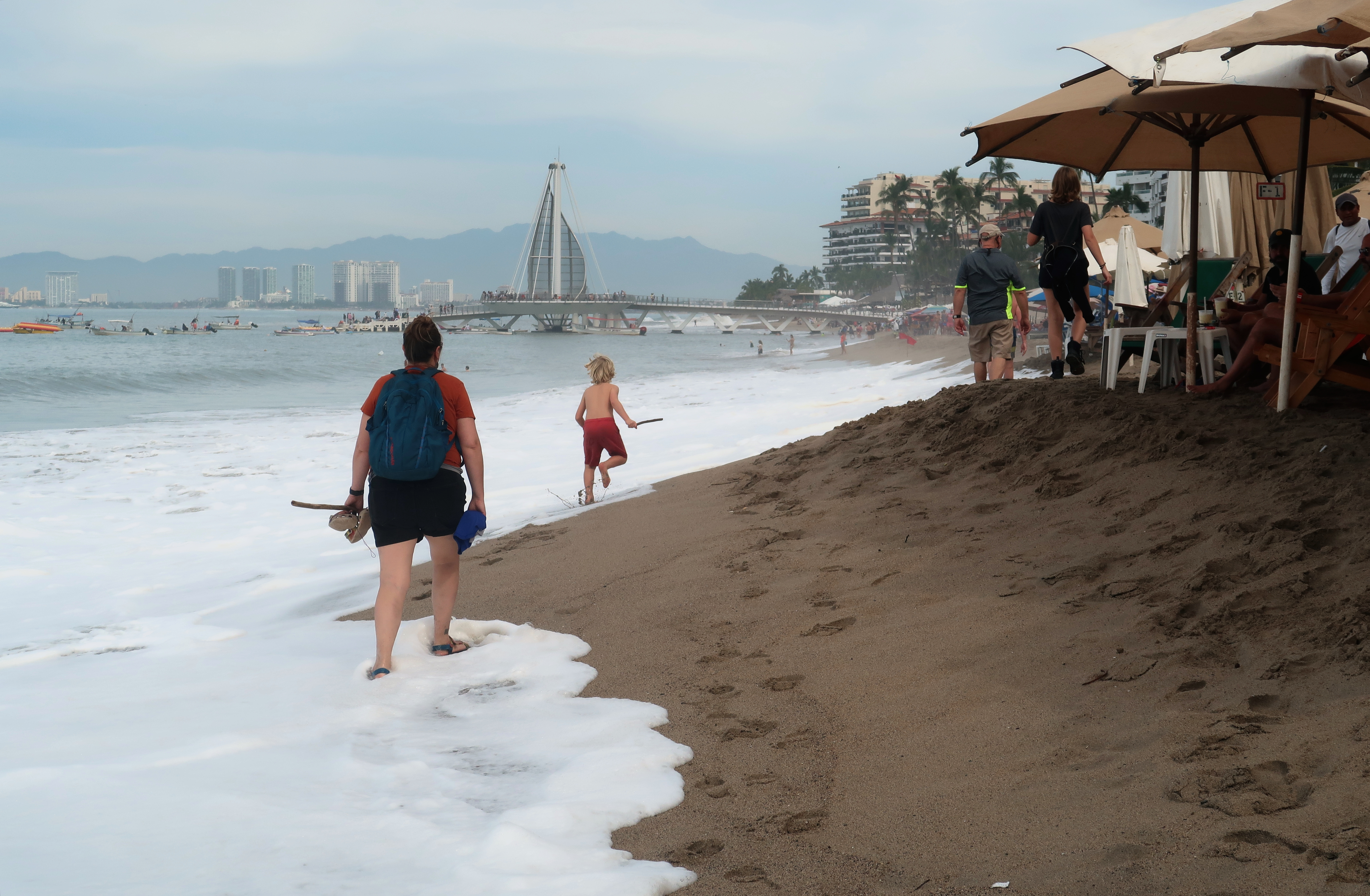 Morgan and Leo walking to the city along the beach. 2024-01-02