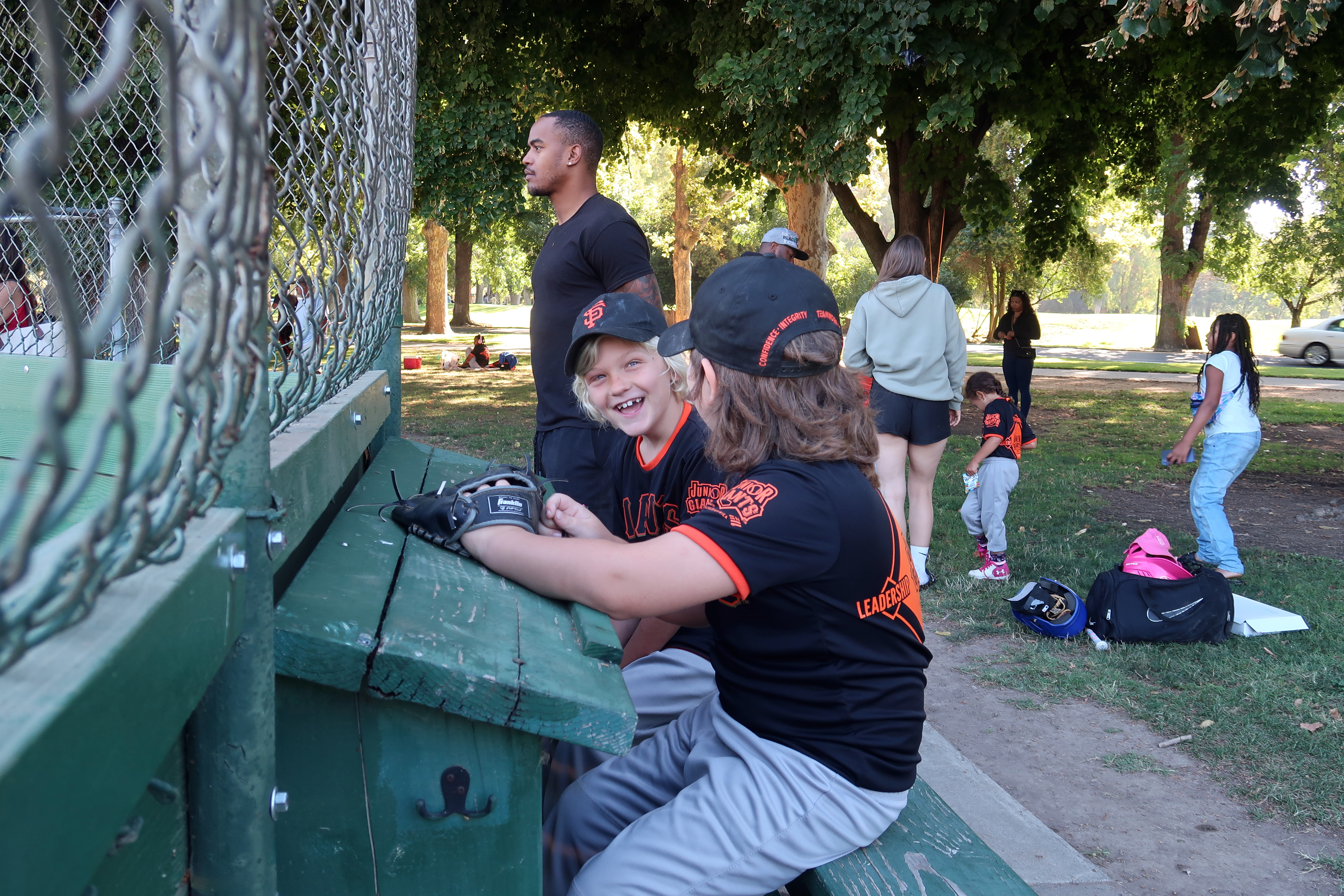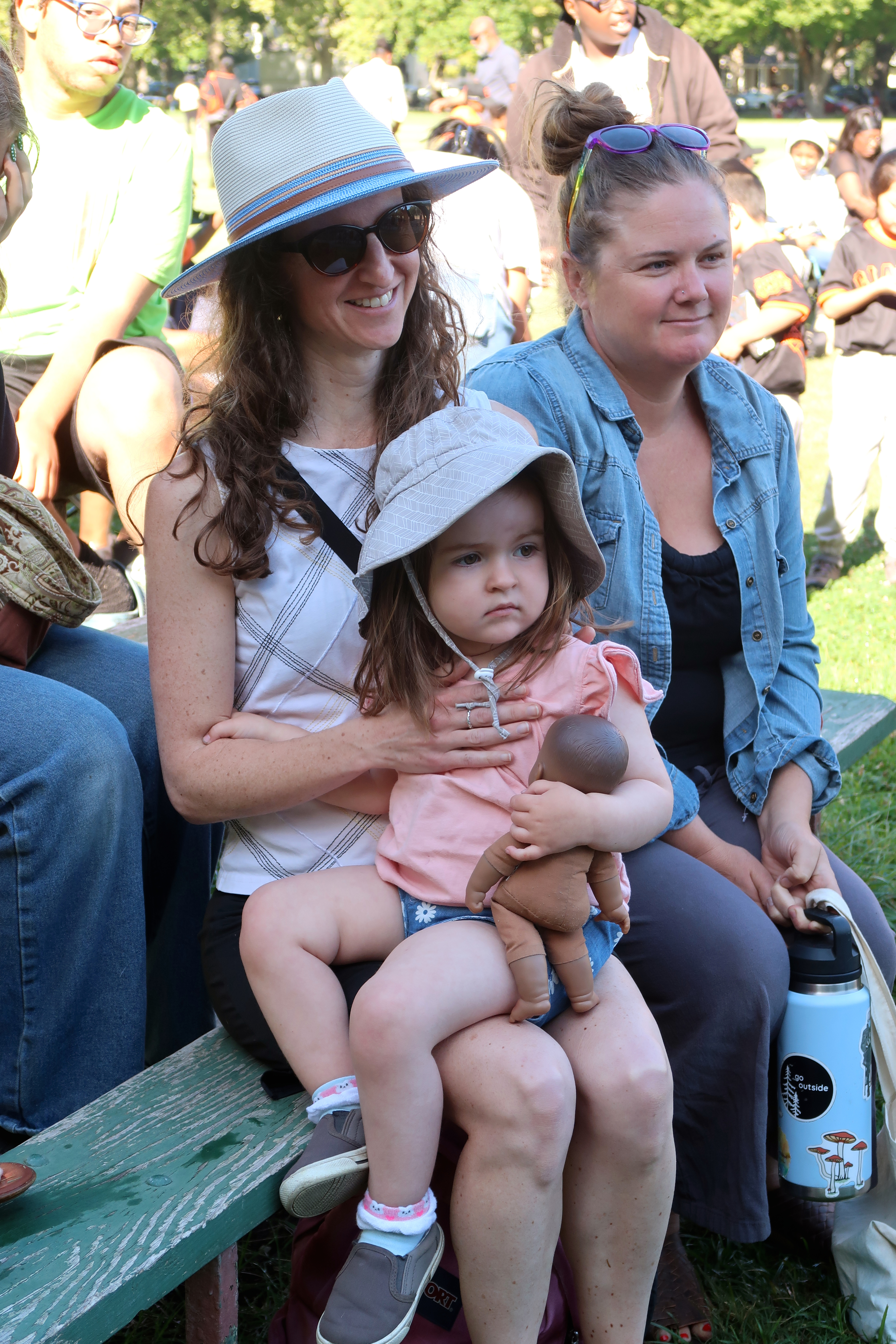 Emily, Lila, and Morgan watching Leo's baseball game. 2025-08-02