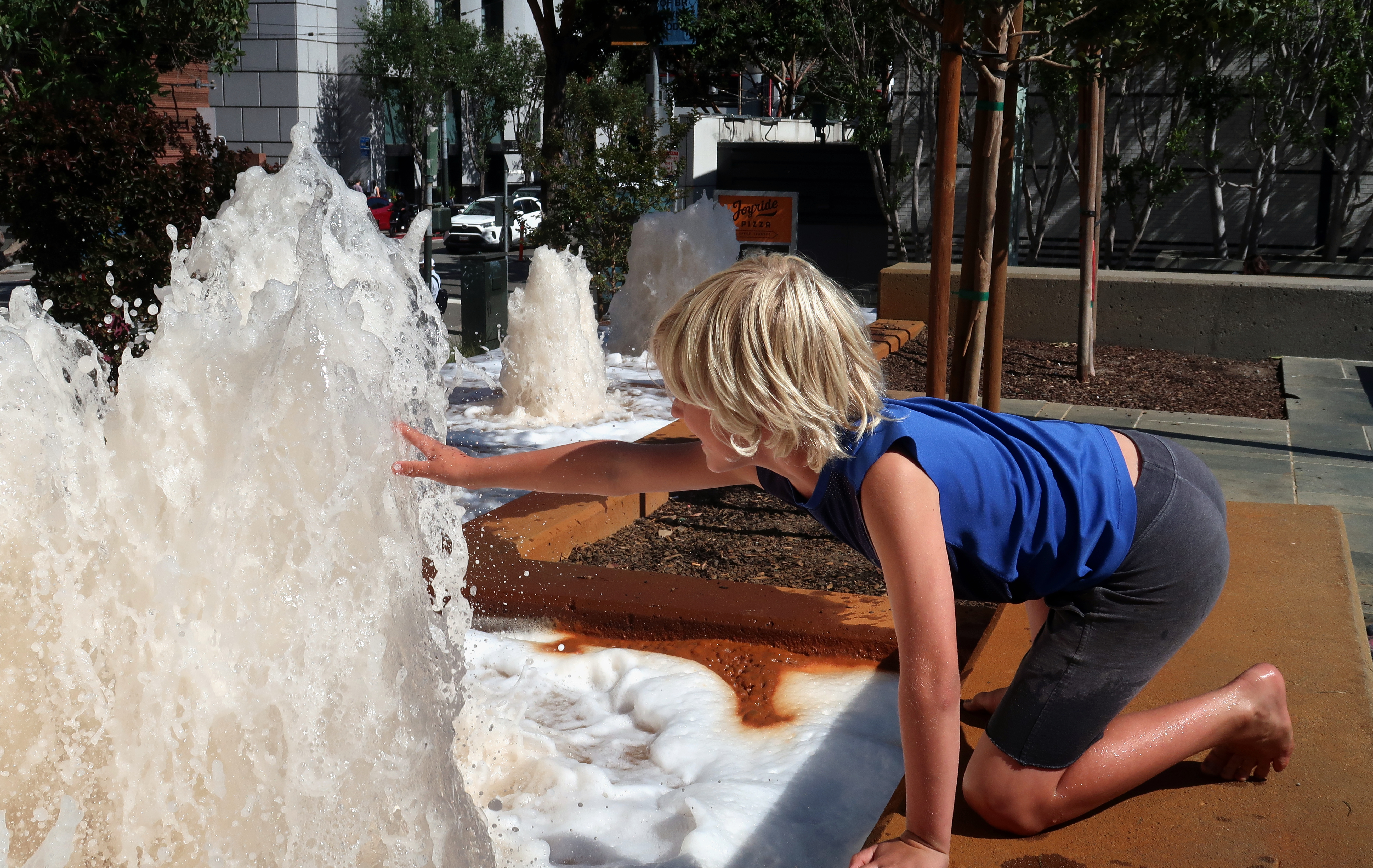 Leo playing in the square by SFMOMA. 2025-09-01