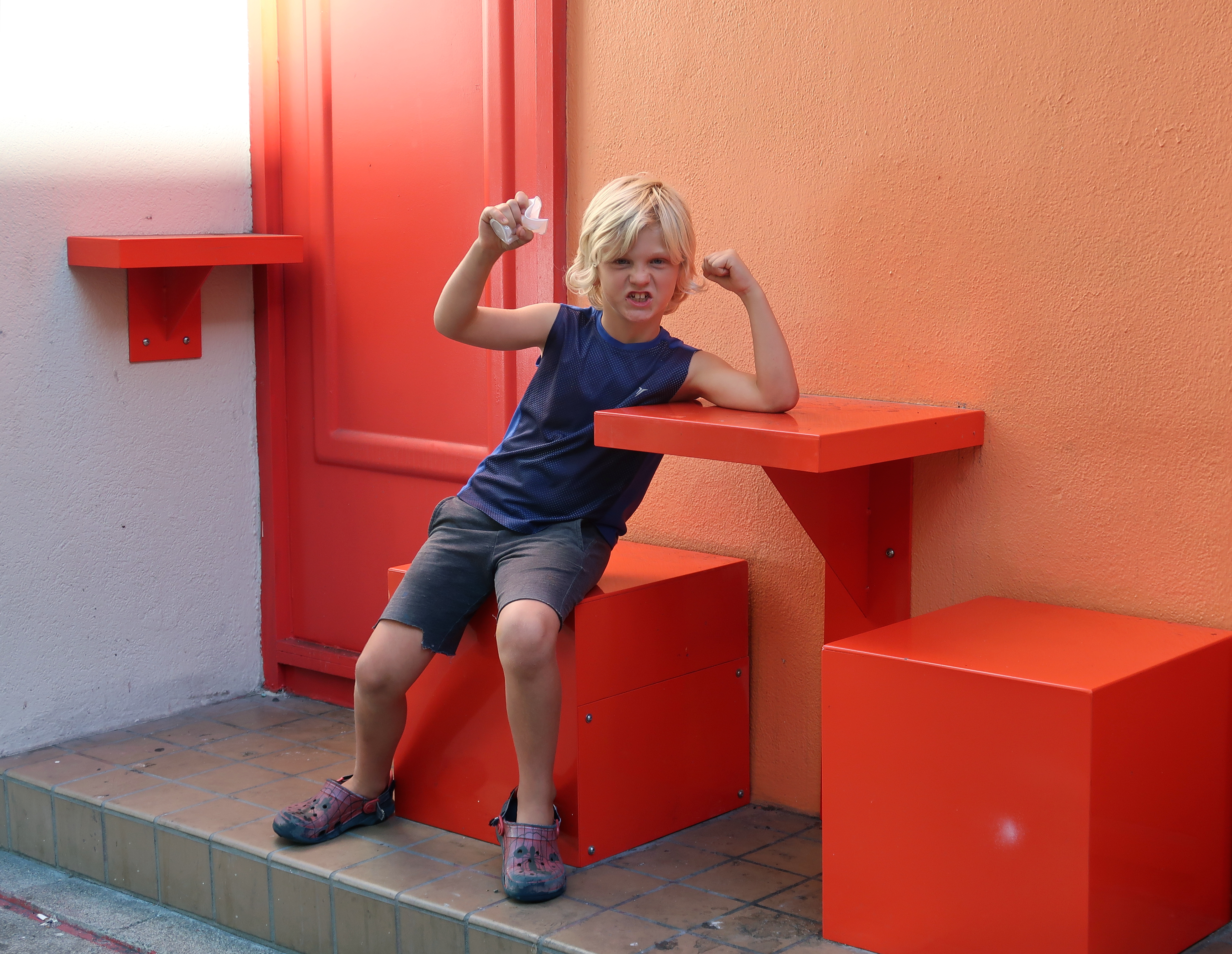 Leo by the splash pool. 2025-07-04