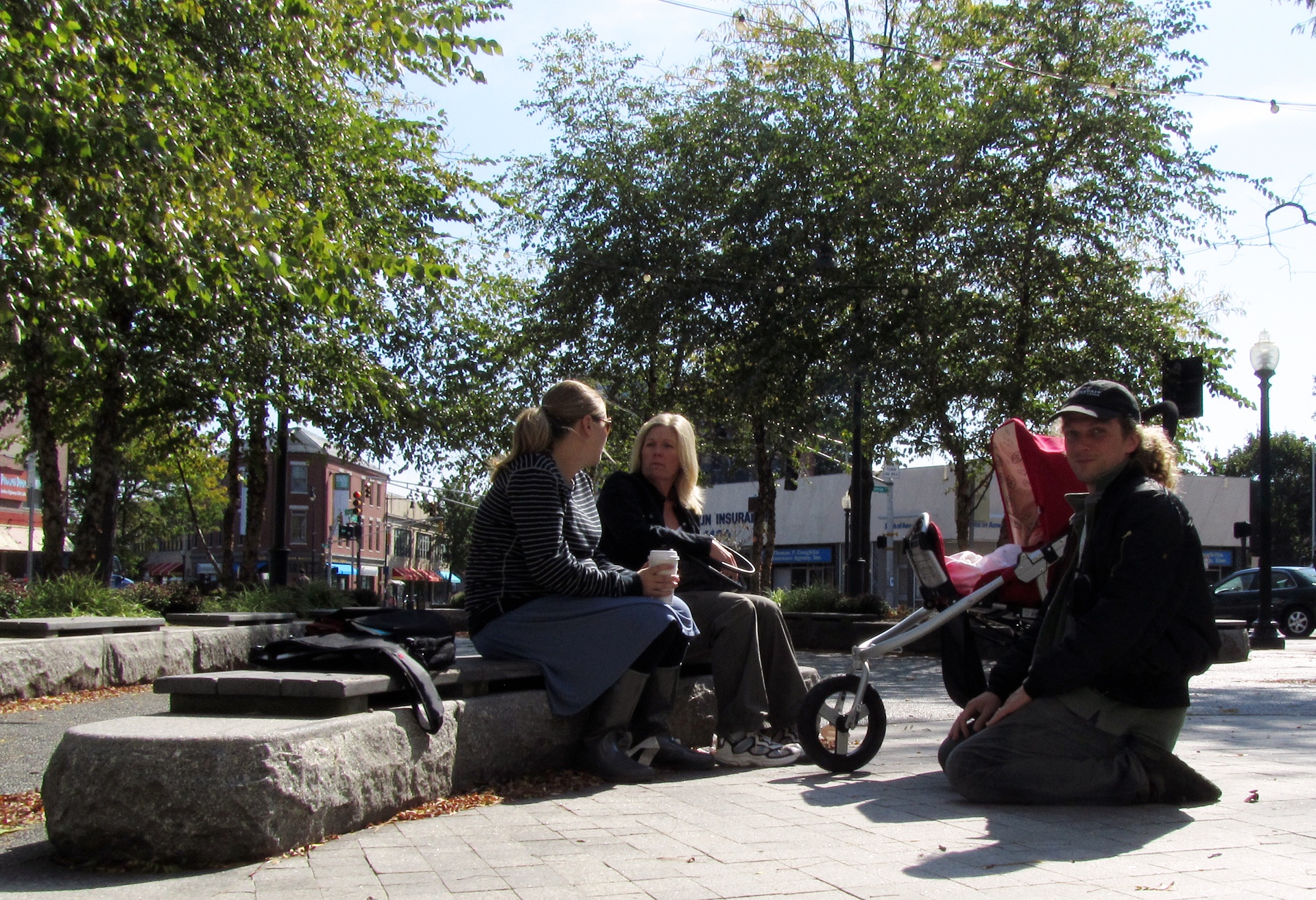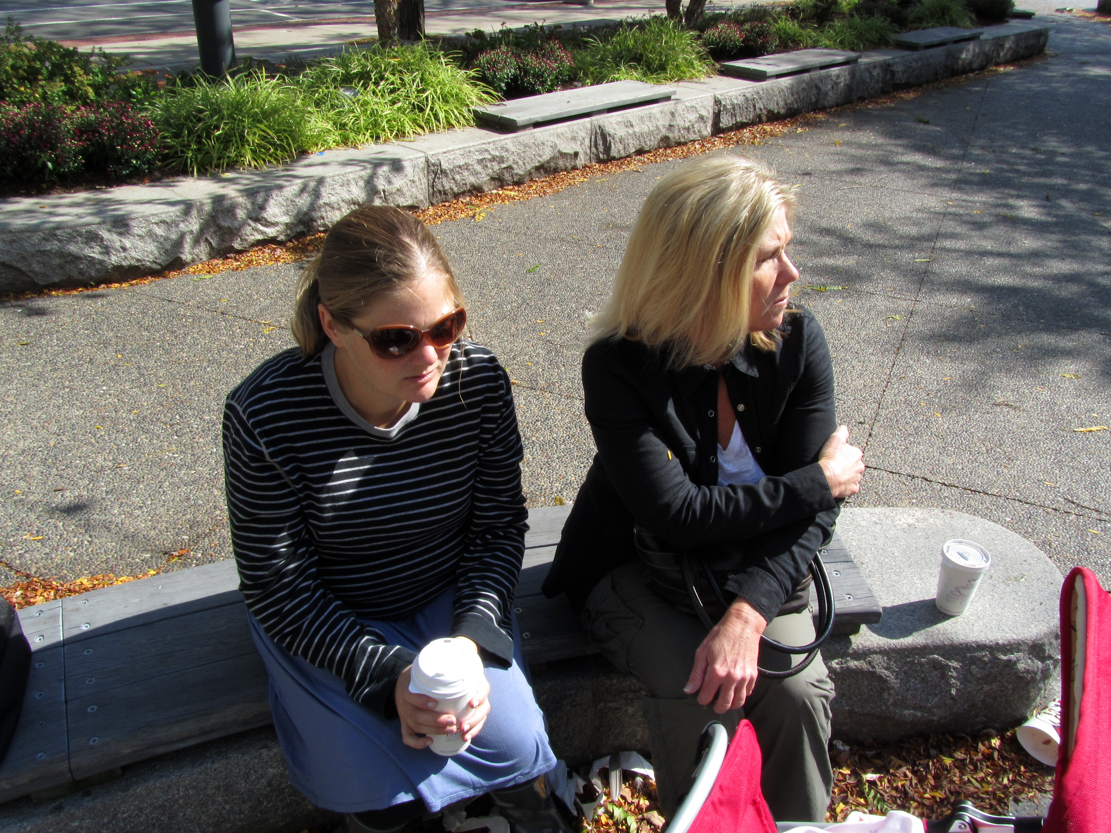 Morgan, Nancy, Margo, and Ivan at Inman Square, Cambridge MA. Морган, баба Нэнси, Марго, и Иван присели попить кофе на Инманской площади,